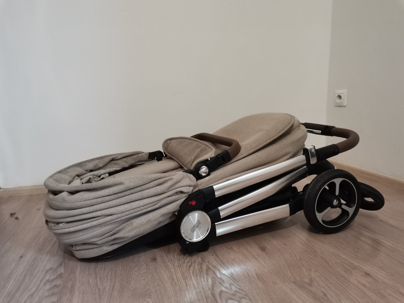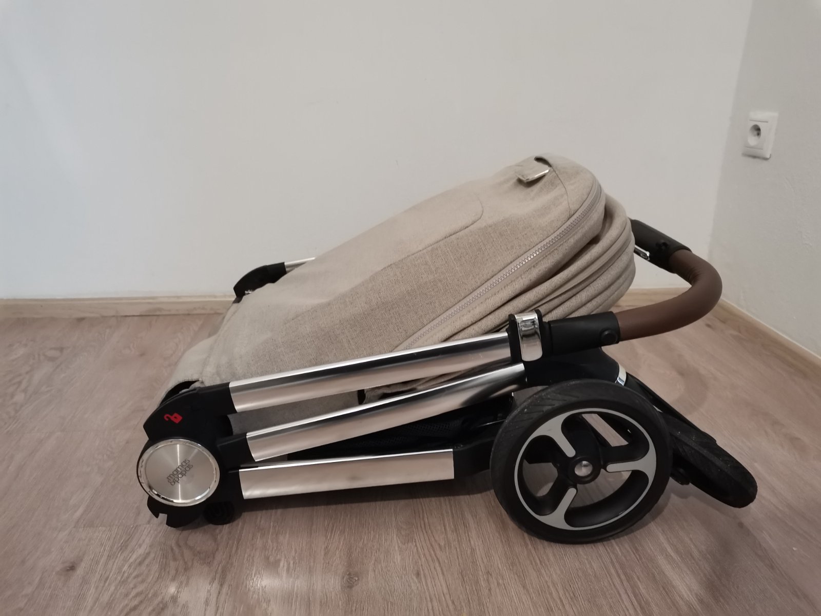 Predám kočík britskej značky Mamas&Papas, krásny, praktický, vhodný na časté presuny autom vďaka jednoduchému skladaniu do malých rozmerov. Kočík je vo výbornom používanom stave. Bez vyblednutia, nič nehrká, nevŕzga. Pár chybičiek krásy z bežného používania - škrabance a ošúchaný nápis vo vnútri košíka odfotené na posledných foto.