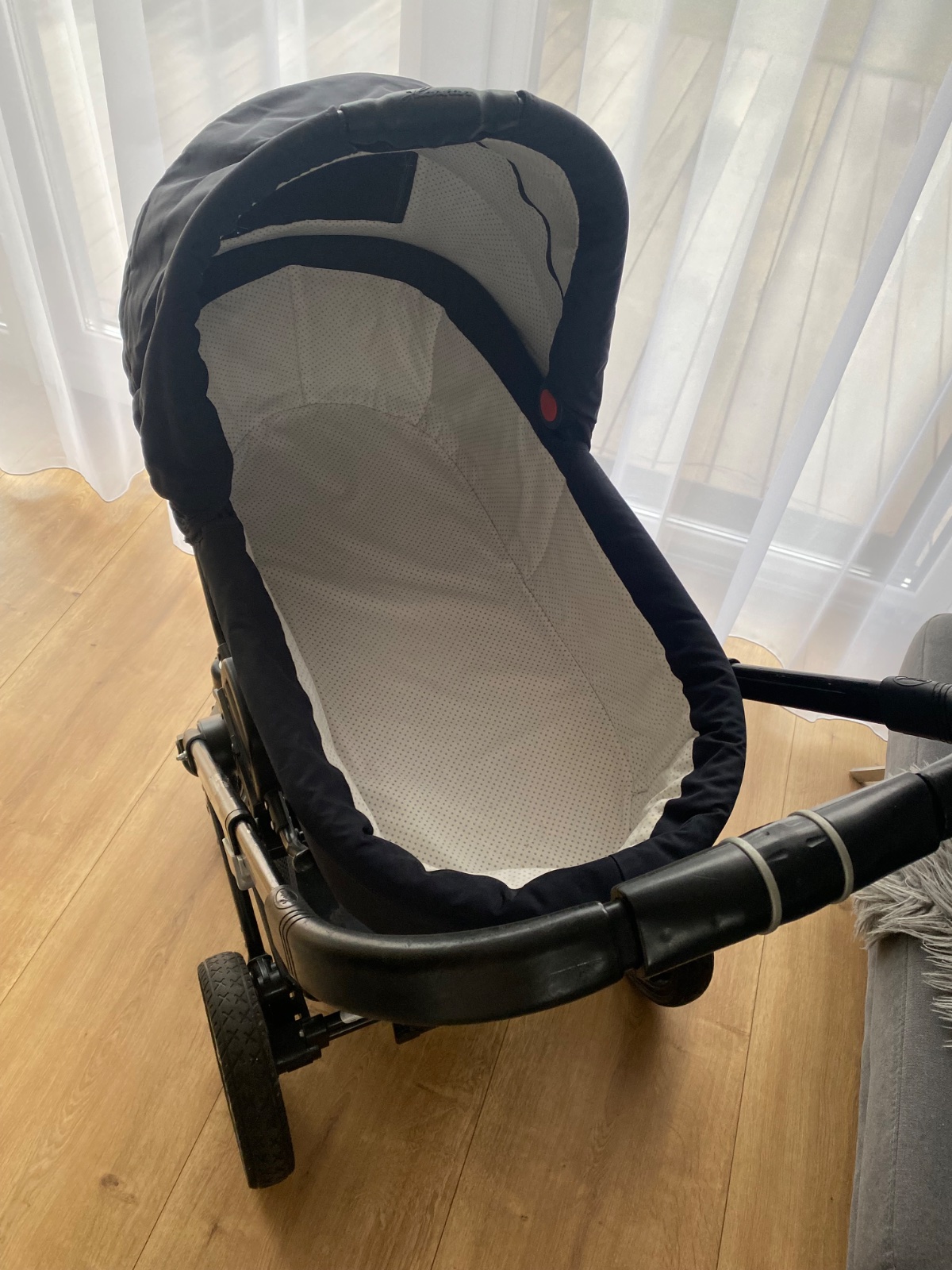 Kočík je veľmi praktický, ľahko manévrovateľný, zmestí sa aj do malých priestorov ako je napr. menší výťah. A vďaka dobre vybaveným kolesám zvládne akýkoľvek terén. Rúčka kočíka sa dá nastaviť na rôznu výšku. Vanička je úplne zachovalá a dá sa dokonca zložiť na “placku”.