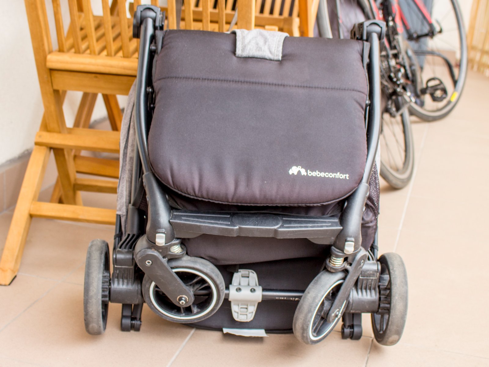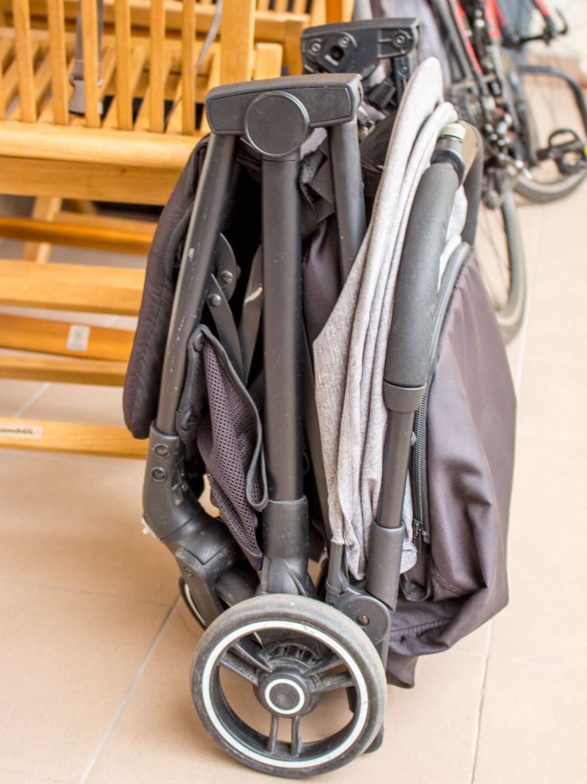 JEDNODUCHÉ SKLADANIE: Tento kočík sa dá rýchlo a jednoducho zložiť jednou rukou. Po zložení má kompaktné rozmery (55 × 22 × 51 cm), čo šetrí miesto doma, v aute aj v lietadle.