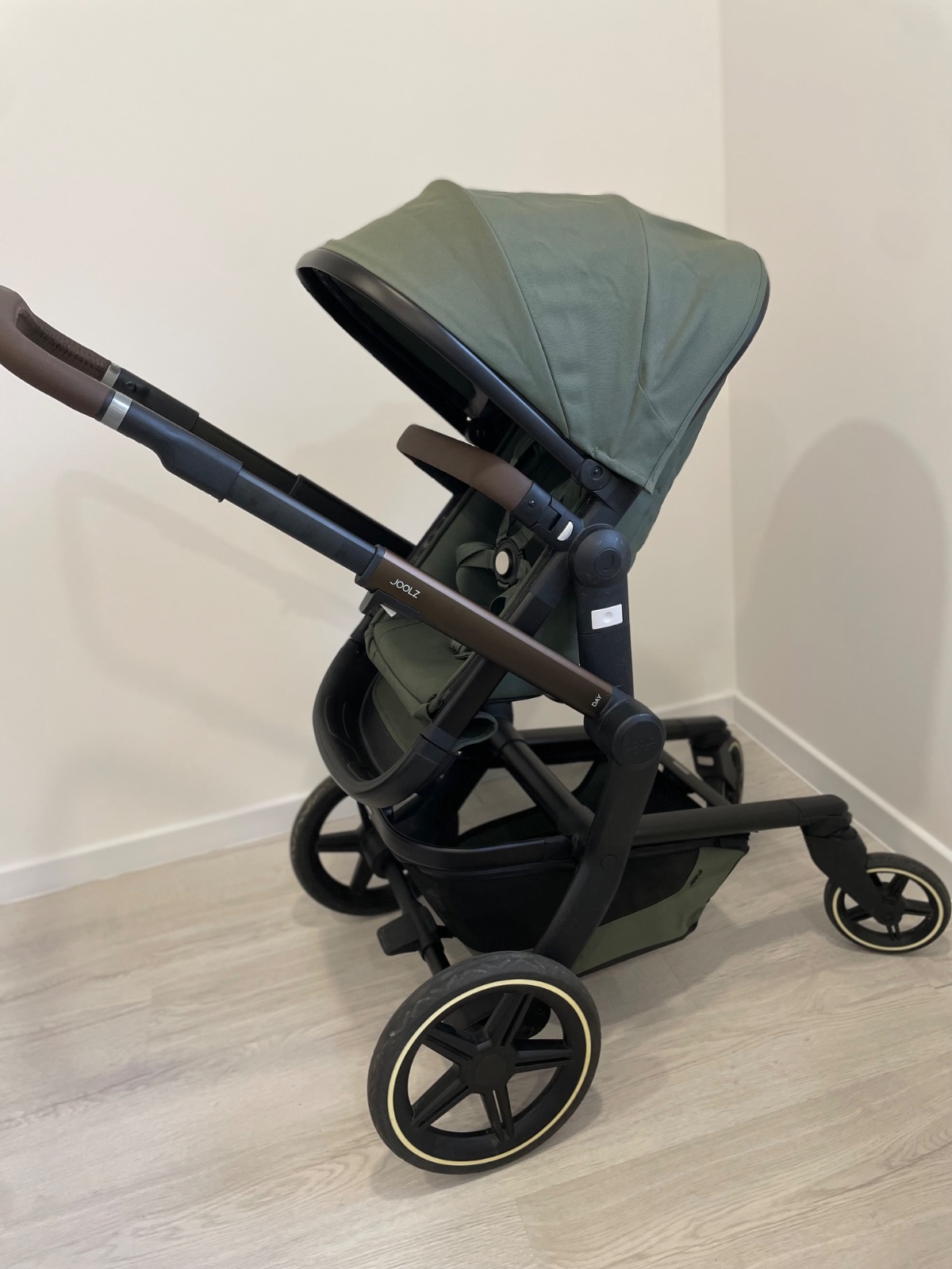 Predám kočík Joolz day+ Magnificent green vo veľmi dobrom stave, bez fľakov, jeden škrabanec je na spodnej časti pri košíku (viď foto), inak bez poškodenia.