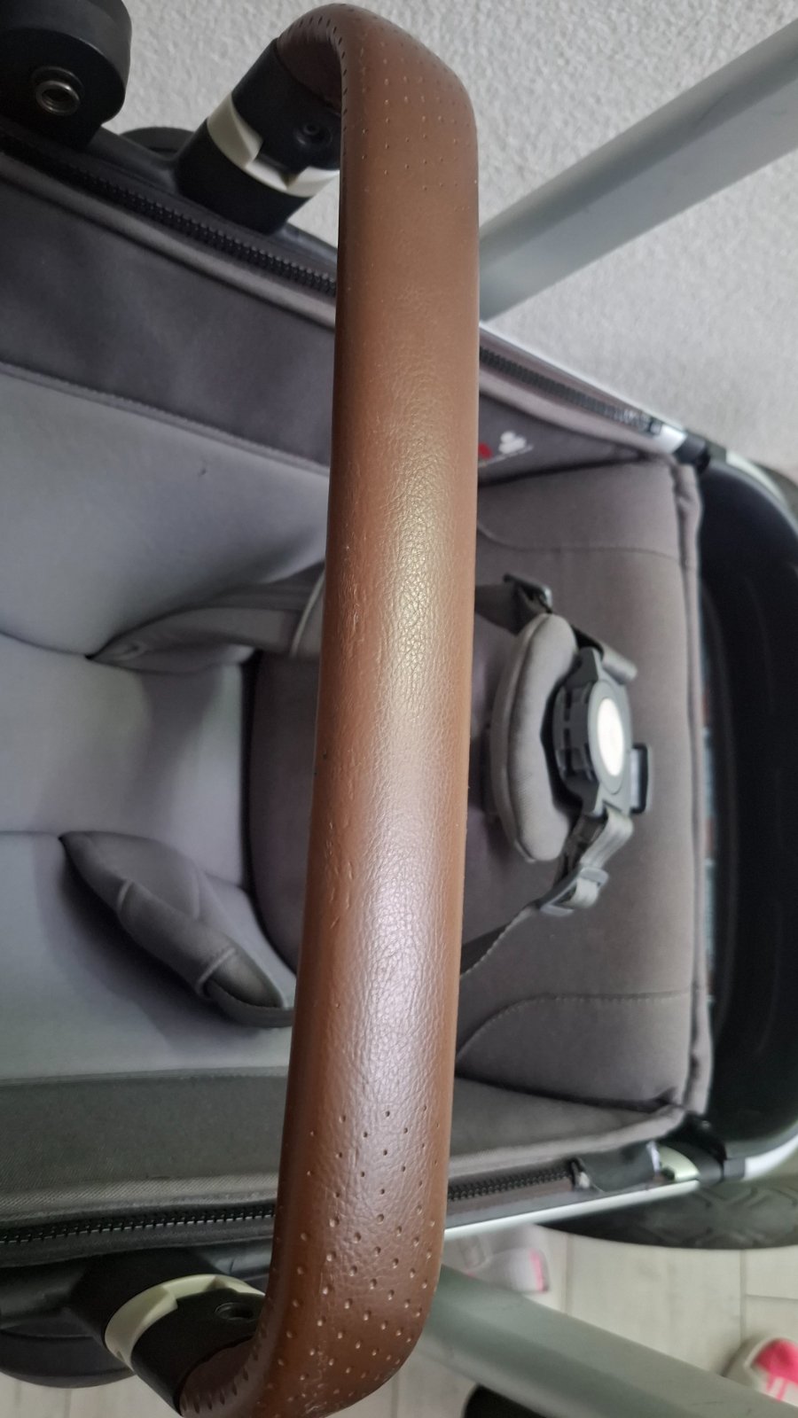 *4 kolesá odpružené, teleskopická rukoväť, ventilačné okienko v strieške, opierka nôh i chrbátika, 5-bodové pásy.