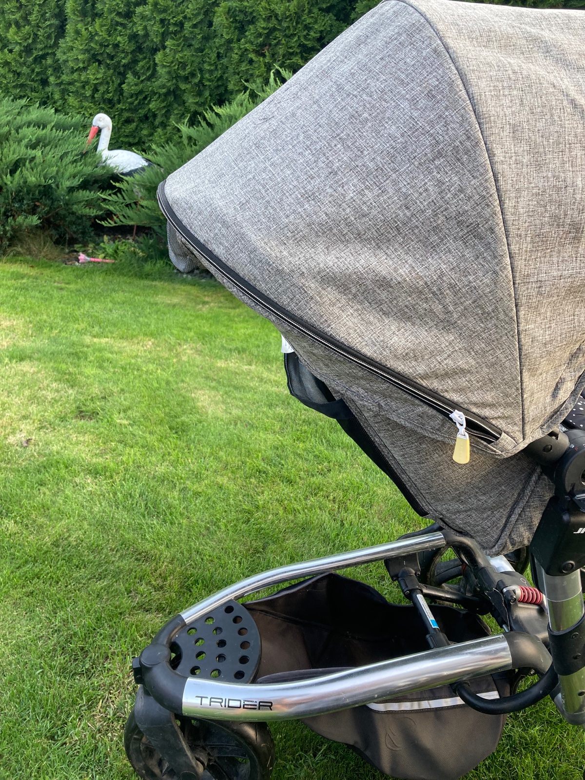 Parkovacia brzda je umiestnená na rúčke kočíka namiesto podvozku, aby mala dostatok priestoru pre všetky terény.