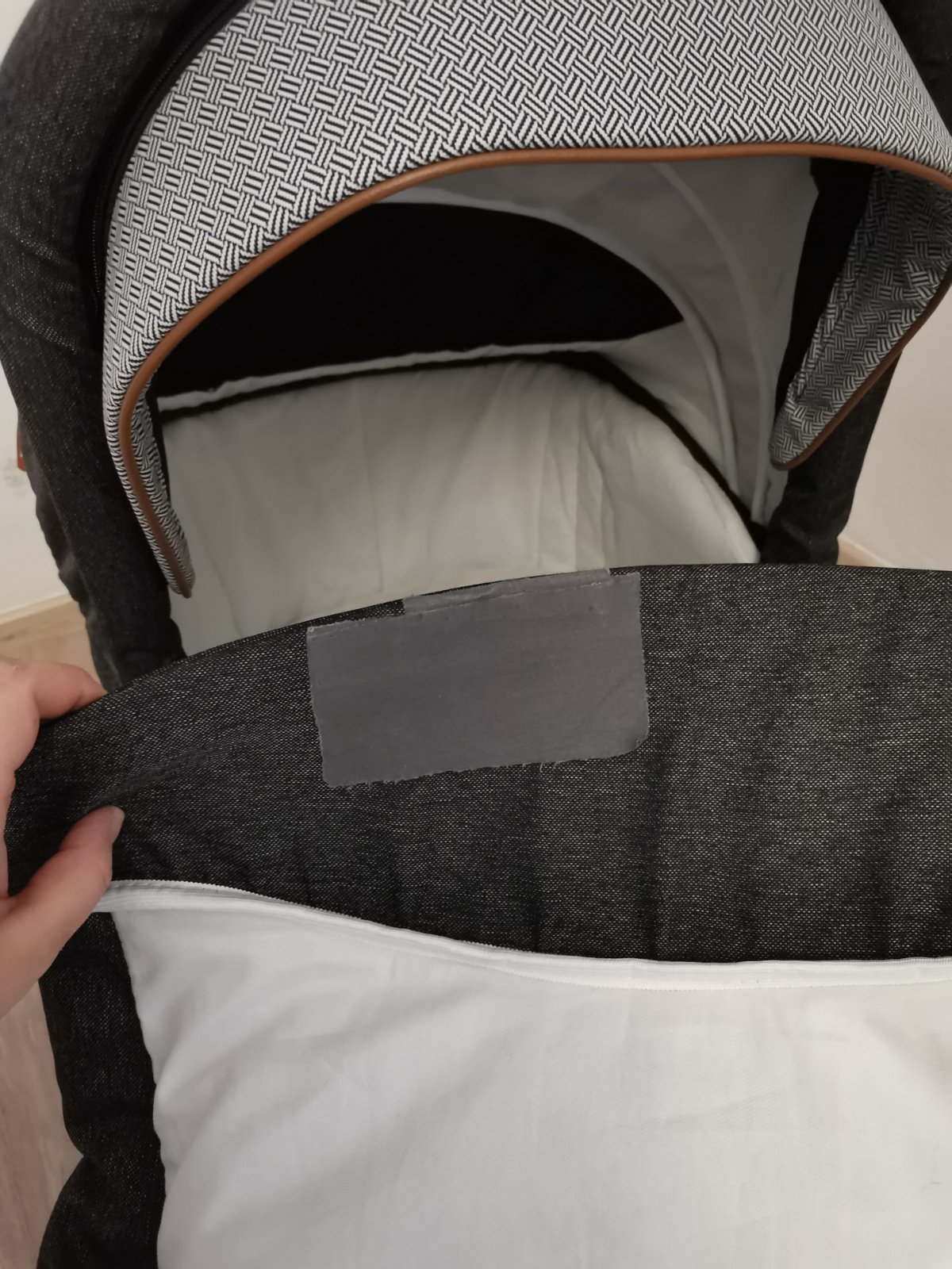 2. Nánožník na hlbokej časti bol kúsok predratý, je to schované pod nažehlovačkou, poškodenie je otočné smerom dovnútra k dieťaťu takže to nie je vidieť