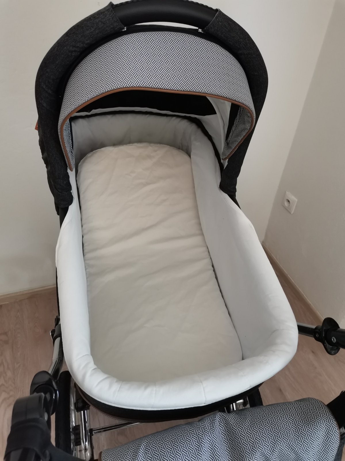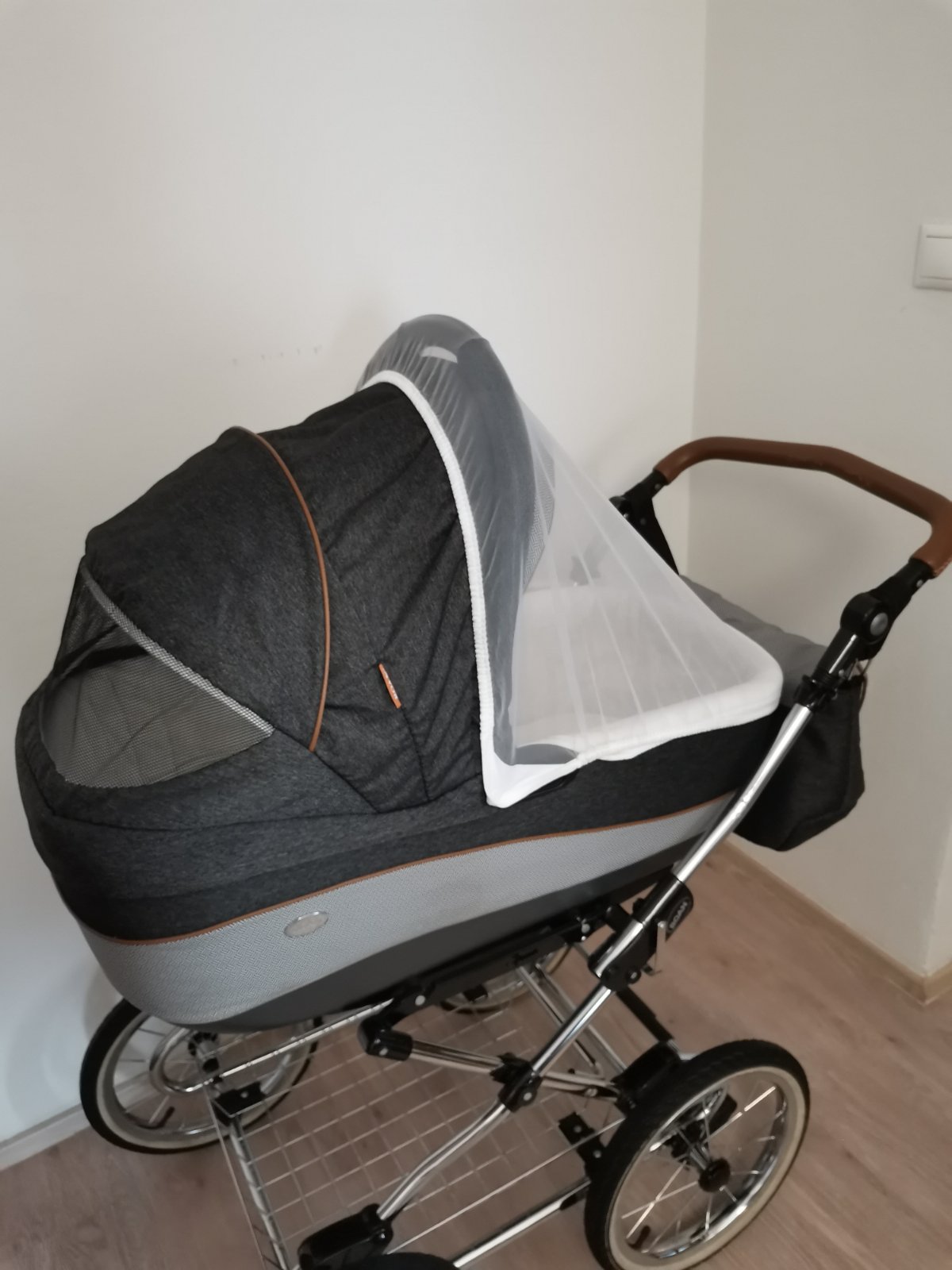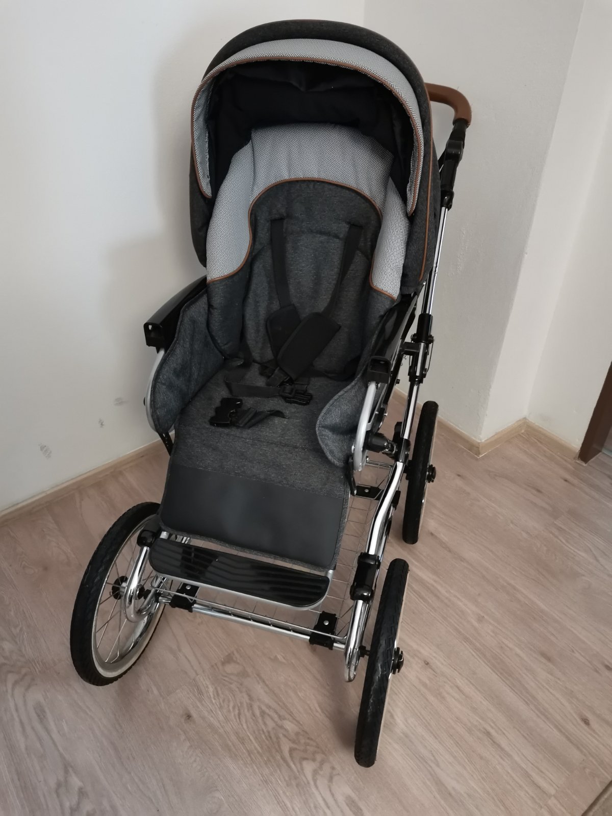 Kočík je v peknom používanom stave, bez vyblednutia, nehrká, nevŕzga všetko funguje. Má dve chybičky krásy: