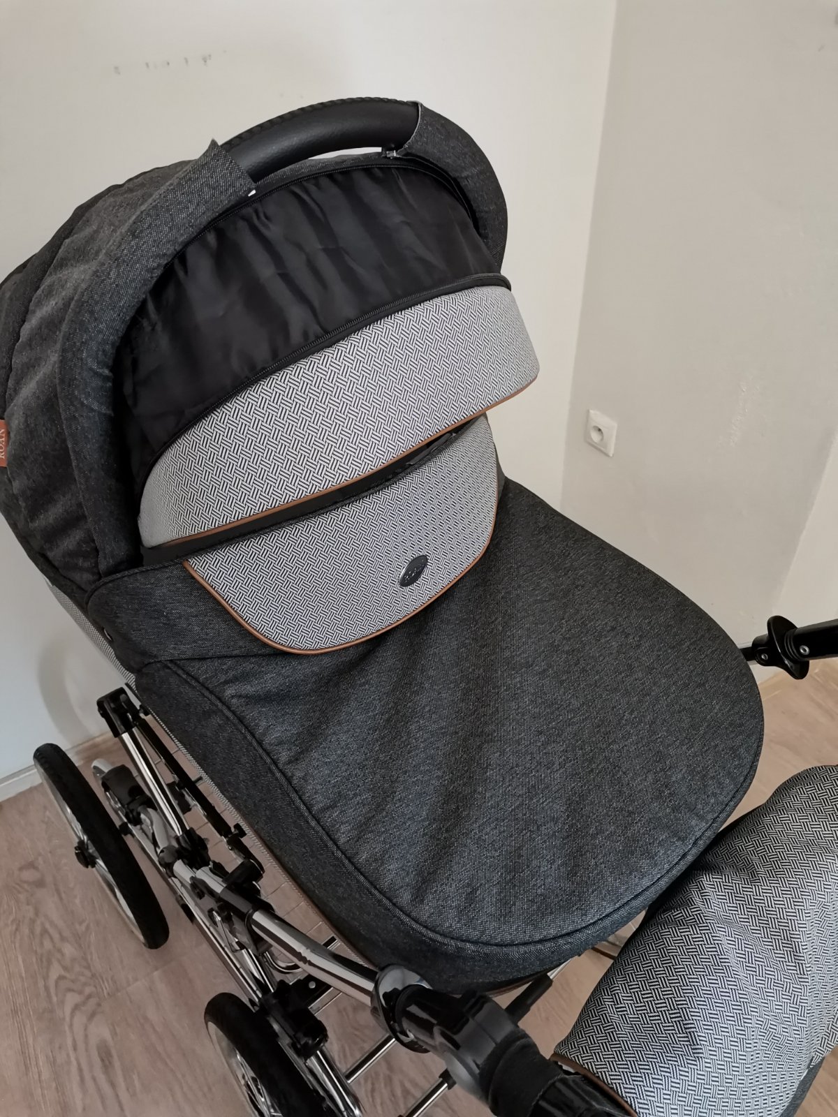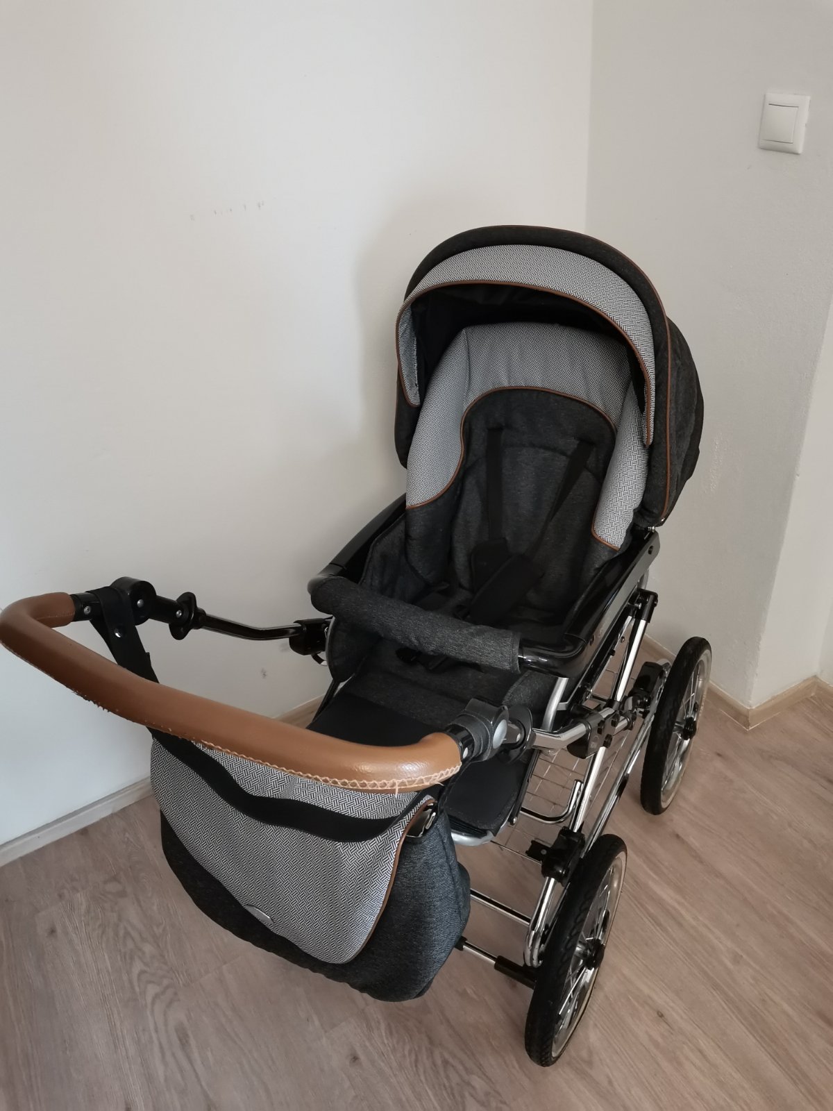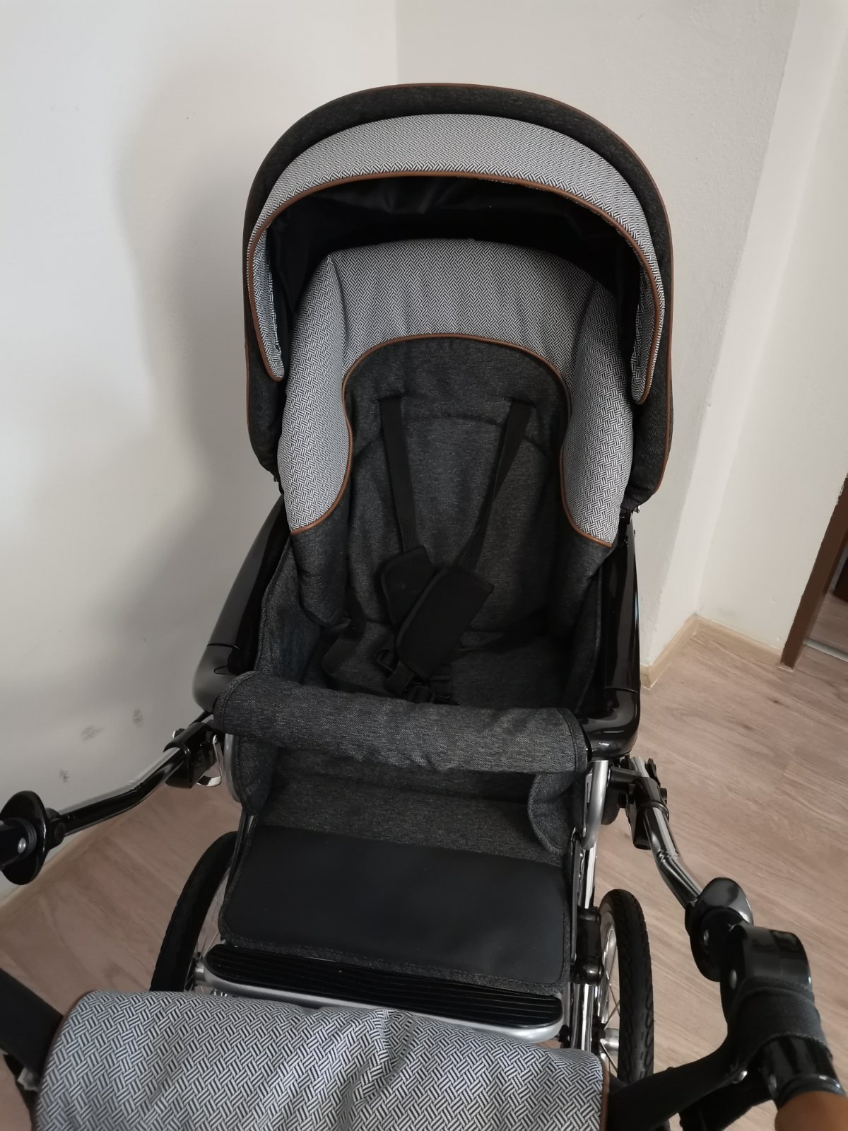 Kočík je v peknom používanom stave, bez vyblednutia, nehrká, nevŕzga všetko funguje. Má dve chybičky krásy: