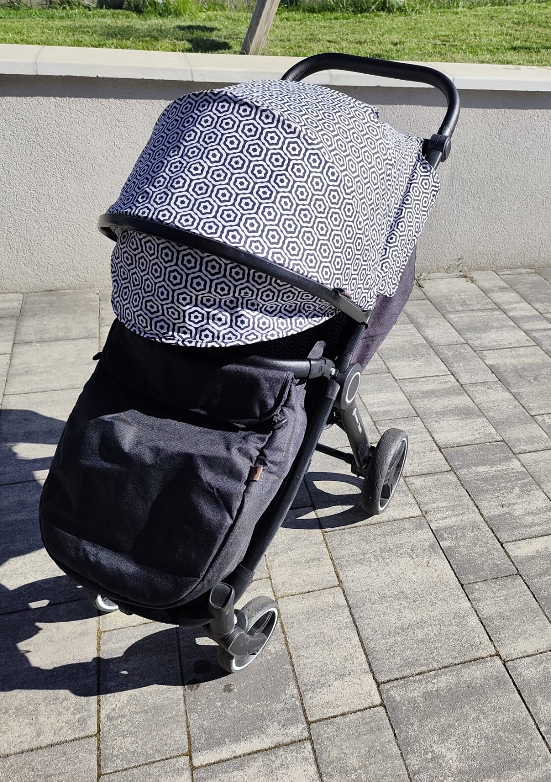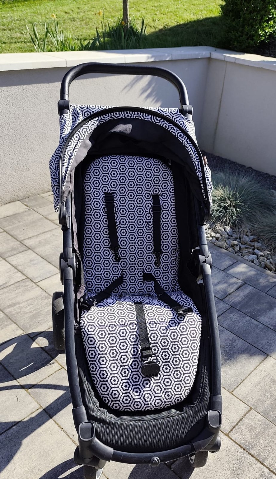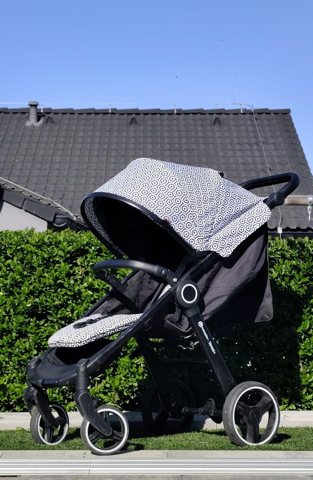 veľký nákupný kôš (na fotkách nie je, lebo je v praní, ale je súčasťou kočíka),