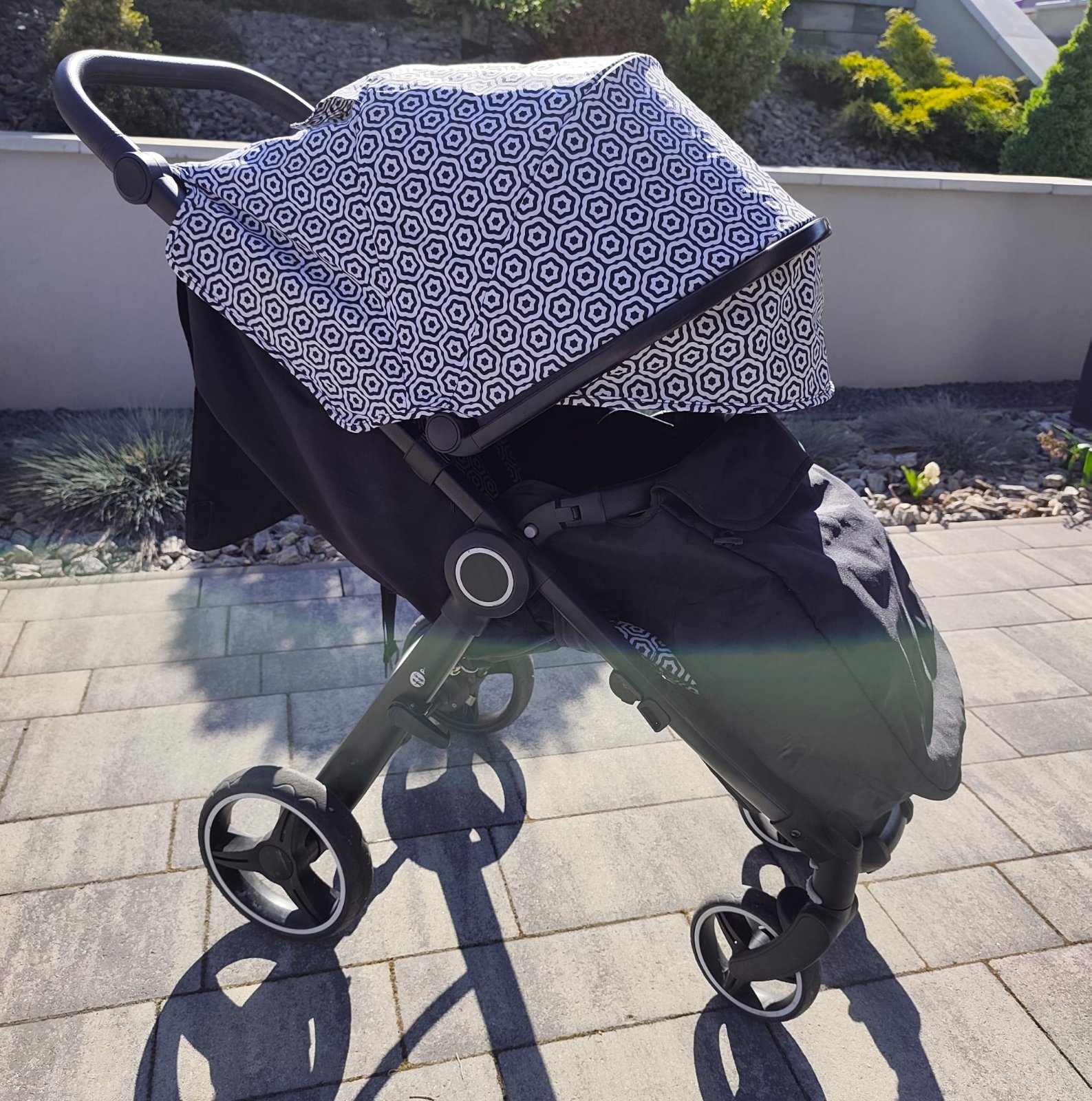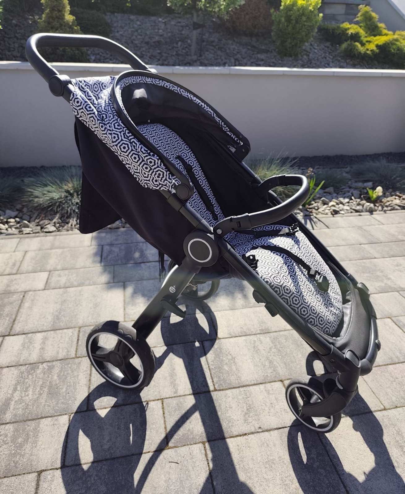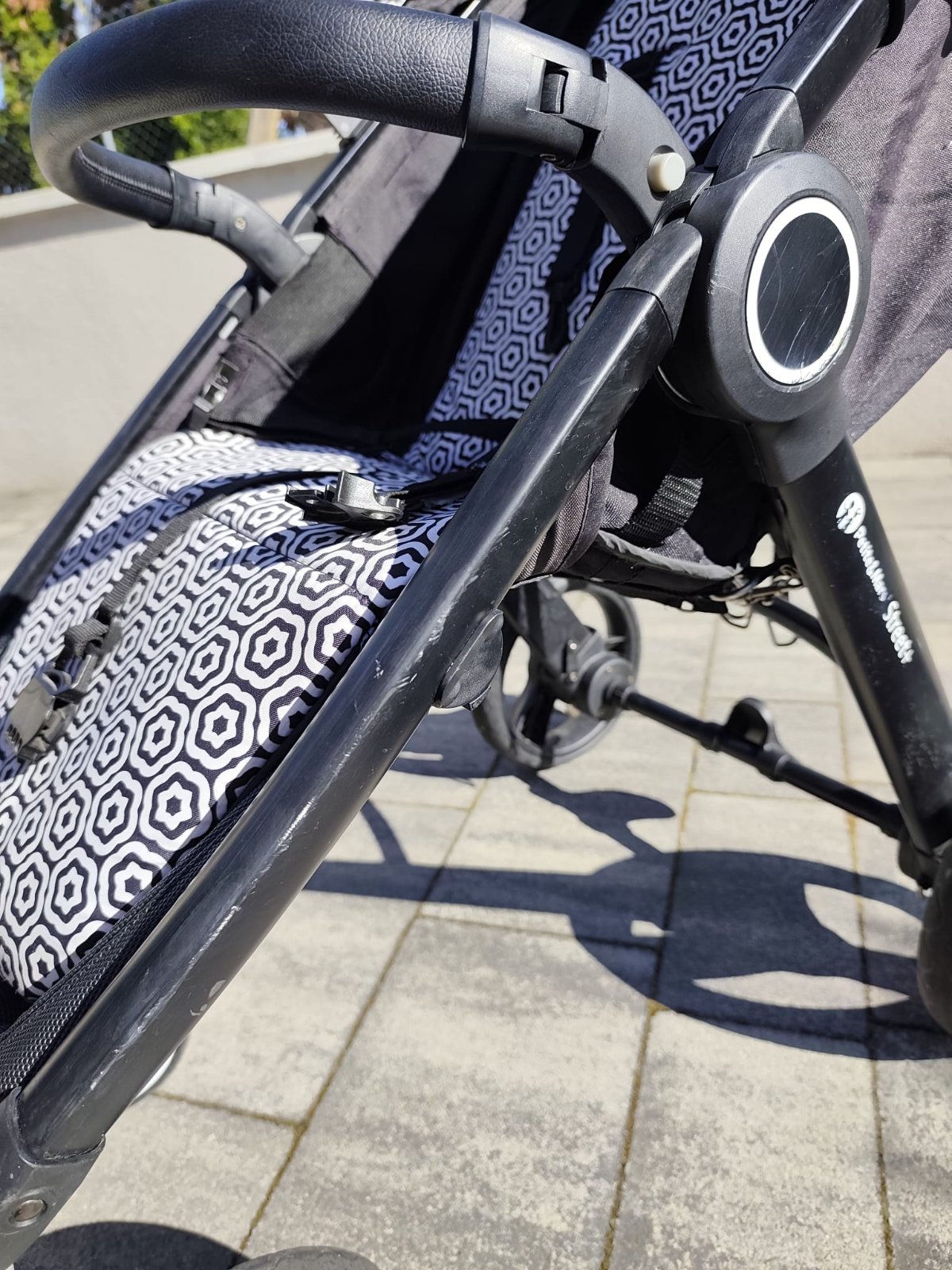 veľký nákupný kôš (na fotkách nie je, lebo je v praní, ale je súčasťou kočíka),