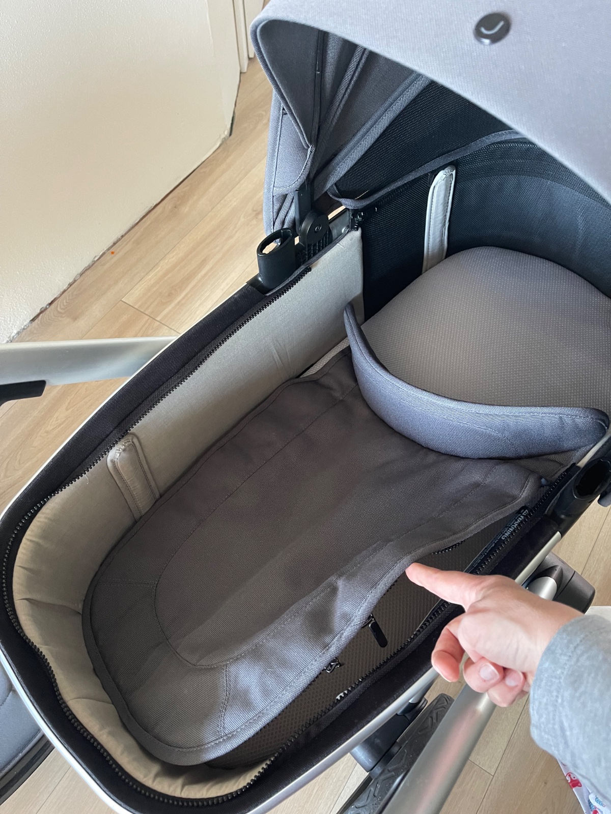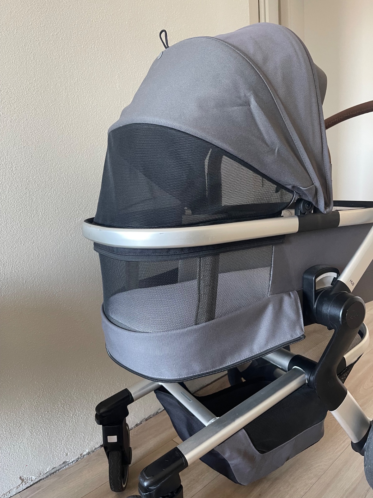 Kocik ma hlboku vanicku, ktora ma super vetraciu aj pozorovaciu sietku. Spodna cast vanicky sa da rozlozit a zmacknut pre lepsiu skladnost v aute.
