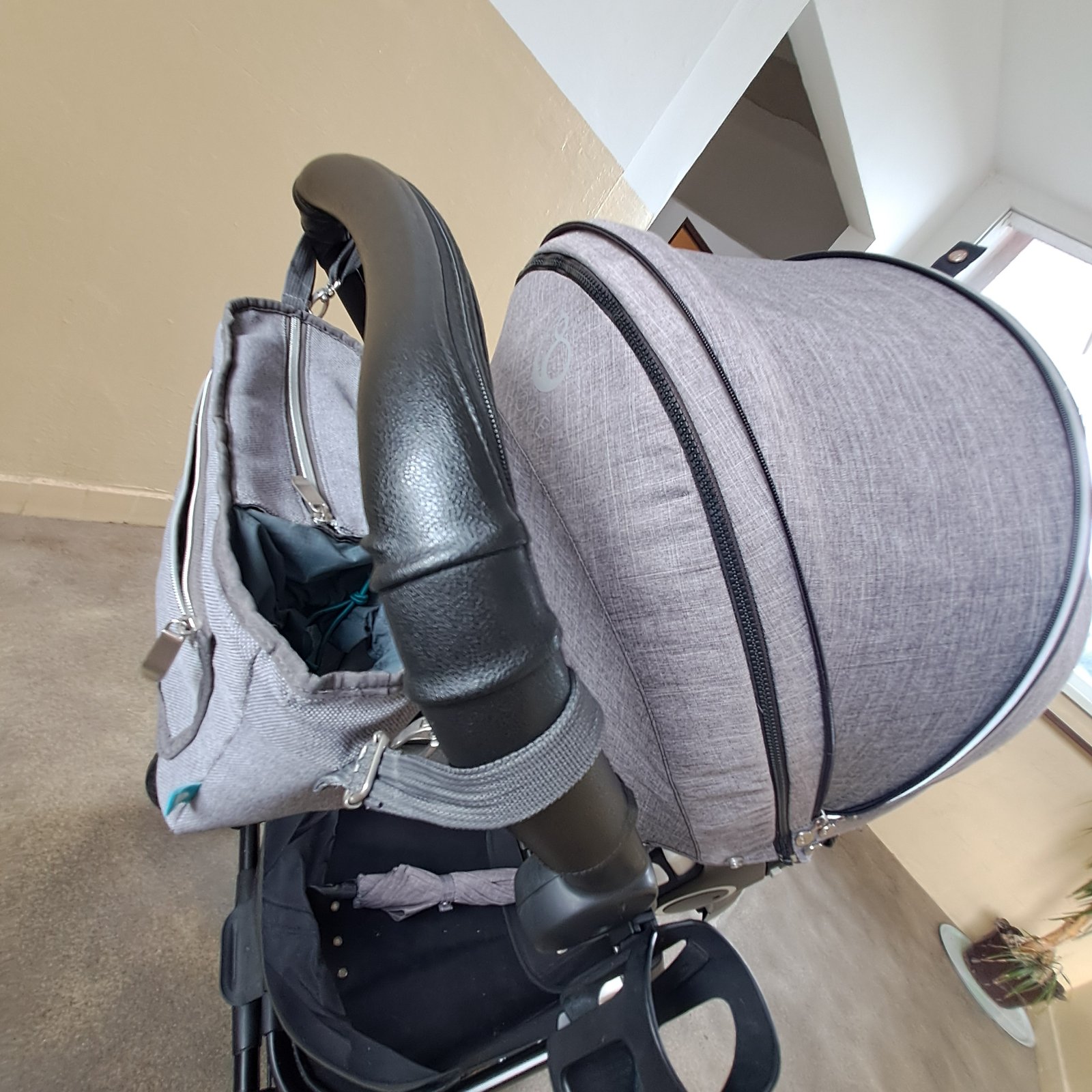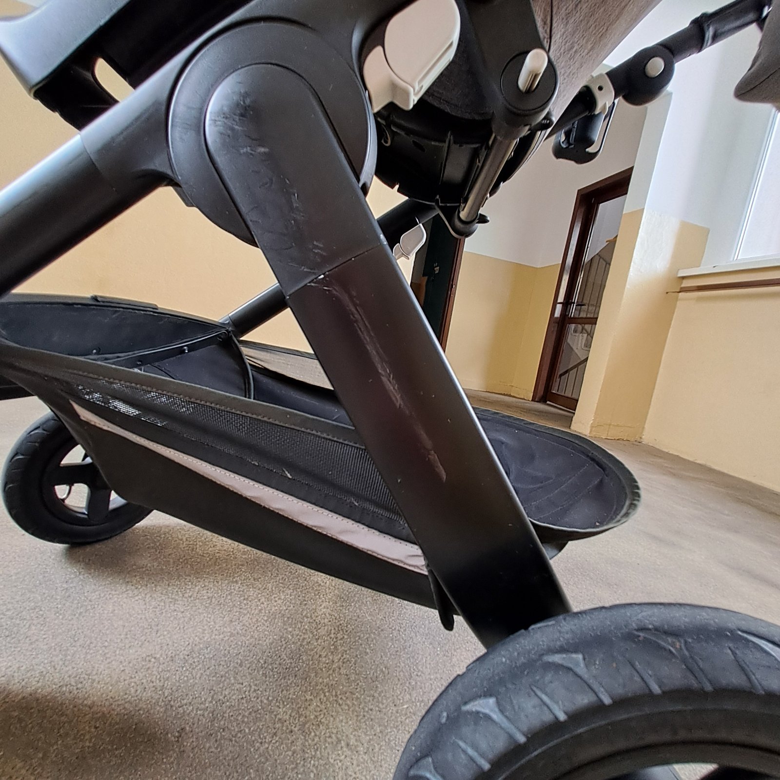 Kočík bol intenzívne využívaný, preto nesie známky bežného opotrebovania – drobné škrabance a oderky na rôznych miestach. Konštrukčne je však plne funkčný a bez akýchkoľvek závad.