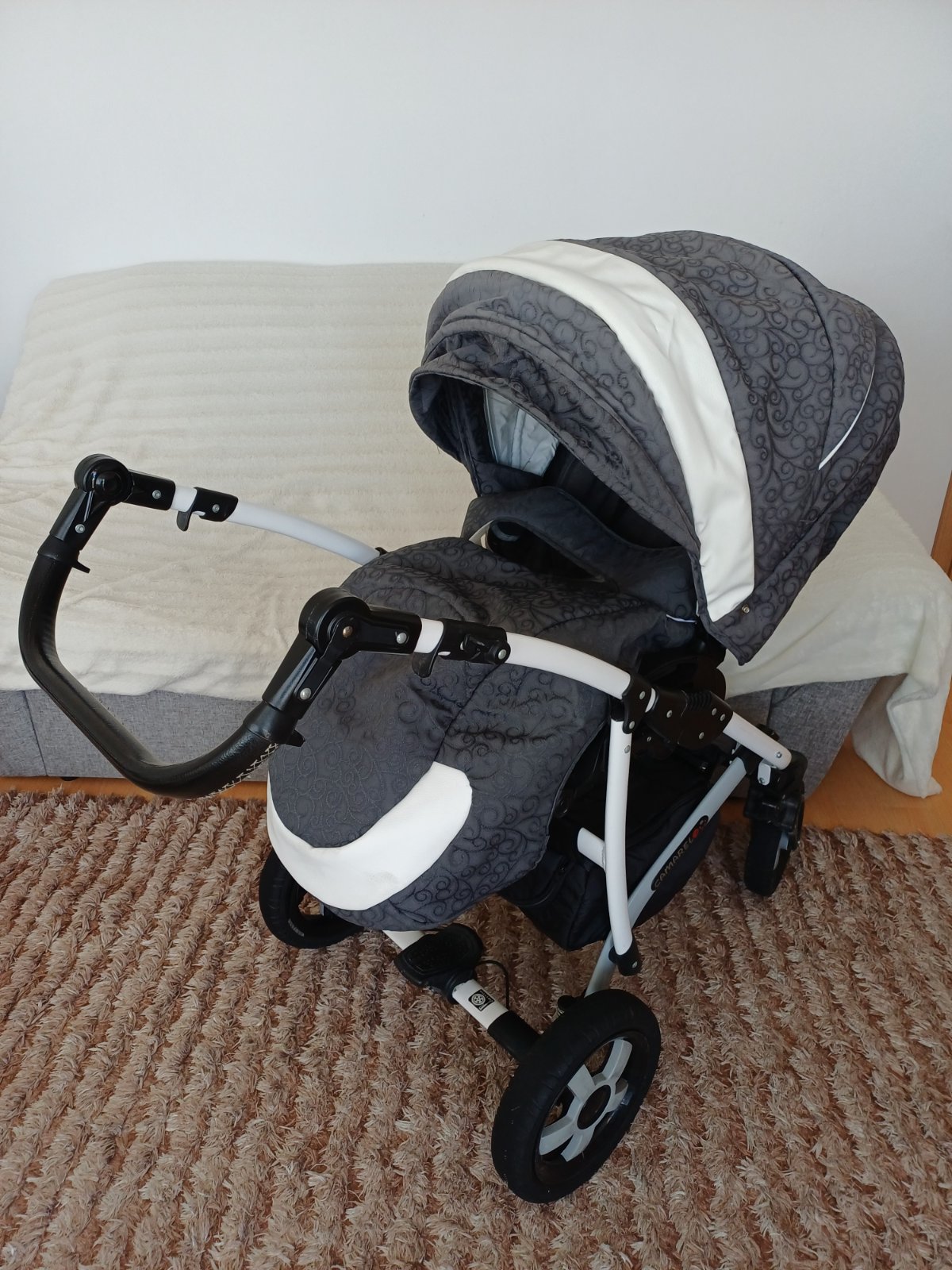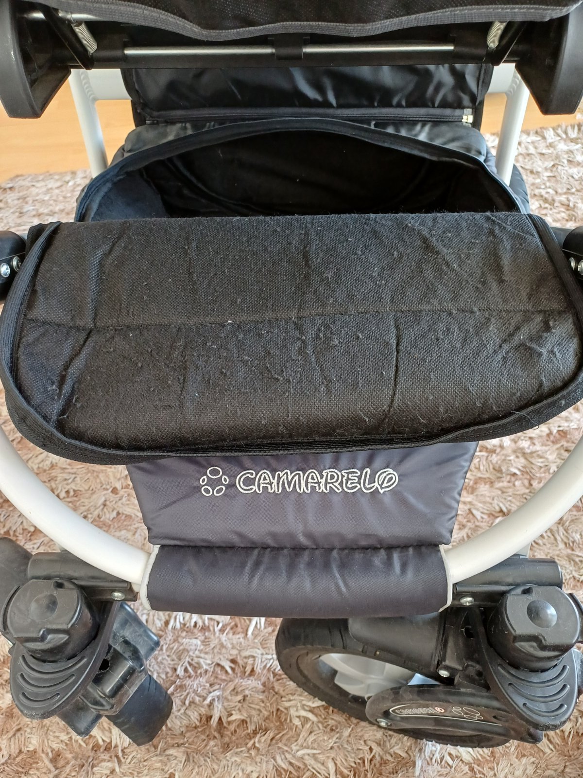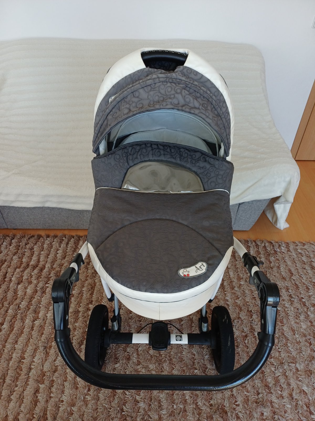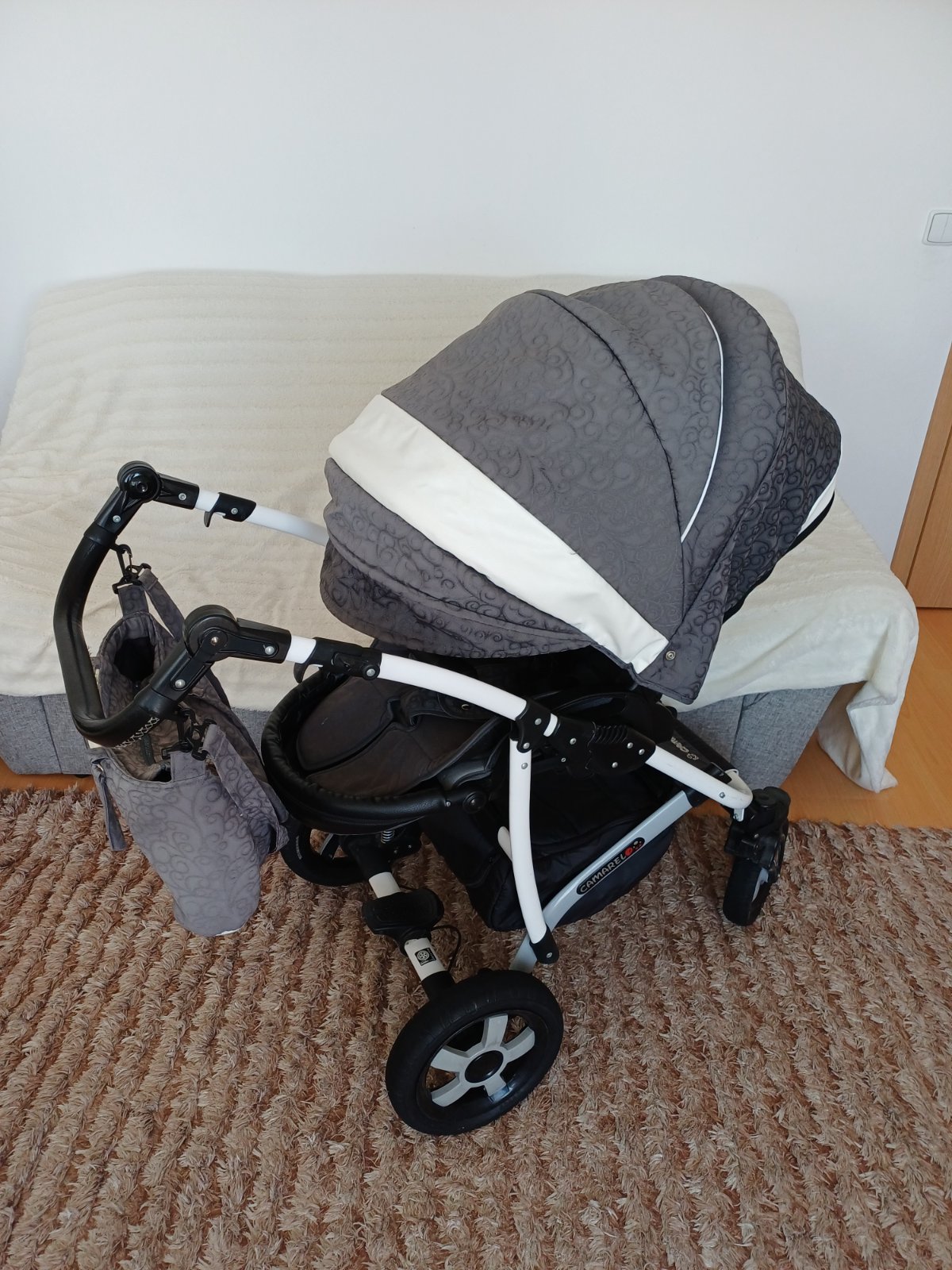 Predám detský kočík 2v1 kombinovaný Camarelo Art Limited. V dobrom stave, nezničený, funkčný, pneumatiky majú známky opotrebenia viď foto. Predné otočné kolesá, kolesá sú fúkateľné, brzda, nastaviteľné madlo. Príslušenstvo: taška na madlo, uložný priestor pod kočíkom, pláštenka a kryt na hlboký aj športový kočík.