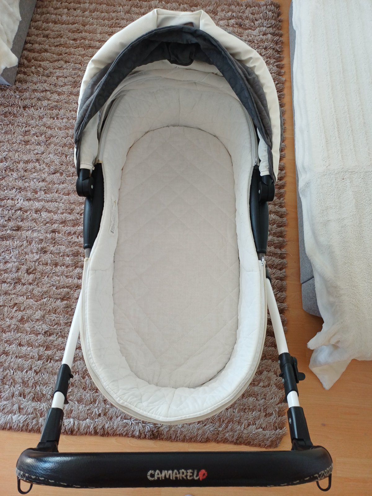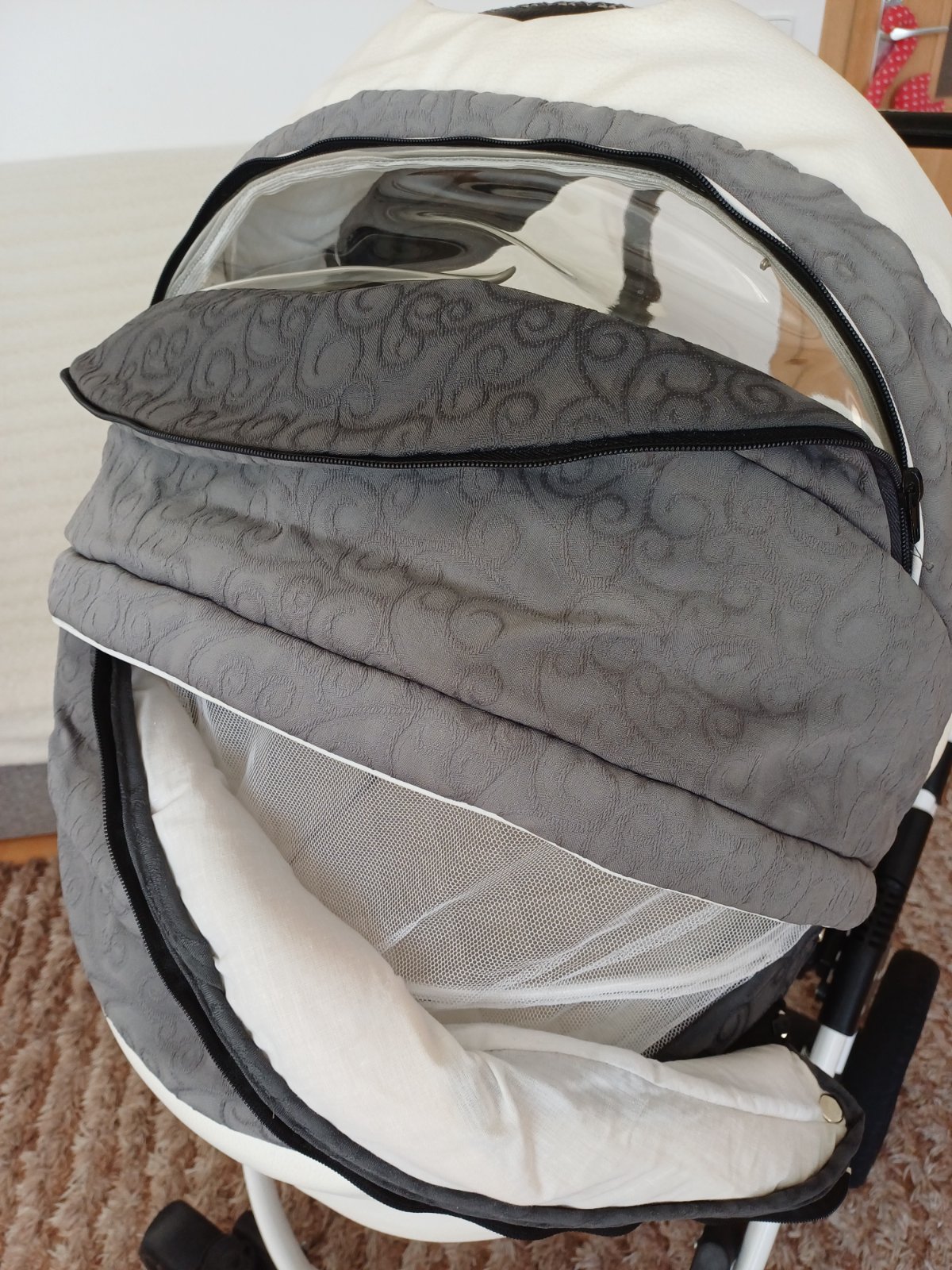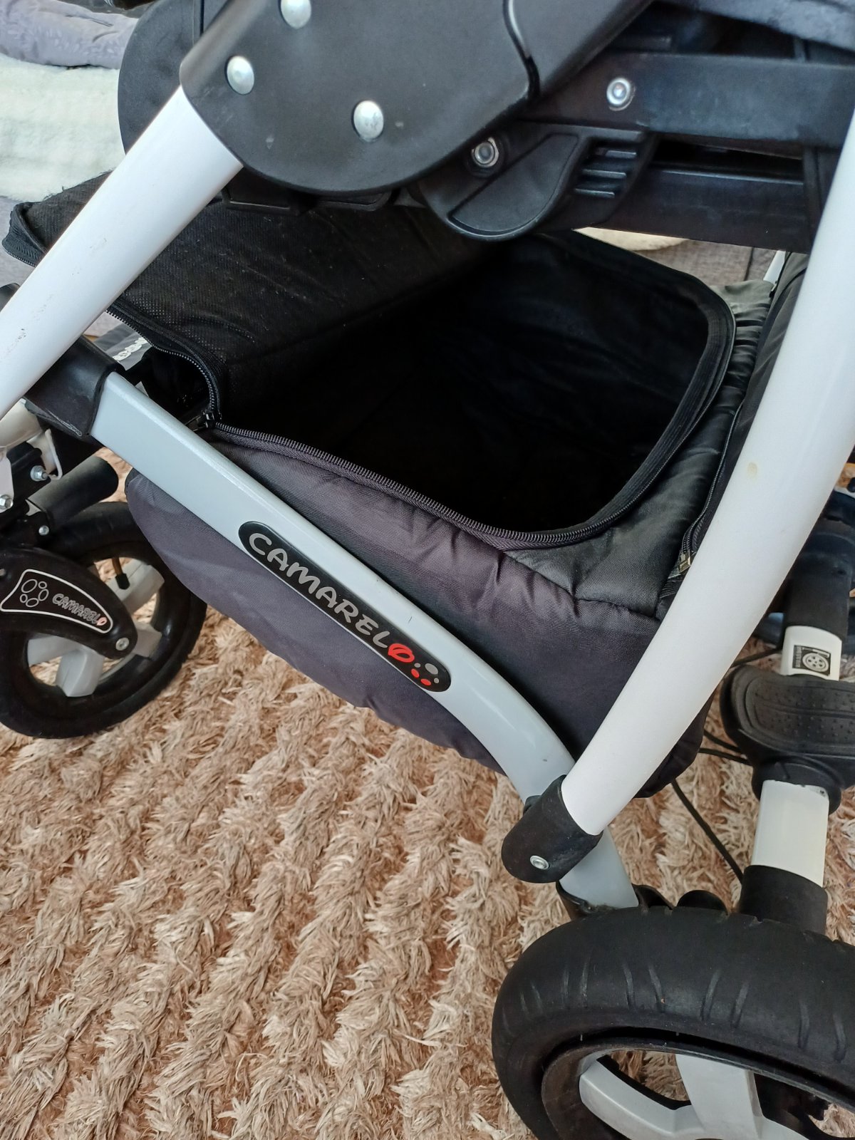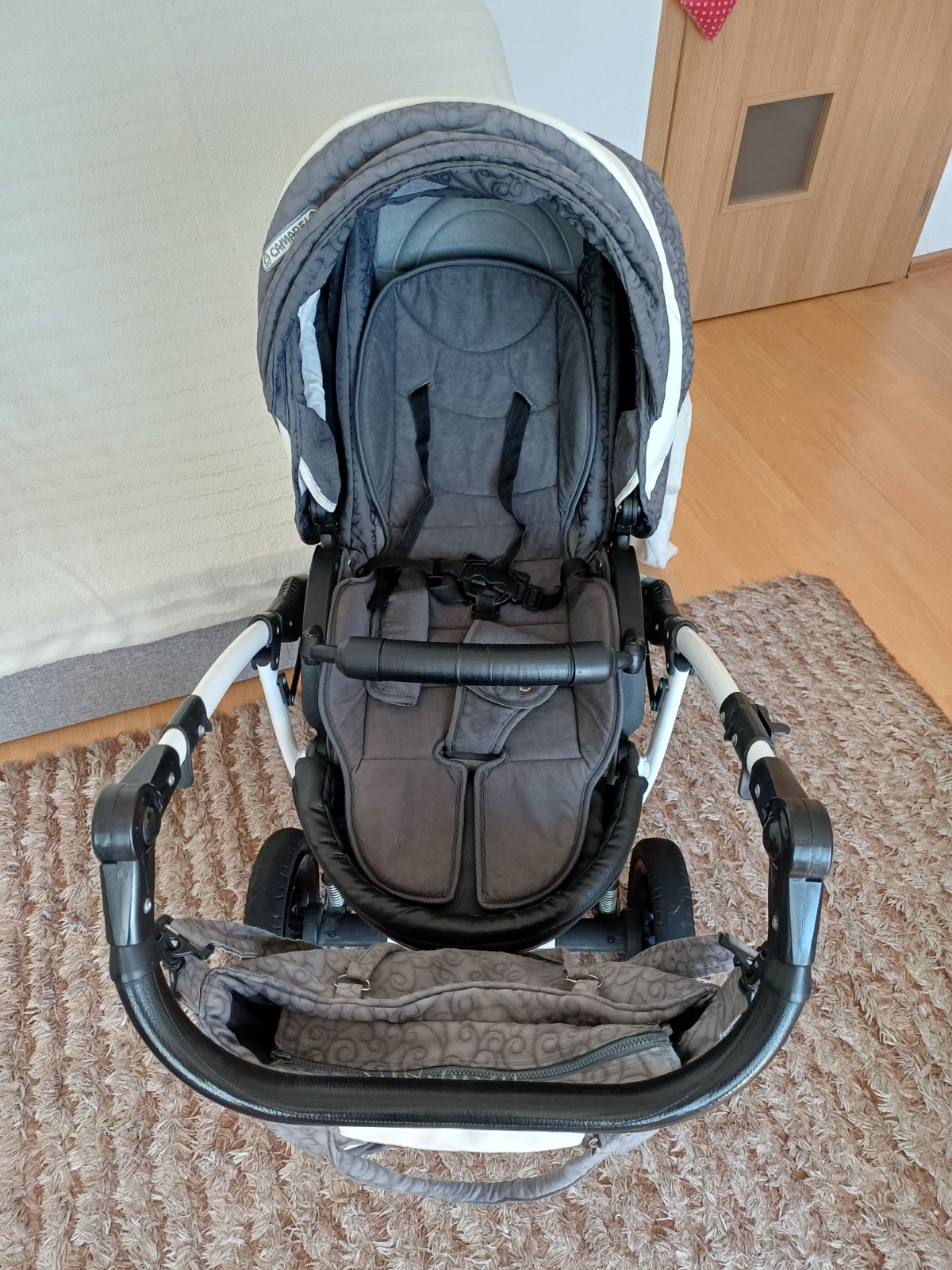 Predám detský kočík 2v1 kombinovaný Camarelo Art Limited. V dobrom stave, nezničený, funkčný, pneumatiky majú známky opotrebenia viď foto. Predné otočné kolesá, kolesá sú fúkateľné, brzda, nastaviteľné madlo. Príslušenstvo: taška na madlo, uložný priestor pod kočíkom, pláštenka a kryt na hlboký aj športový kočík.