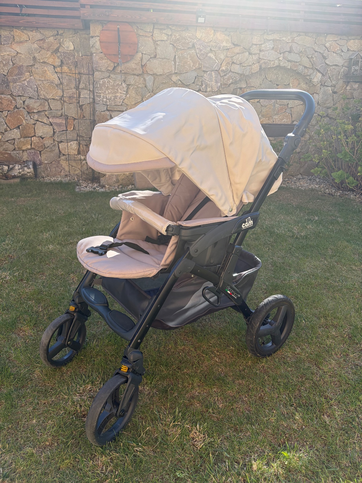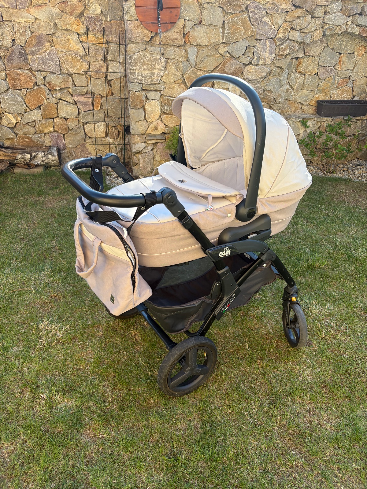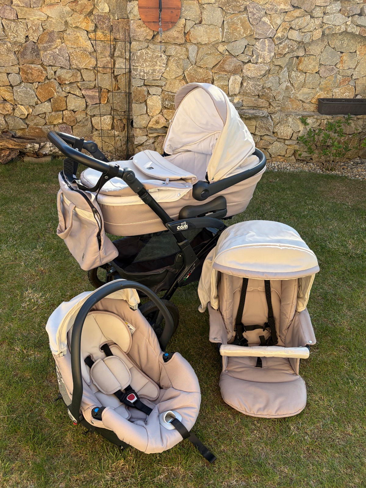 Predám 3-kombinaciu kočíka CAM Dynamico up so štvorkolesovým podvozkom (kombinácia nafukovacích a penových kolies). Komplet obsahuje polohovateľnú vaničku aj športovú časť, vajíčko do auta, tašku a nánožník (ku športovej časti).Kočík je vo veľmi dobrom stave, má len pár škrabancov (viď foto). Len osobný odber (Nitra/Bratislava).