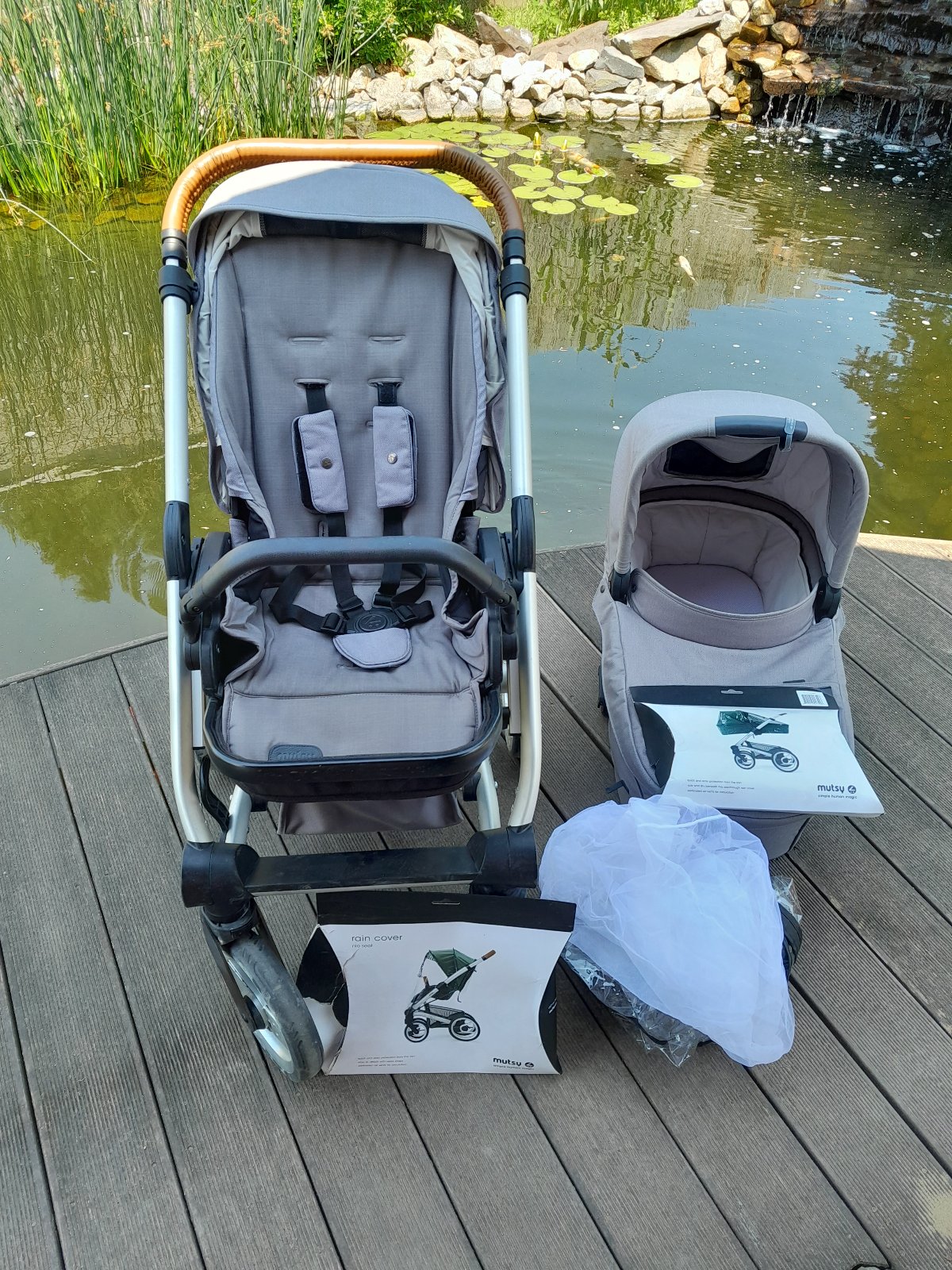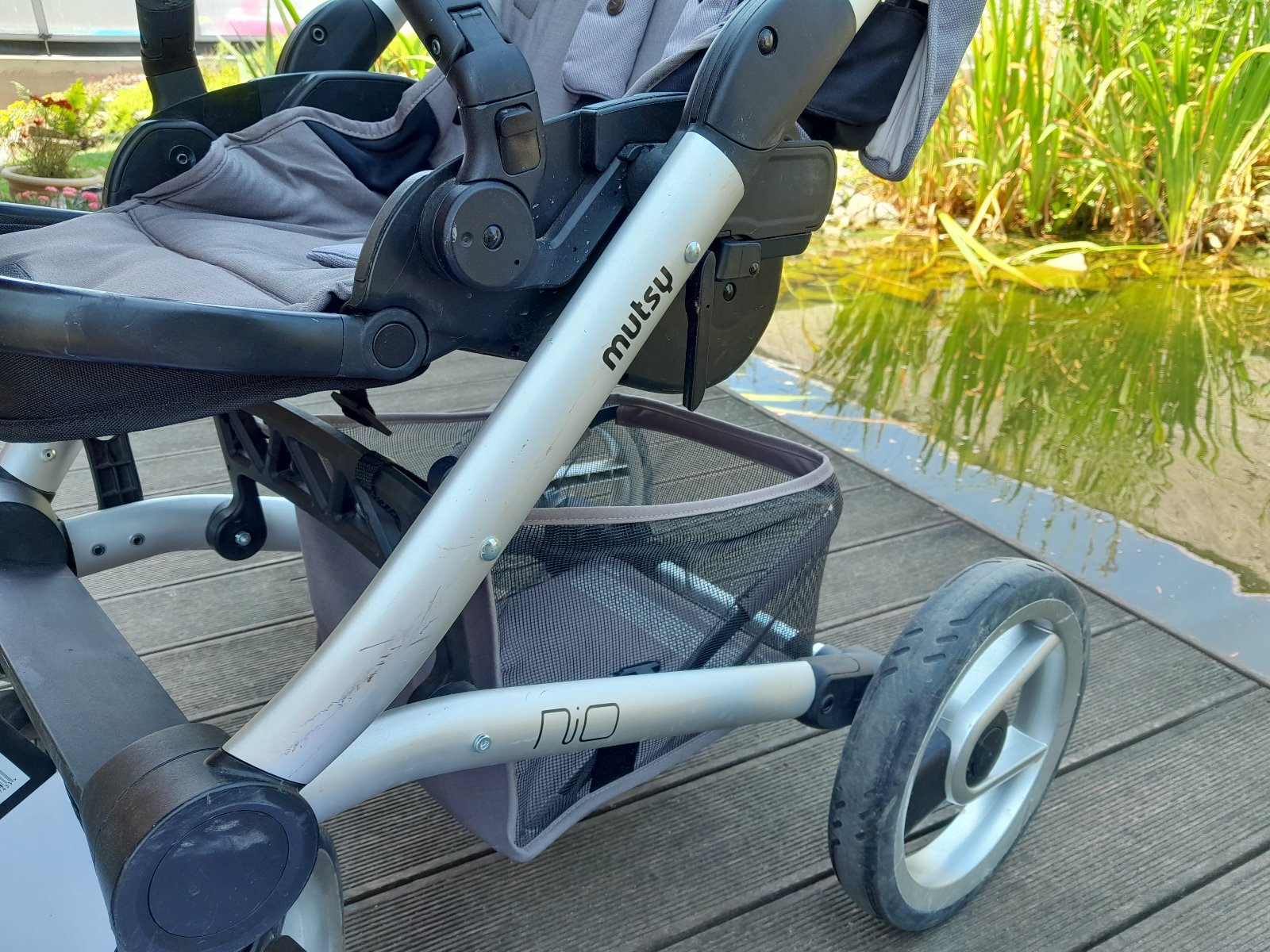 Predám kočík Mutsy nio 2v1 (vanička + športová časť), ku tomu pláštenky pre oba typy a sieťku proti hmyzu. Kočík môžem vrelo odporučiť, bola som s ním veľmi spokojná. Je to úžasný kočík s ľahkou manipuláciou. Sedacia časť sa dá otočiť ako v smere tak aj v protismere jazdy. Veľkou výhodou je jeho jednoduché skladanie bez odňatia športovej verzie, ktorý v batožinovom priestore nezaberie veľa priestoru. Športová verzia sa dá sklopiť do úplného ľahu, takže dieťatko si počas vychádzky vie pohodlne zdriemnuť. Rukoväť je nastaviteľná bez kĺbového mechanizmu (za mňa omnoho lepšie, pretože sa ľúbia v tomto mieste rukoväte poškodiť). Časť pri nožičkách dieťatka sa dá podľa potreby polohovať. Pre bezpečnosť dieťatka je súčasťou nastaviteľný 5bodový pás. Na vaničke ako aj pri športovej verzii je otvor so sieťkou, cez ktoré dieťatko môžete vidieť a ono Vás. V prípade potreby zakryť látkovou časťou. Obrovskou výhodou sú gumené kolesá, kde oproti kolesám s dušou nedôjde ku defektu (tú strelu pri defekte nechcite zažiť). Kolesá sa dajú prepnúť do režimu, aby sa neotáčali a išli priamo.