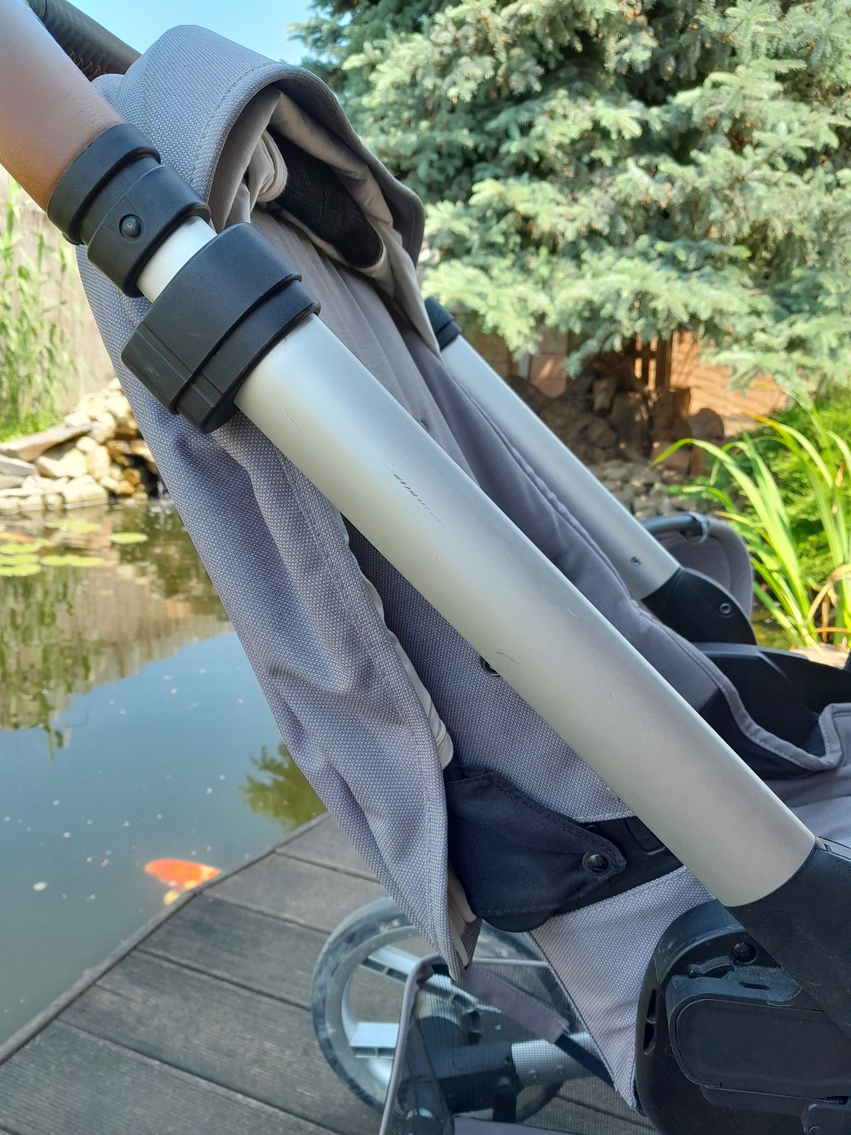 Vanička bola používaná minimálne. Športová verzia častejšie používaná, ale bez poškodenia. Kočík má z dôvodu použitia niekoľko škrabancov na ráme, ktoré sú zobrazené na fotkách.