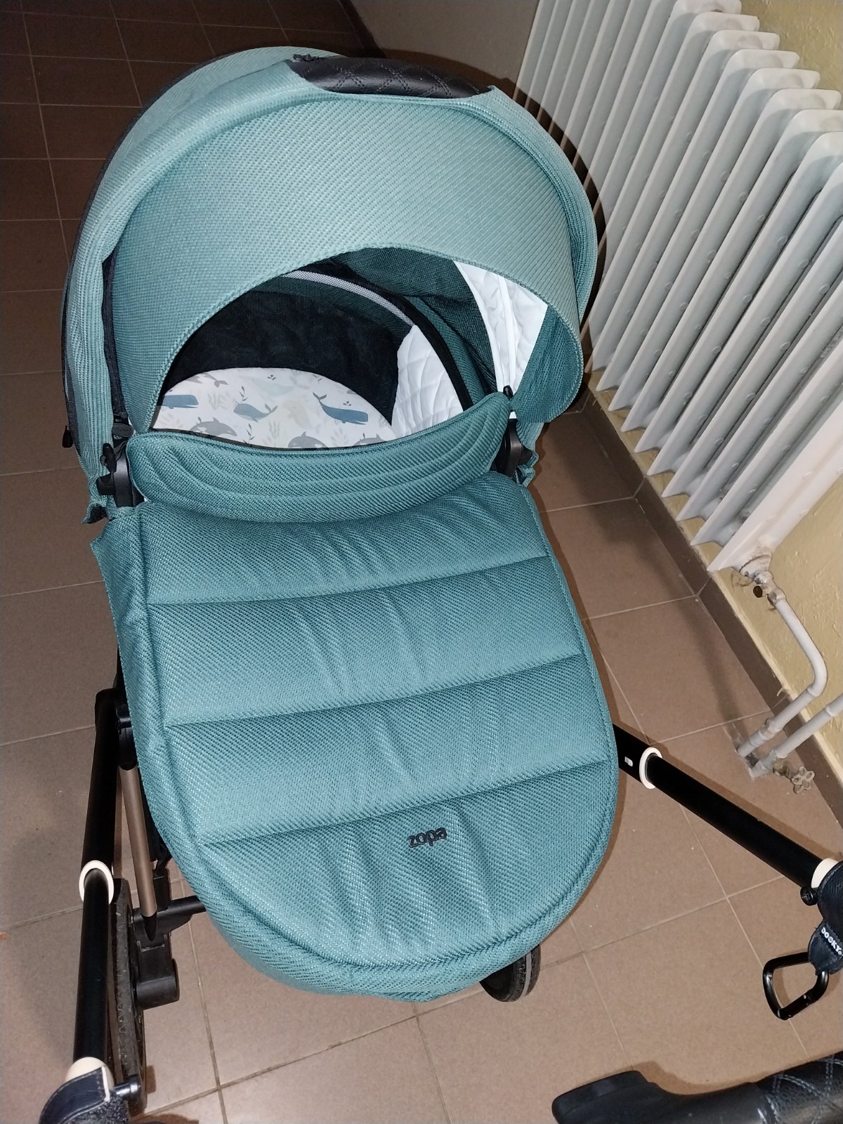Vanička vo farbe antique green , sportova časť vo farbe granit grey , na jednej strane konstrukcie je trosku oskrety, inak nema ziadne poskodenia. Pridam ku kocik aj vajicko znacky cybex, dalej pridam dzriak na flasku a plachtu na matrac do vanicky