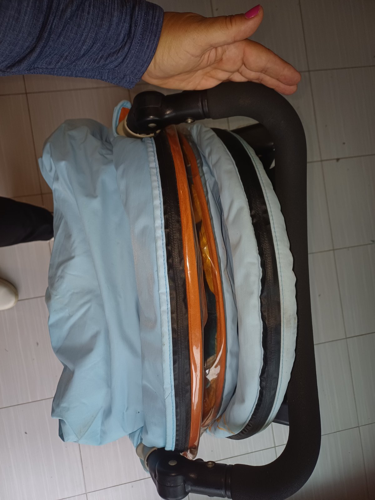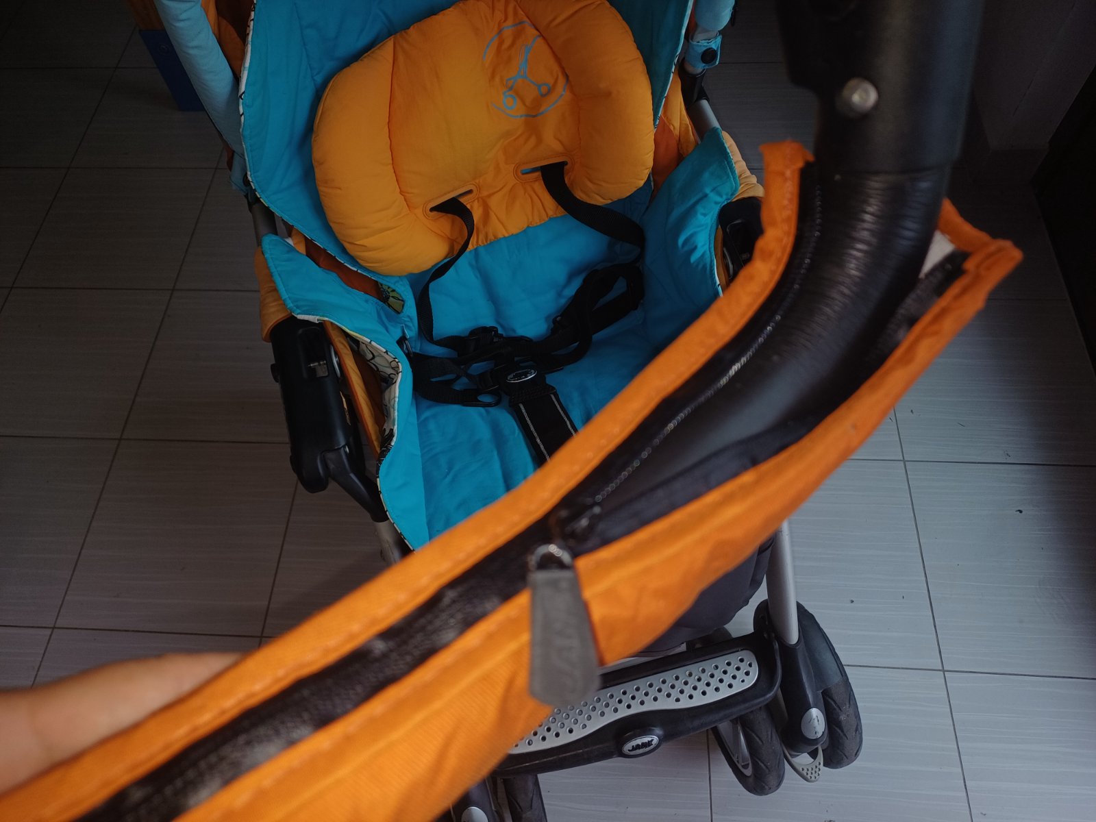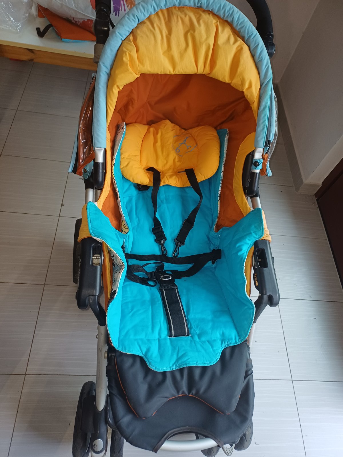 Má peknú farebnú kombináciu pre chlapca aj dievča, jednou chybou je drobné roztrhnutie fólie na strieške, ale dá sa to zalepiť a nevadí to používaniu. Len osobný odber Nitra.