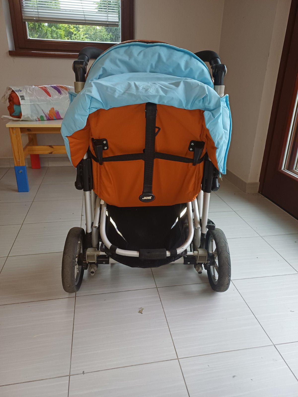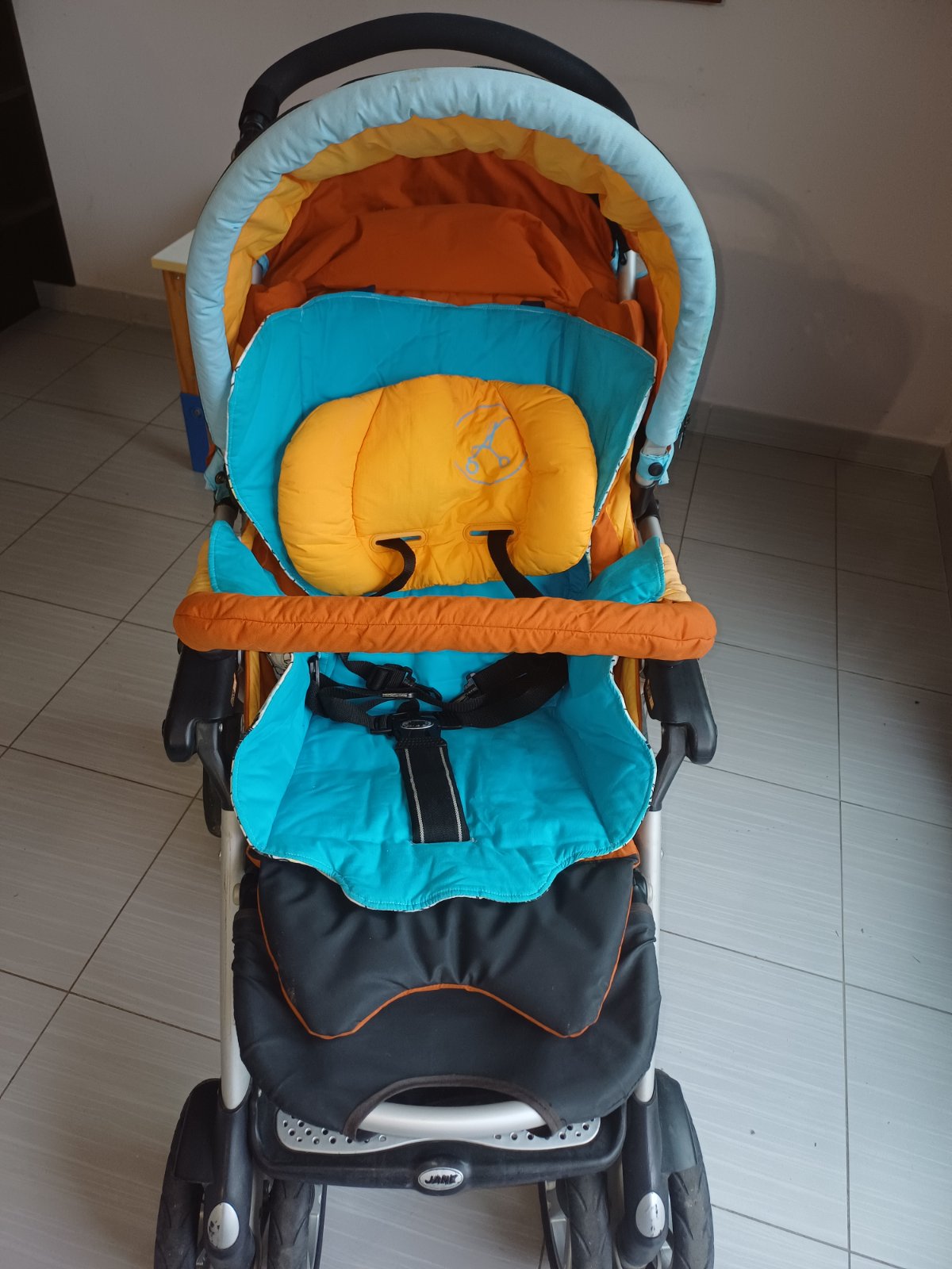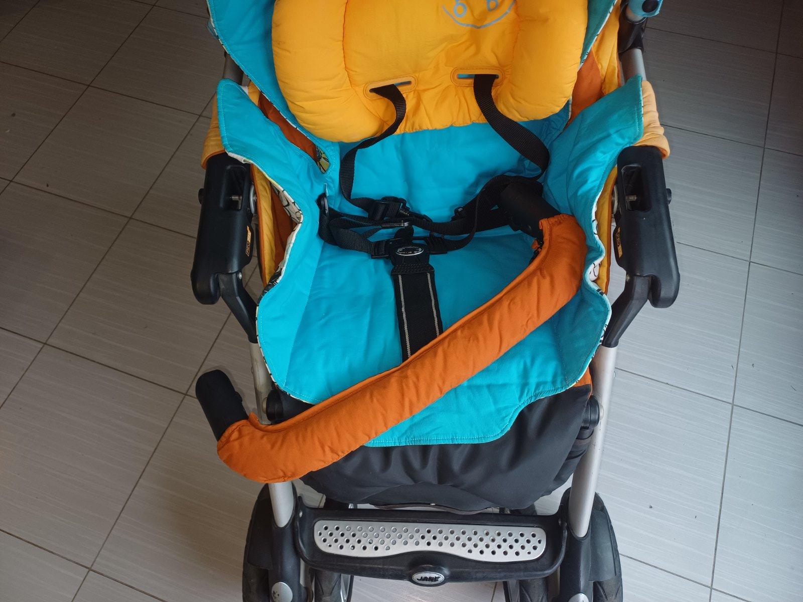 Používaný z najpopulárnejších kočíkov pre väčšie deti, stále funkčný, je k nemu vanička aj vajíčko, dobre sa v ňom spí, lebo vanička je široká, polohovateľná a športová časť je nielen široká, ale dá sa dať do ľahu, kolieska sa dajú dať do aretácie aj zaistiť do rovna pri chodení po snehu - bez problémov prejde aj Tatry, jeho najväčšou výhodou je skladanie športovej časti len jedným pohybom, žiadne oddelovanie - zmestí sa dobre do auta, a je hliníkový, čiže ľahučký. Má nánožník na vaničku, na športovú časť, všetko originály Jané, sú veľmi dobre zateplené. Ku kočíku je originál taška. Všetky časti sú prateľné, ľahko zmontovateľné. Vanička má zabudovanú moskytierku - stačí len vytiahnuť. Vanička sa dá mierne polohovať, výhoda pri refluxe.