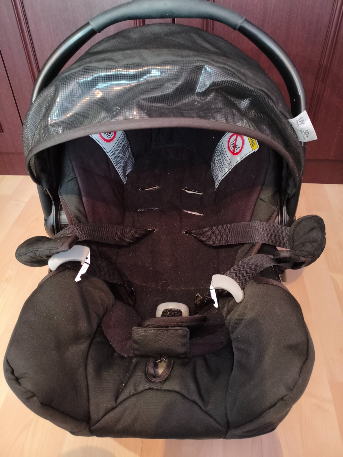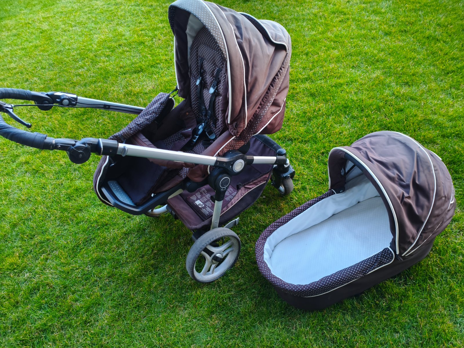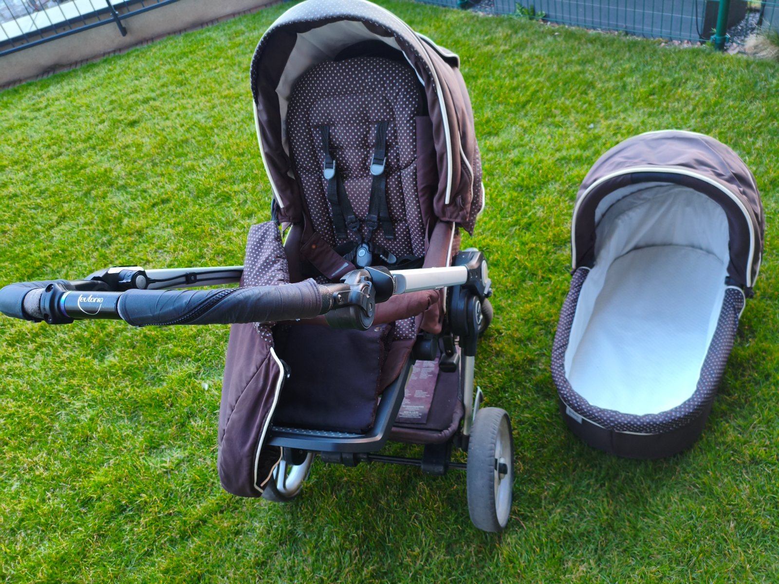 -Kočík s brzdou - ručnou aj nožnou(fixovacou). Ma malé nedostatky- odkladací priestor pod kočíkom je z jednej strany uvoľnený a trochu odstáva, ale drží to, je to skôr estetický problém.