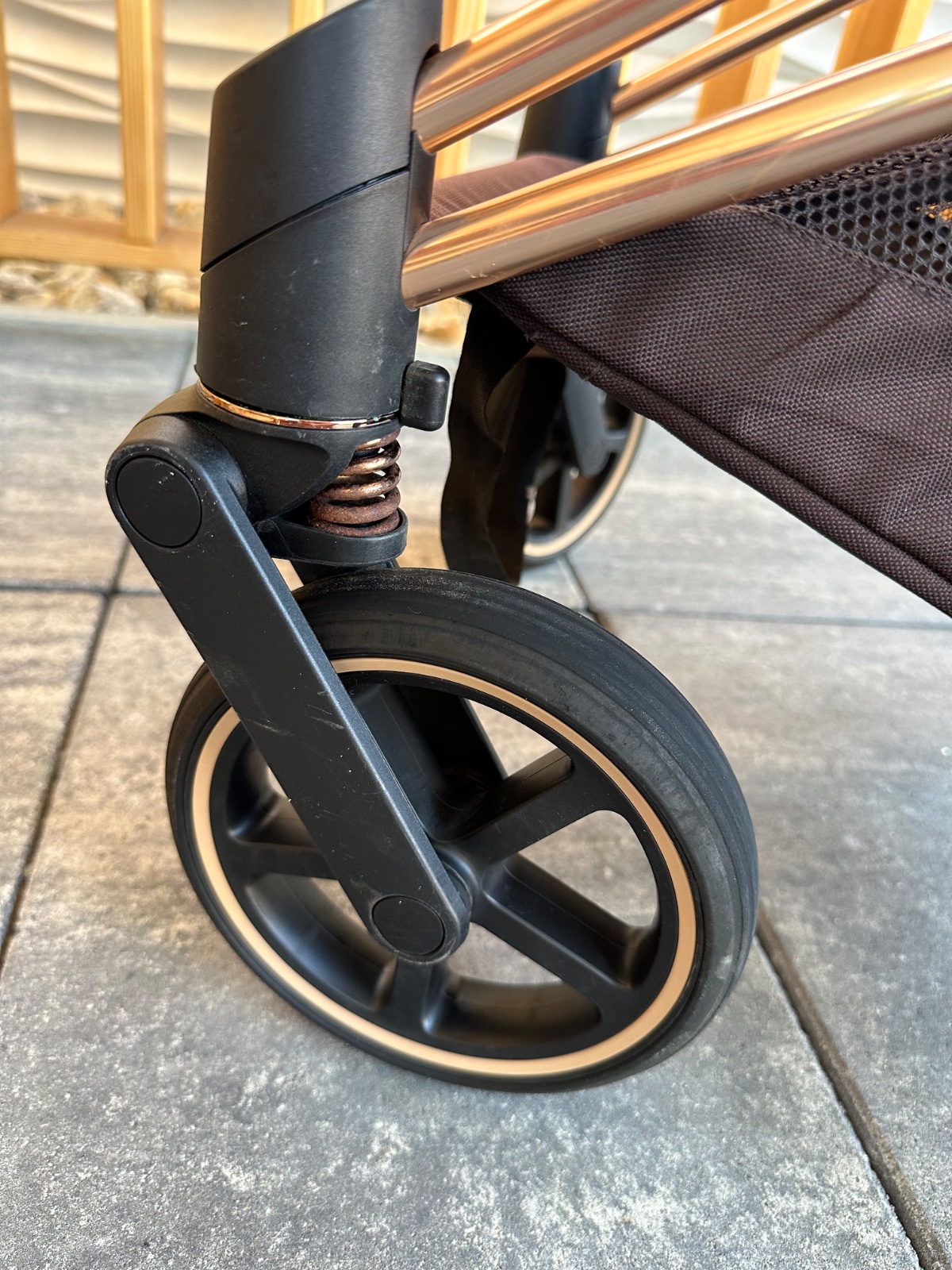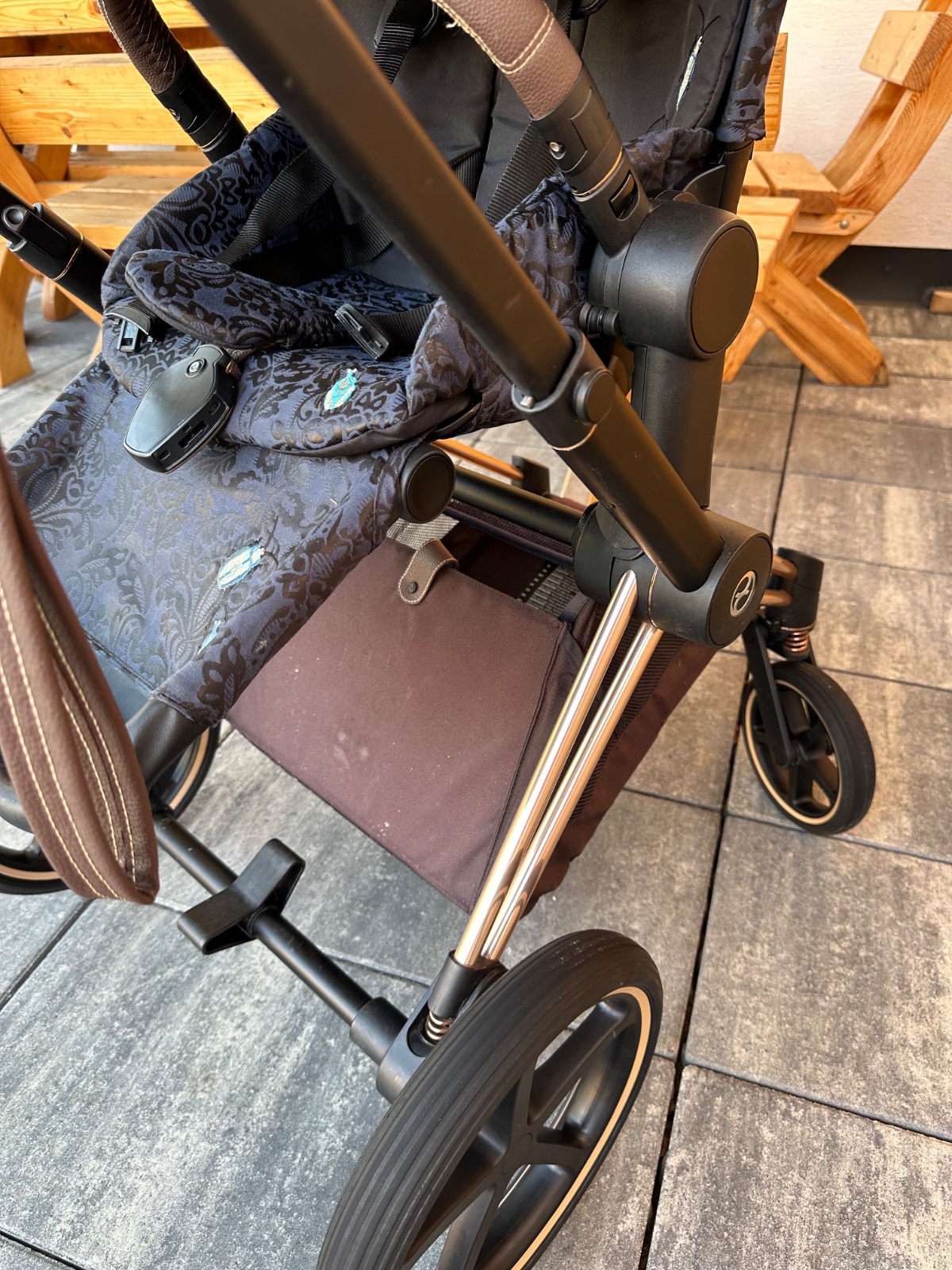 Predám Cybex Priam podvozok Rose gold a športové sedenie s pláštenkou. Podvozok kupovaný v roku 2019, seat pack v roku 2022. Podvozok má vyblednutý košík na odkladanie vecí, bežné známky používania, jemné škrabance a rodičovské madlo je trocha ošúchané. Seat pack v top stave, málo používaný. Cena 400€