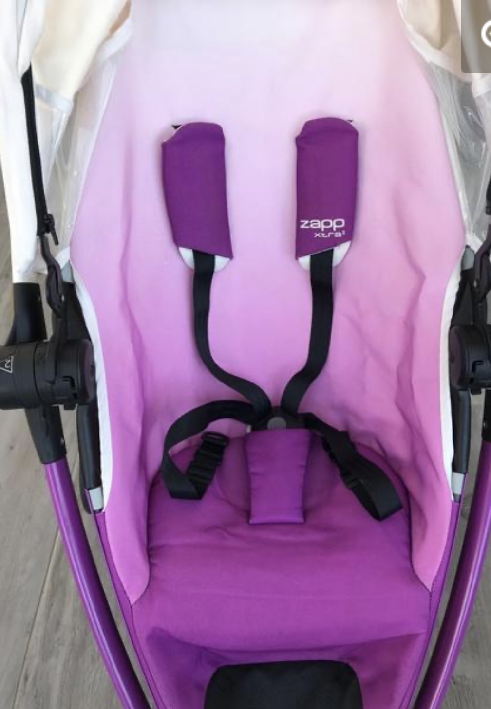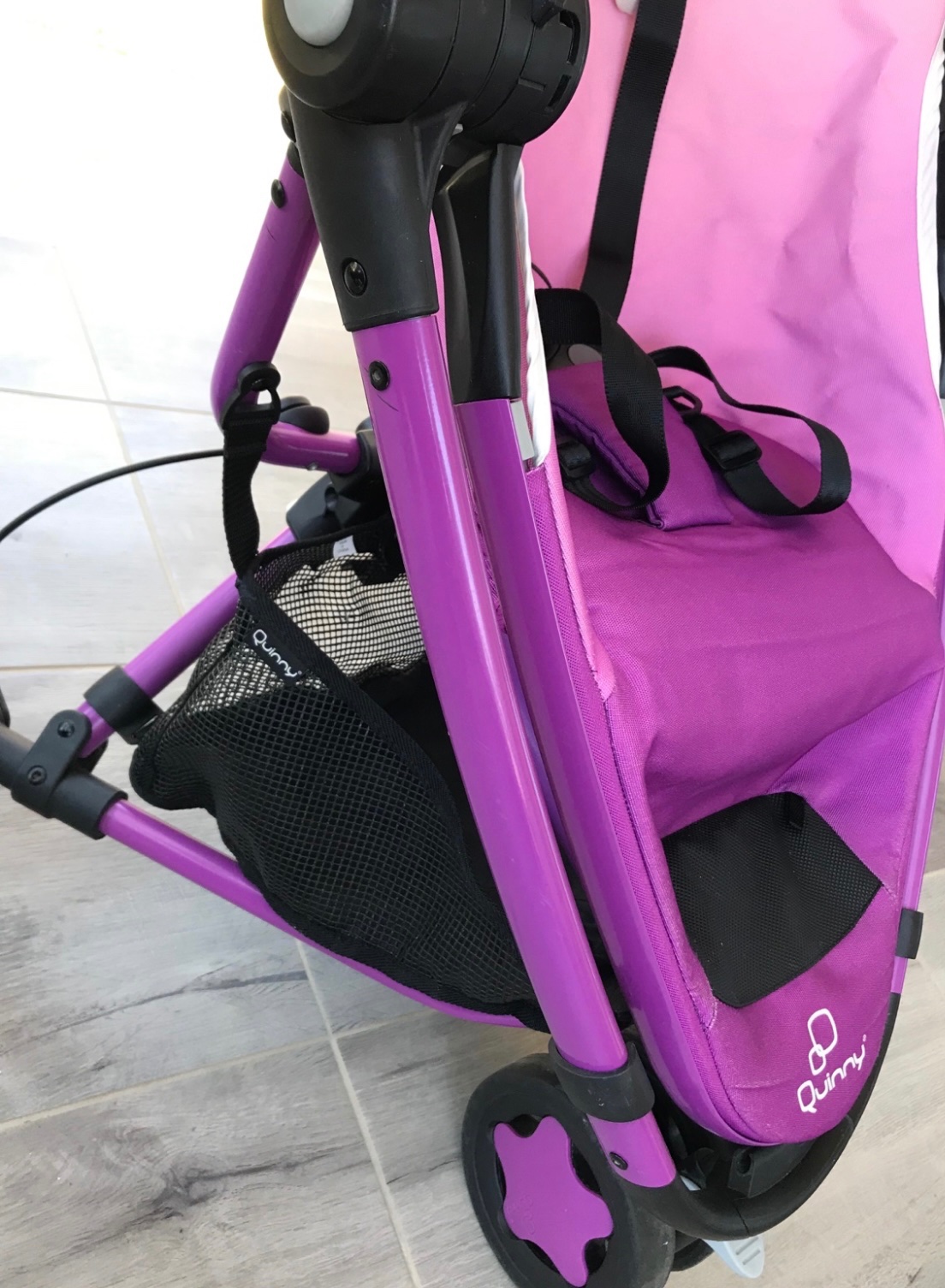 Quinny xtra 2 úžasne skladný kočík, skladá sa priamo so športovou časťou, dá sa polohovať a navyše je aj otočný v smere a protismere jazdy,obsahuje adaptéry na ktoré je možné upevniť autosedačku maxi cosi Cabrio fix,Peabble alebo taktiež aj Cybex aton a aj iné, takže geniálne využitie či už k lekárovi alebo ak potrebujete narýchlo vybehnúť do obchodu. Tak bol aj využívaný čiže je nezničený, kolieska nezjazdené, nevyhrkaný, akurat sa maželovi podarilo urobiť malinké dierky na športovej časti keď niečo viezol v kufri, keď dieťatko sedí alebo keď je podložka nieje to vidieť, dierky sú aj v košíku nafotené neviem ako sa mu to podarilo. Dá sa využívať aj v zime v pohode sme sa zmestili aj zo zimným fusakom, je dosť priestranný aj pre väčšie, vyššie dieťatko. Konštrukcia je v super stave malilinké odreninky skoro neviditeľne na jednom kúsku fialovom inak je ako nová a športová časť bez flakov naozaj krásne vyzerá detailne nafotené.