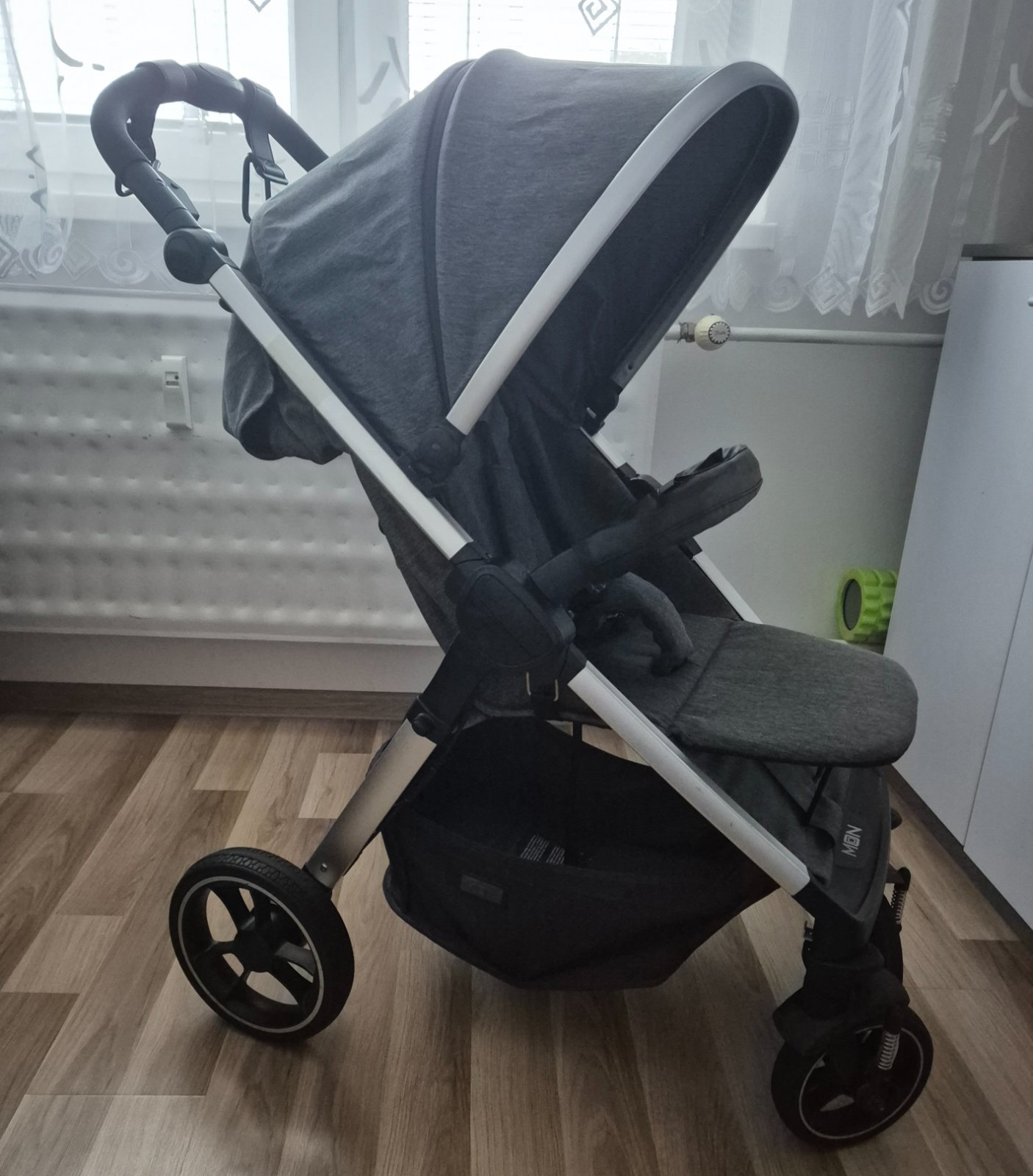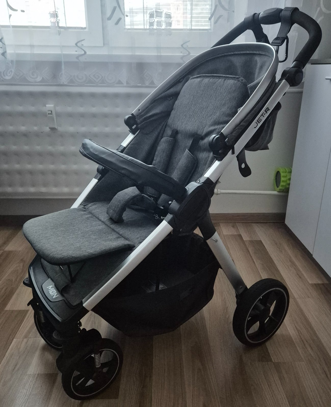 Predám kočík Moon Jet-R, vo veľmi dobrom stave. Bežné známky opotrebenia,trošku škrabnuté madlo (kočík sa skladá tak že to na tom madle potom stojí ), priložím pláštenku, podložku (obojstrannú oranžovo sivú), sieťku proti hmyzu, tašku na kočík, original nánožník,kt.sa dá použiť či v prechodnom období alebo v zime,nakoľko má odopínateľnú podšívku.