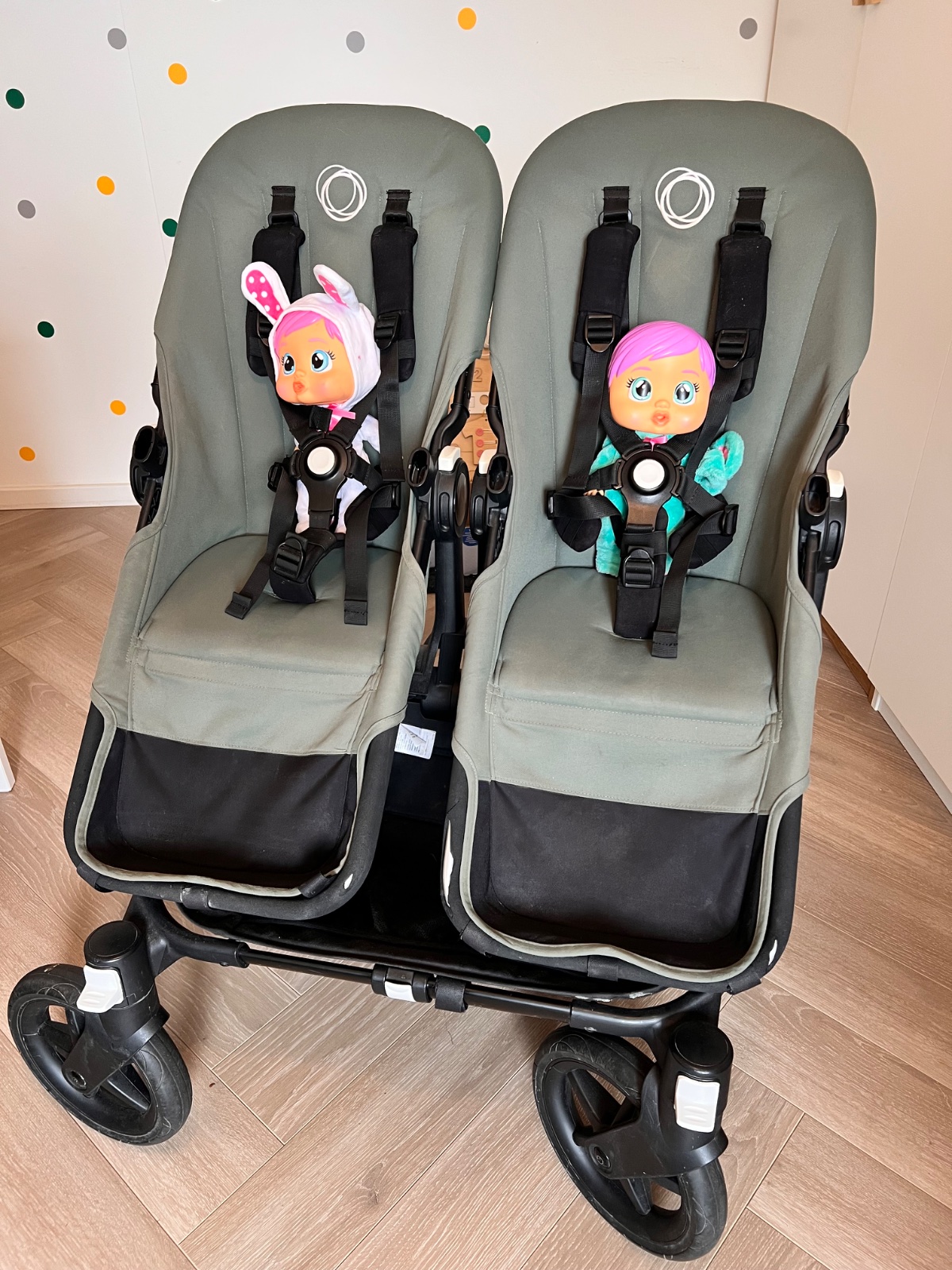 Predavam najlepsi kocik pre dvojicky bugaboo donkey 5 twin vo farbe forest green v perfektnom a plne funkcnom stave. Som prva majitelka. Kupovane v obchode pre deti 5/22. Predavam ako komplet(sportove casti, vanicky, taska, prsiplaste, adapter na vajicka).
