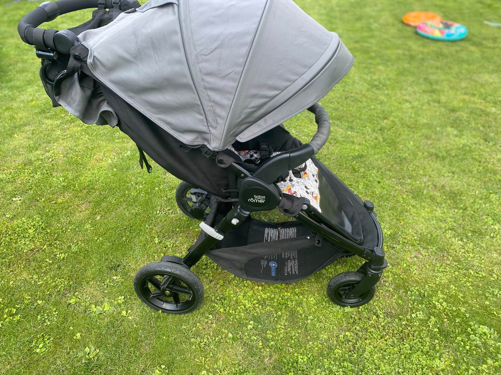 Ku kočíku prikladám: organizér Zopa, termo obal na fľašu, pláštenku do dažďa a na mieru šitú vložku Mickey