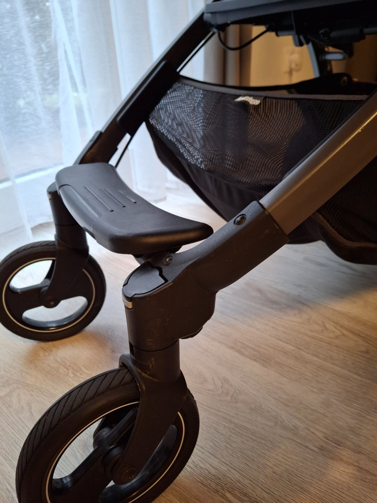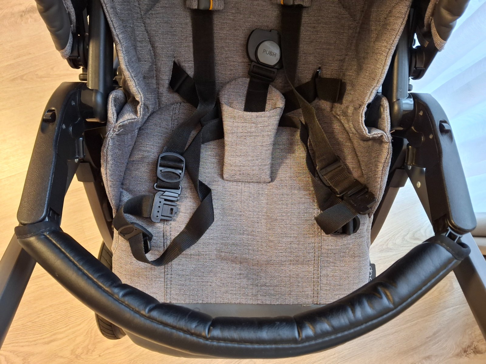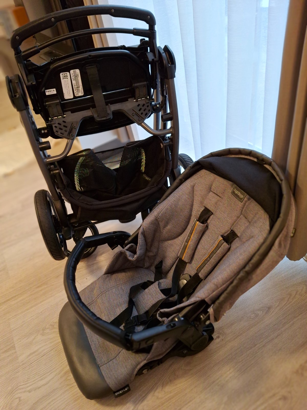 Kočík je po 2 deťoch, bol intenzívne používaný 2020-2023, potom bol deložovaný na chodbe (t.j. žiadna pivnica či povala). Je vo veľmi dobrom stave, žiadne praskliny, diery, fľaky, atď... no v závislosti od teploty je možné z podvozku počuť vrzlikanie spôsobené trením plastových častí.