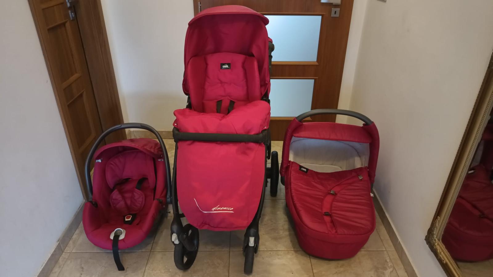 Predám v dobrom stave krásne čísté po jednom dieťati, štýlovú trojkombináciu značky CAM, model Dinamico, v nádhernej malinovej farbe, sýta farba bez fľakov. Kočík je kompletne vyčistený a pripravený pre novú mamičku.