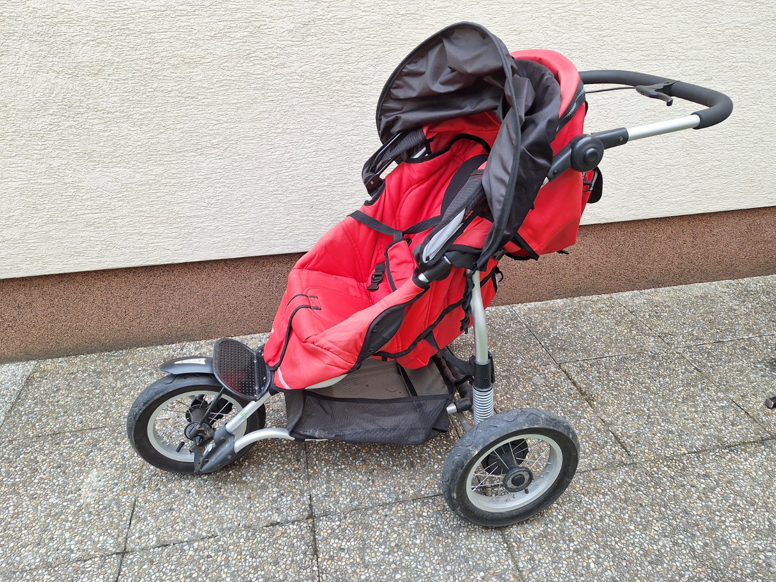 Predám športový kočík Stokke Crusi, červený poťah je jemne vyblednutý, ale stále pekný. V cene je: podvozok s košíkom, ktorý je v rohu natrhnutý (viď foto), ale je pevný a nebráni užívaniu košíka, ...