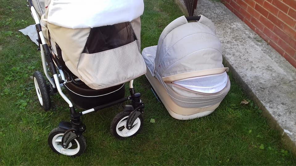 Predam 2-kombinaciu hlboky a sportovy kocik Marsel Adbor po 1 dietati. Je vo velmi dobrom stave,bez poskodeni,akurat vo vnutri tasky je skrvna,ktora nejde vyprat a sem-tam suchnutie na konstrukcii. Hlboky kocik ma super velku priestrannu vanicku(rozmery na foto) ktora sa da polohovat a postavena na zemi sluzi aj ako koliska. Da sa vyborne zapnut az po vrch-velmi vhodny na zimu,kedy dietatko mozte dobre chranit pred chladom. Sportova cast sa da polohovat do lahu,ma bezpecnostne pasy,nanoznik,odnimatelnu rukovat. Obe casti maju v streche vetranie. Kocik sa da umiestnit na konstrukciu v smere aj proti smeru jazdy. Kolieska su velke, nafukovace, vyborne odpruzene, predne otocne s moznostou zafixovania. Ku kociku je plastenka do dazda,sietka proti hmyzu a pridam i slnecnu clonu z dm. Neutralna cappuchino farba,vhodna pre chlapca i dievca. Potah sa da prat v pracke. Kupovany novy,povodna cena 280e. Kocik sa vyborne ovlada, nevrzga, nehrka, boli sme s nim velmi spokojni