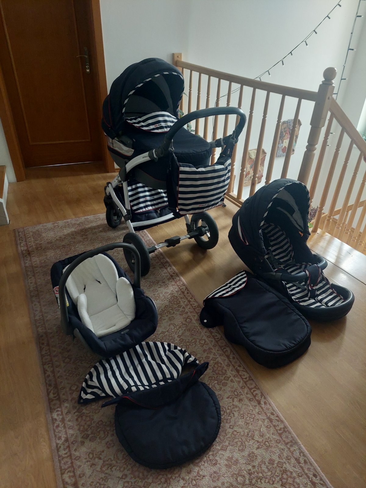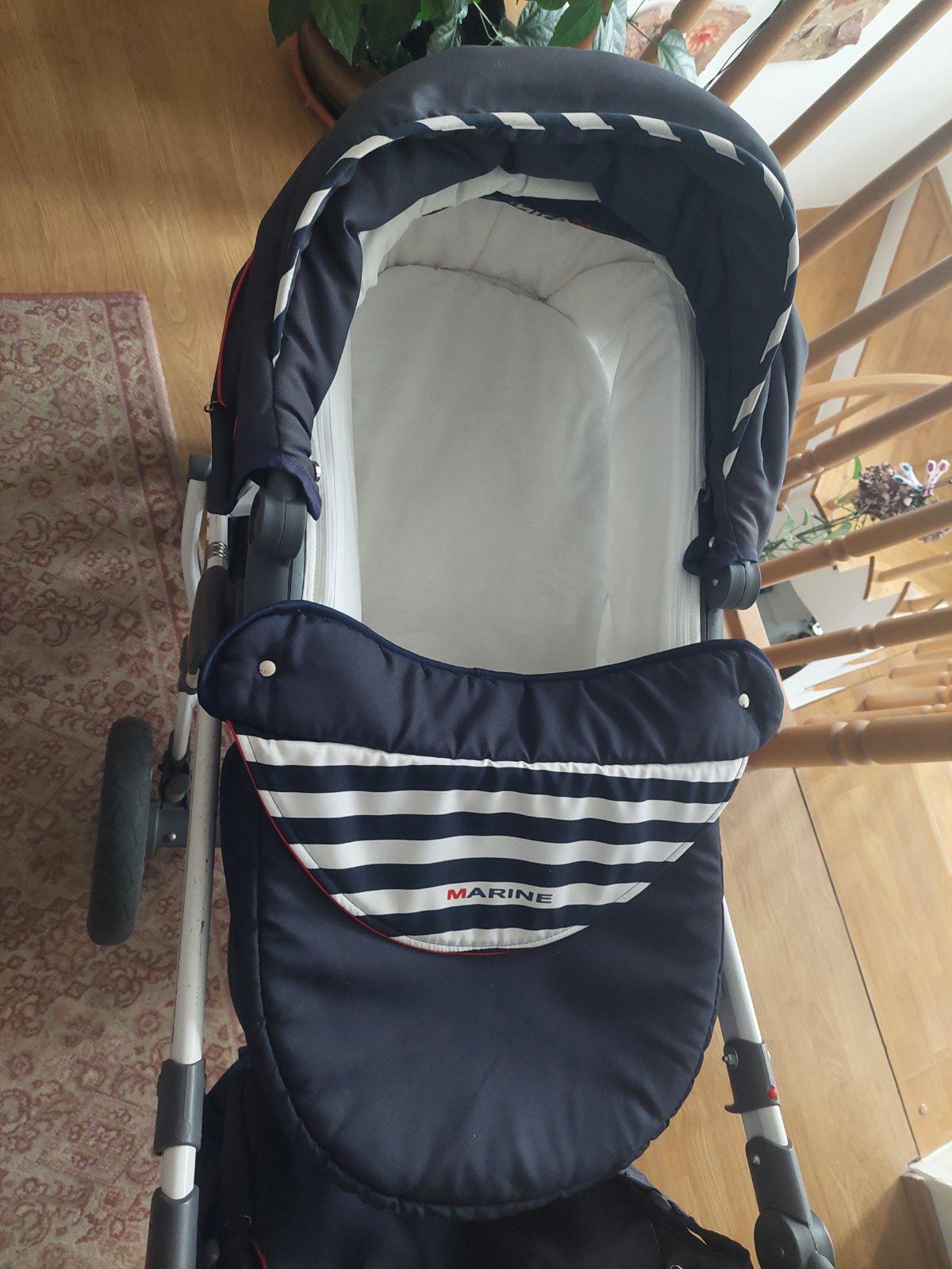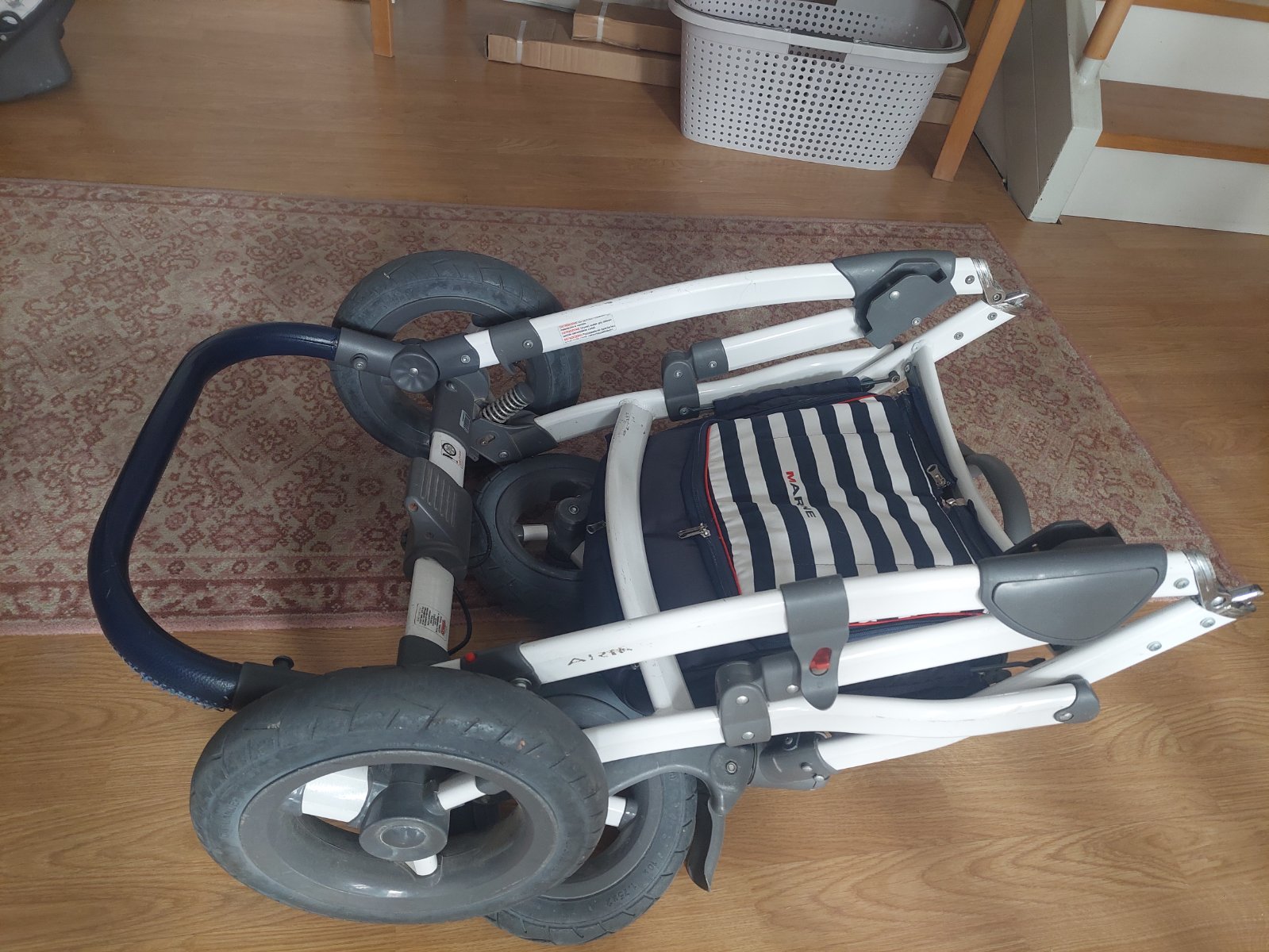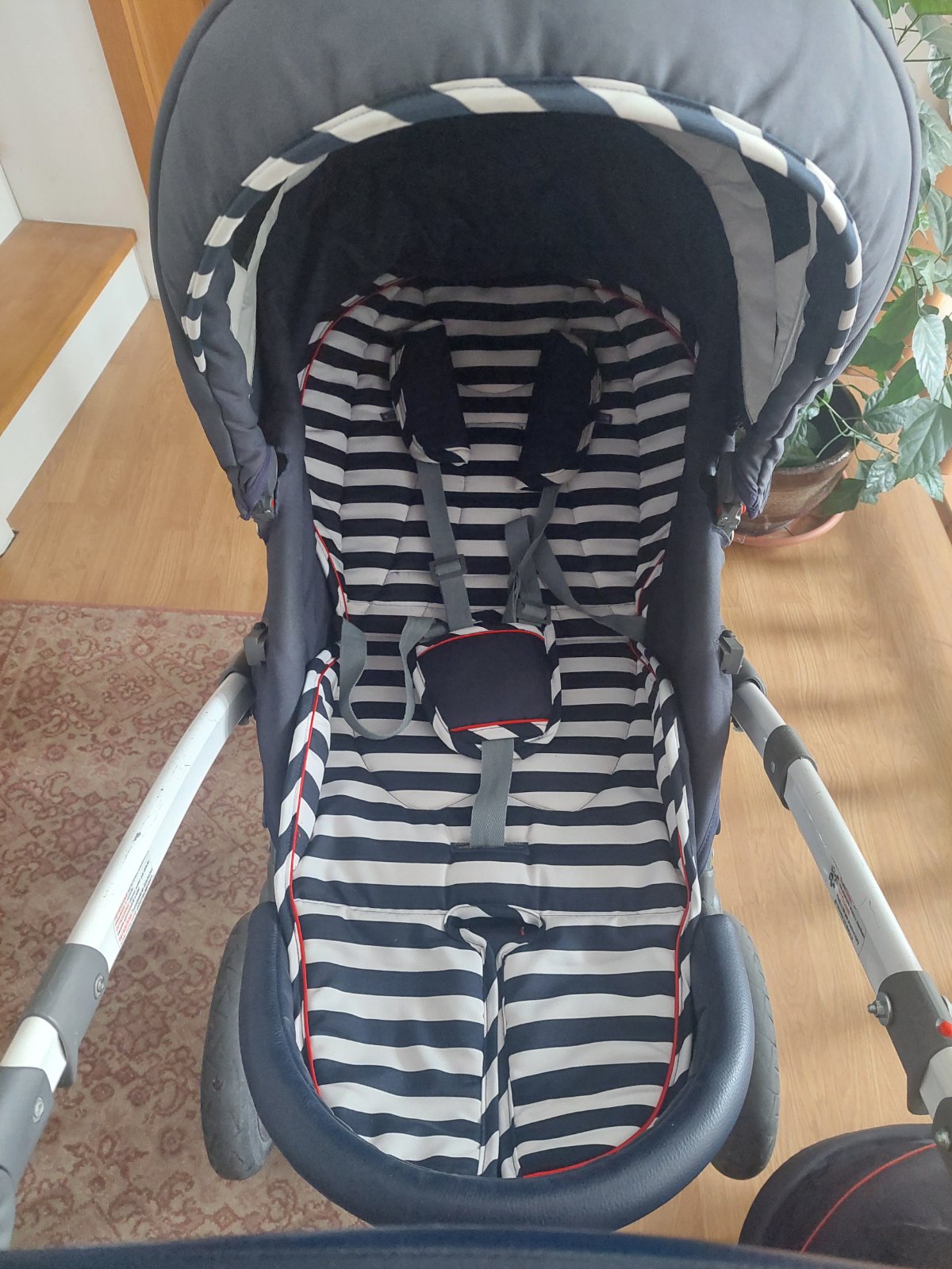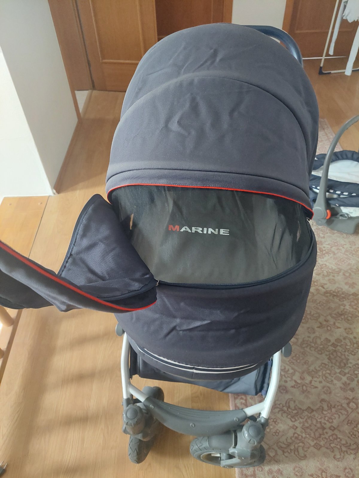 Predávame krásnu a bohatú trojkombináciu Tako City Move Marine po 2 deťoch. Kočík sa na nič nehrá, bol naozaj denne využívaný, sú vidieť stopy, ale nič vážne - nejaké škrabance na konštrukcii, poťahy sú bez fľakov, funkčne je v poriadku.