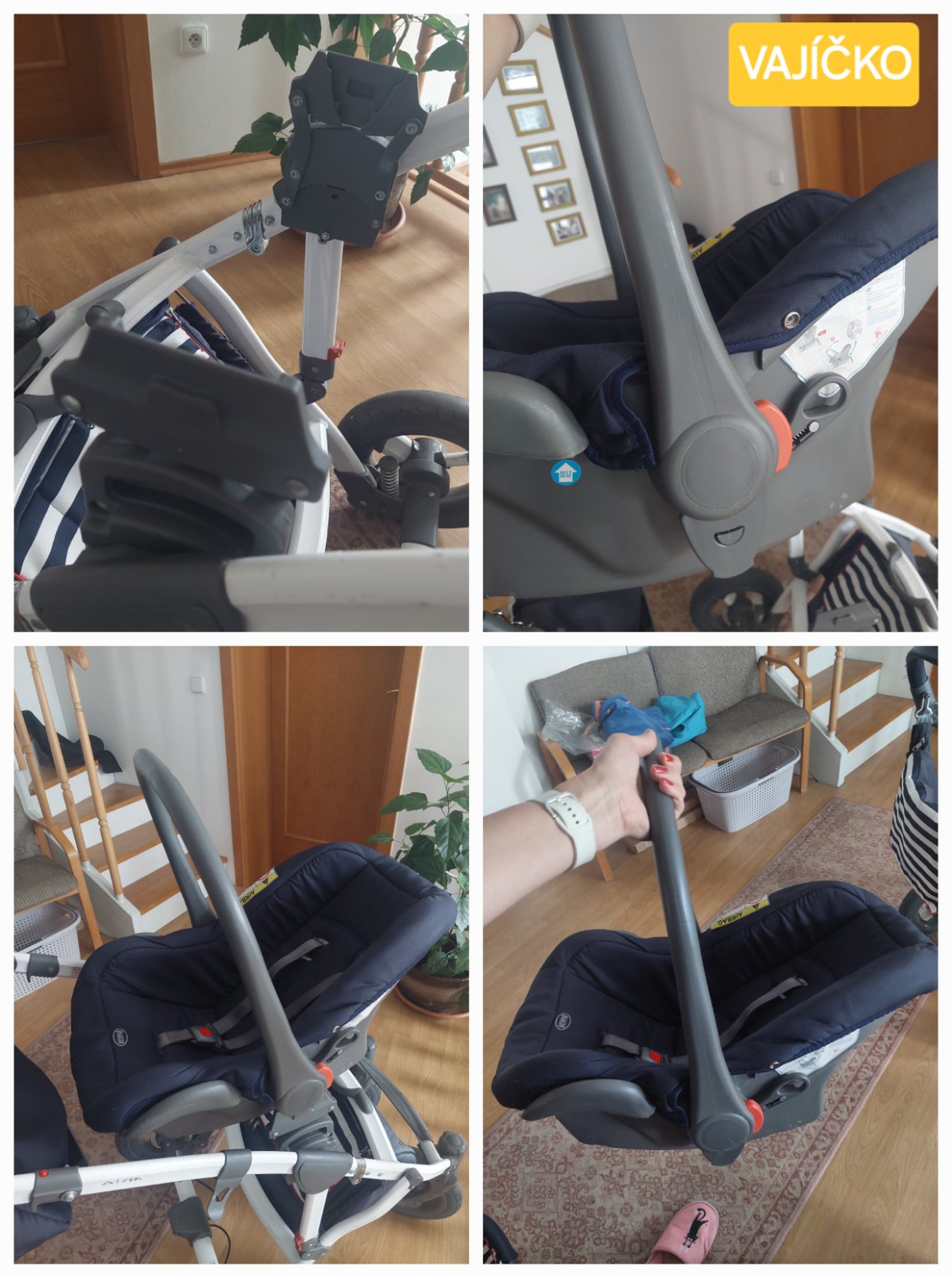 - vďaka adaptérom sa dá nakliknúť na konštrukciu (výborné, keď vám bábo zaspí v aute)