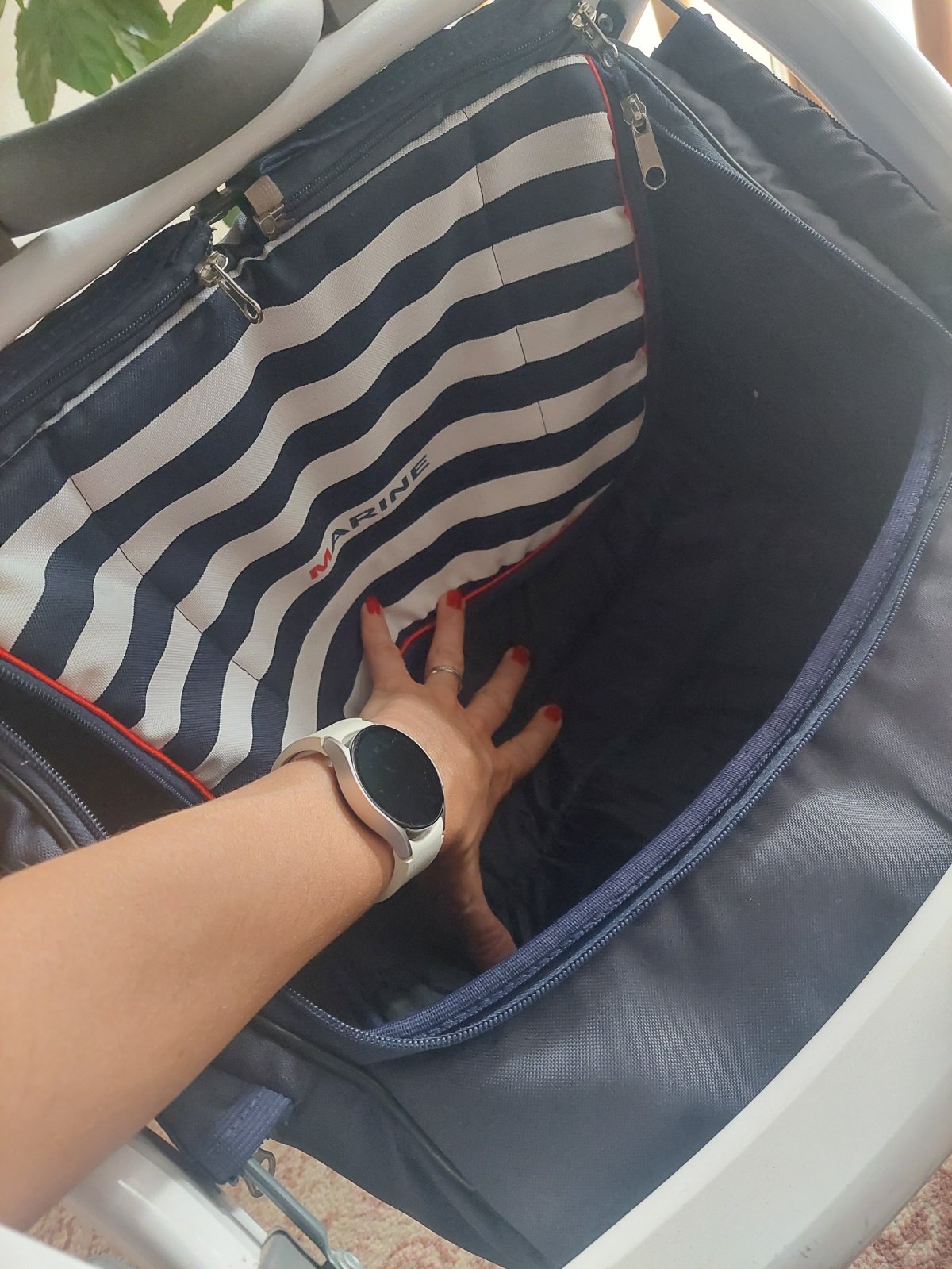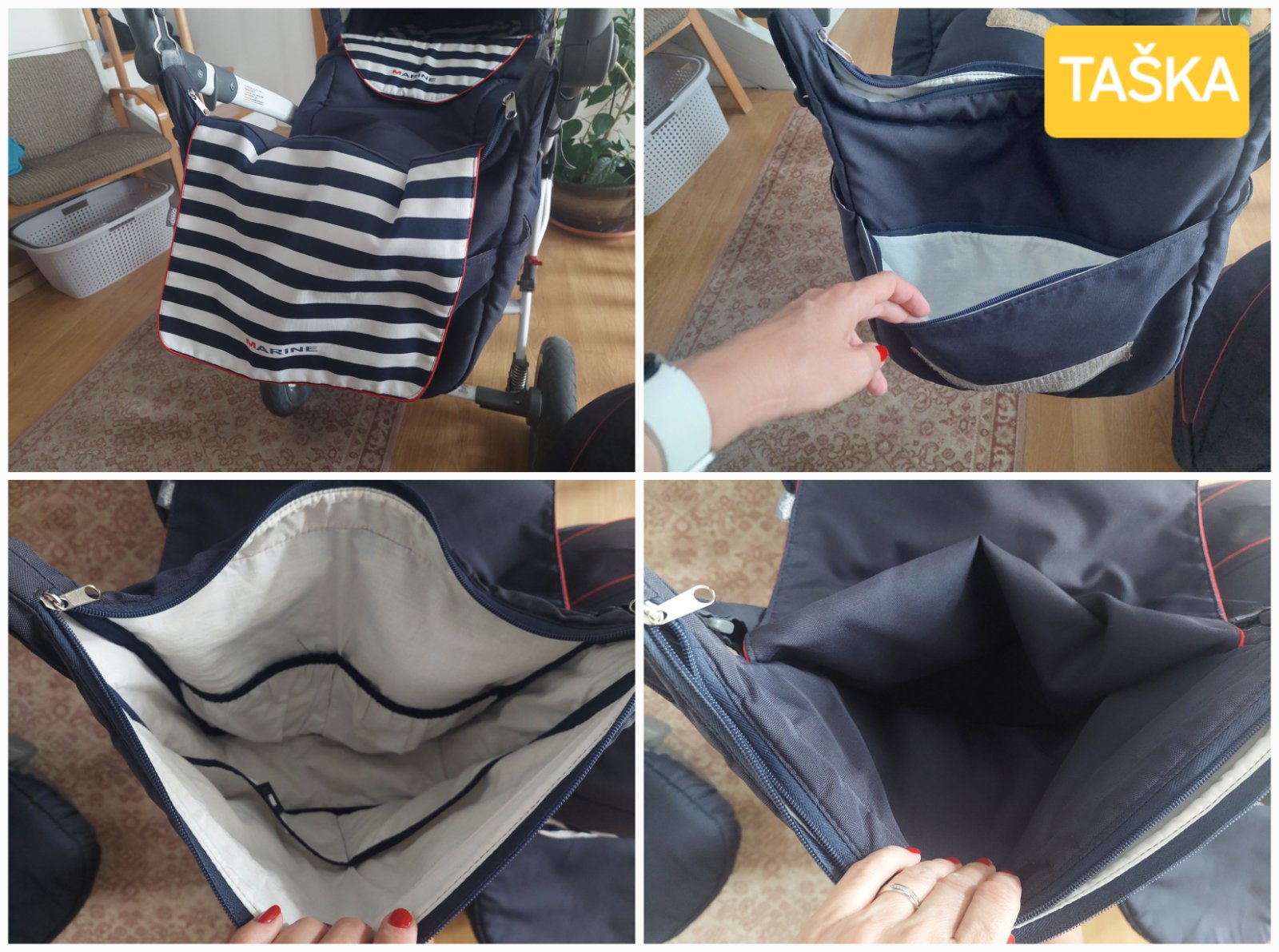 - príručná taška zavesená pri rukoväti, s veľa oddeleniami, všetky veci máte stále po ruke, veľa sa tam zmestí (aj váhovo)