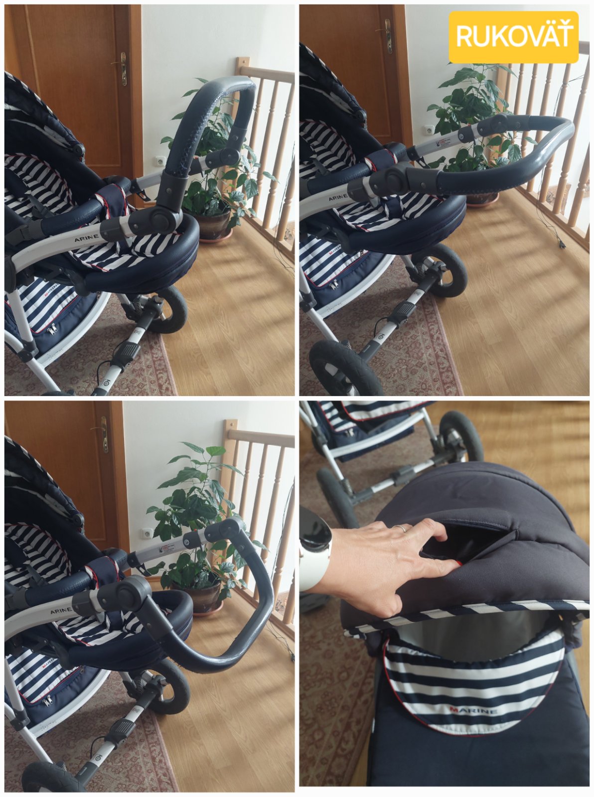 - polohovateľná a výškovo nastaviteľná rukoväť potiahnutá ekokožou (dá sa nastaviť naozaj vysoko, sme rodičia 180 a 200cm, je veľmi pohodlná)