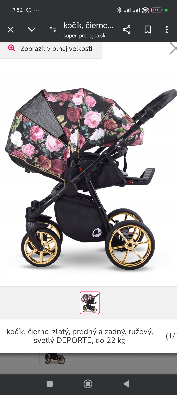 Strieška sa dá dať do polky kočíka ,čo je veľké plus , kolesá sú veľké. Žiadny problém nebol ani pri snehu, športová sedačka má 3 úrovne a to sed,poloľah a ľah.