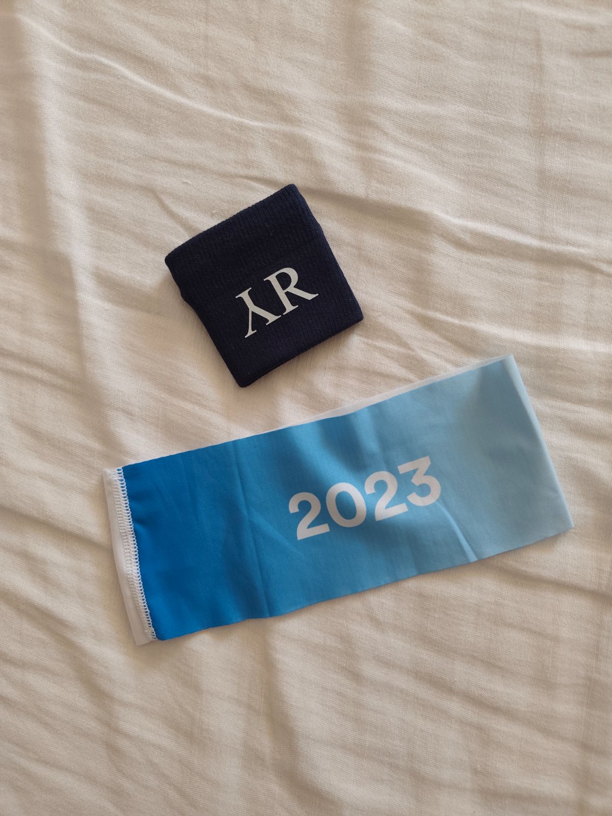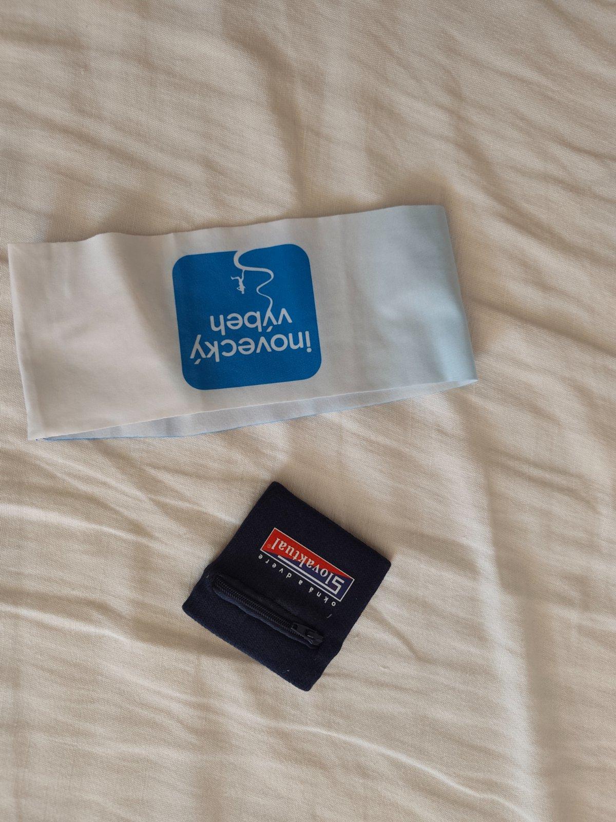 Predám lacno nové a nepoužité športové potreby. Čelenka s nápisom Inovecky výbeh a potitko tmavomodré s nápisom Slovaktual a zipsom. Cena spolu 2€.