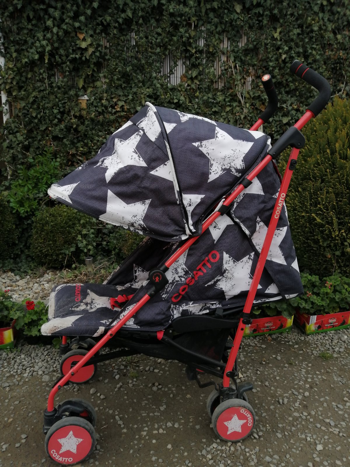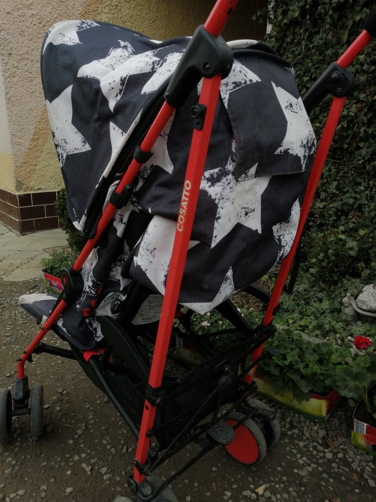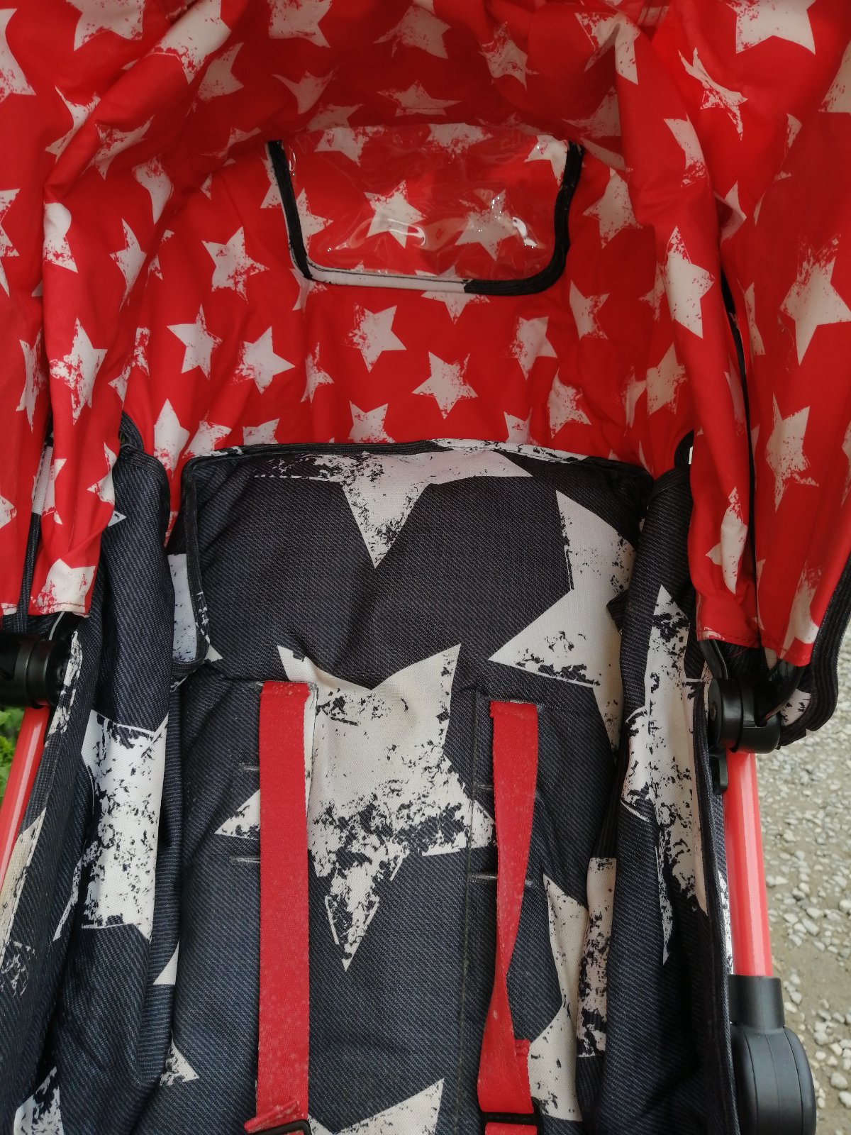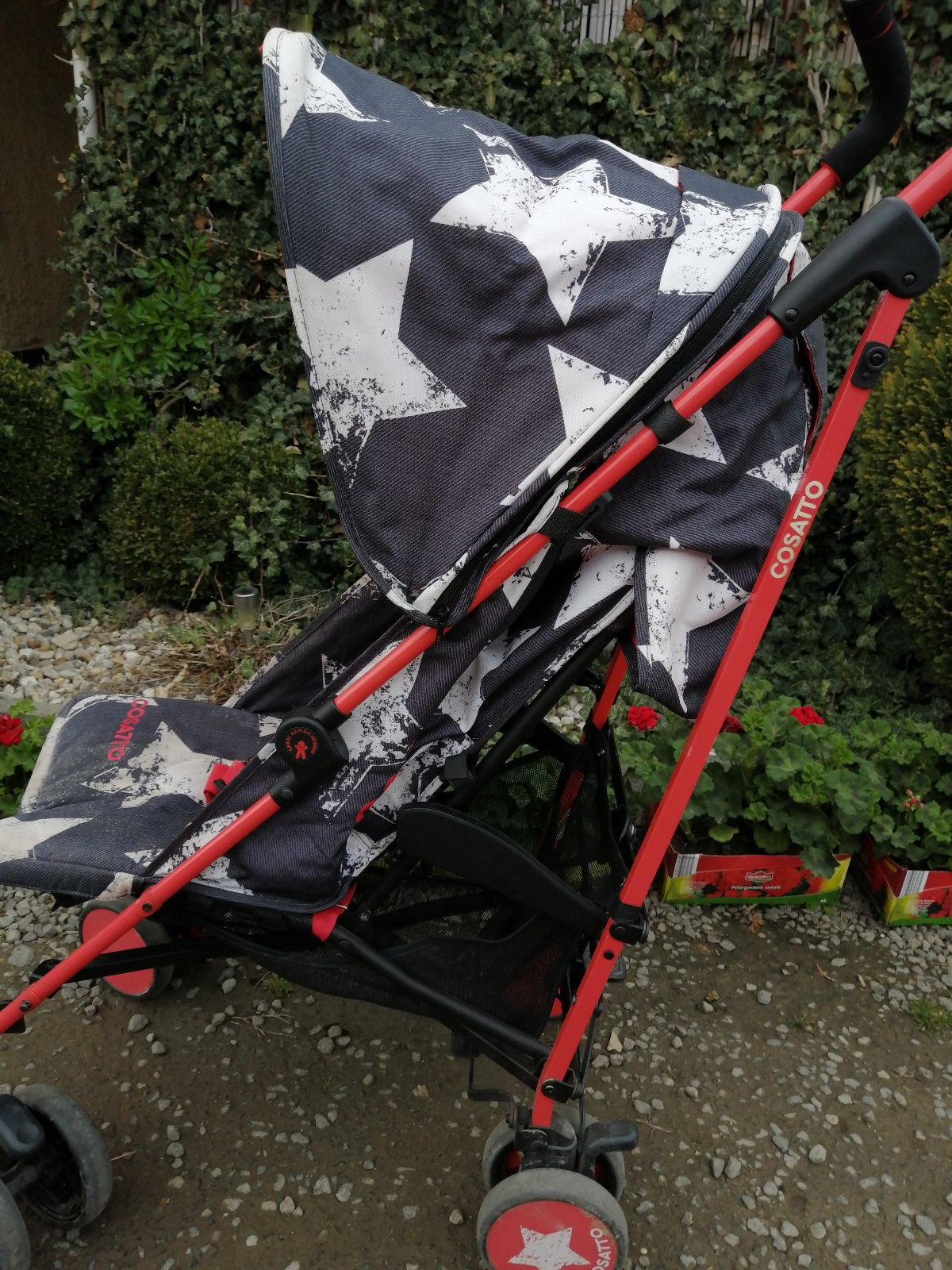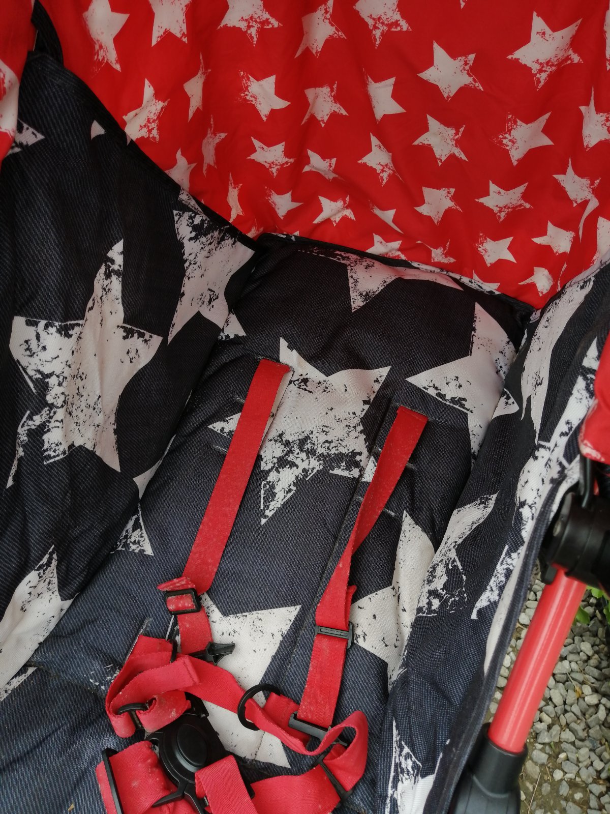 Kočík má kozmetické nedostatky, bežné známky používania, na opierke pri nohách je vyblednutie, stúpačka na nohy sa nám odtrhla, sem tam fľak, skôr na používanie na dvor, chatu, dovolenku. Inak je funkčný, perfektný, ultra ľahký, skladný, zaujímavý vzor. Je k nemu aj deka so vzorom hviezdička. Na predaj je tiež aj fusak, ktorý je v super stave. Detaily nafotené.