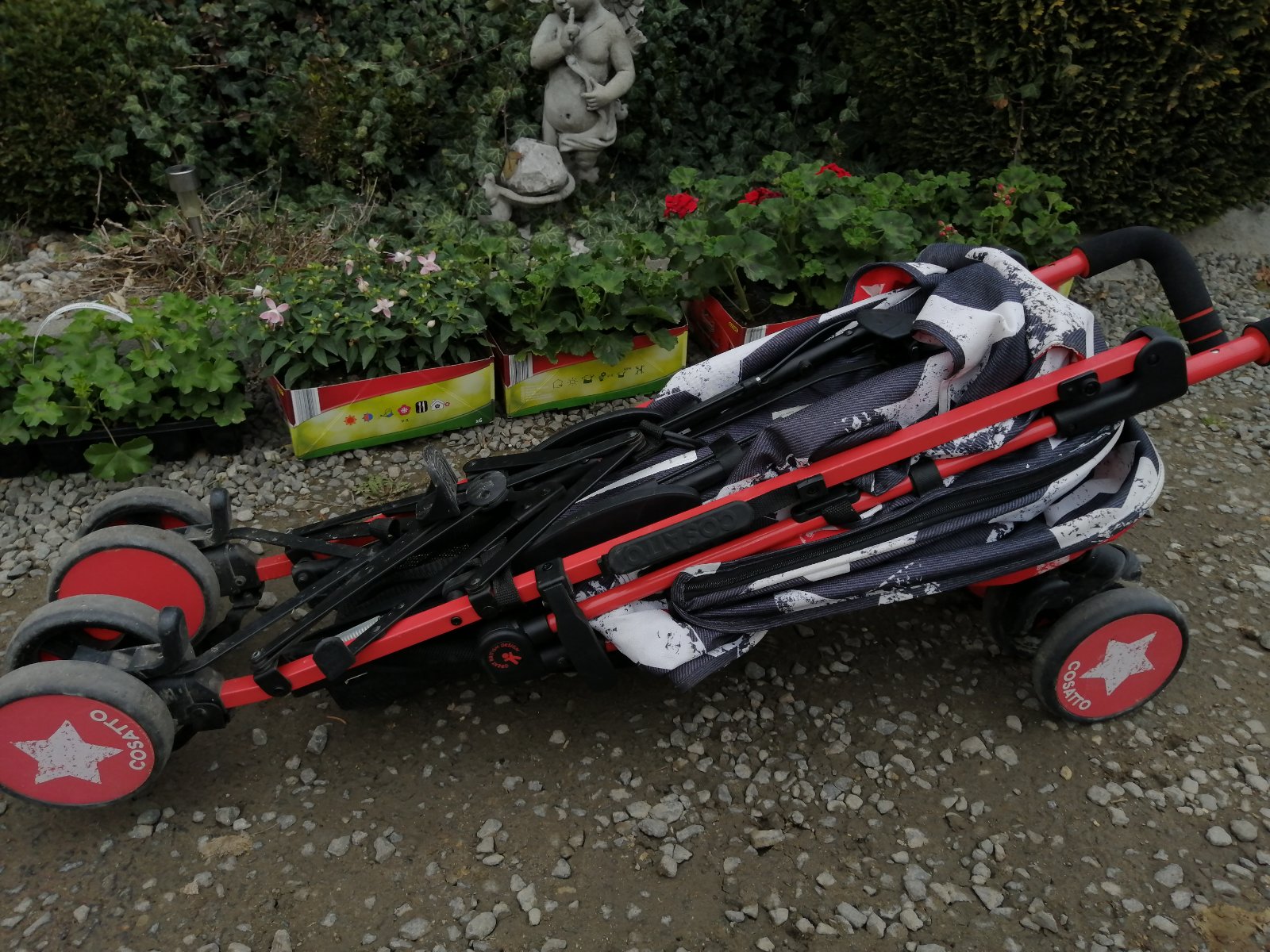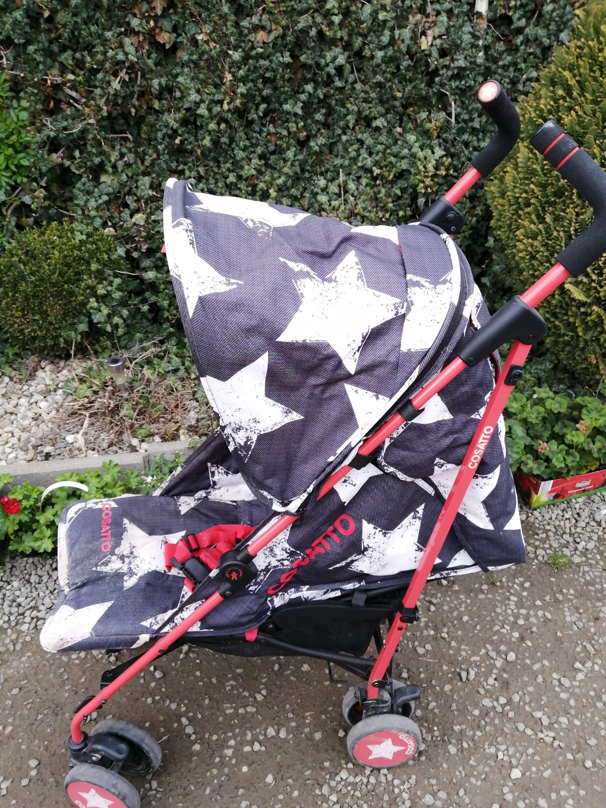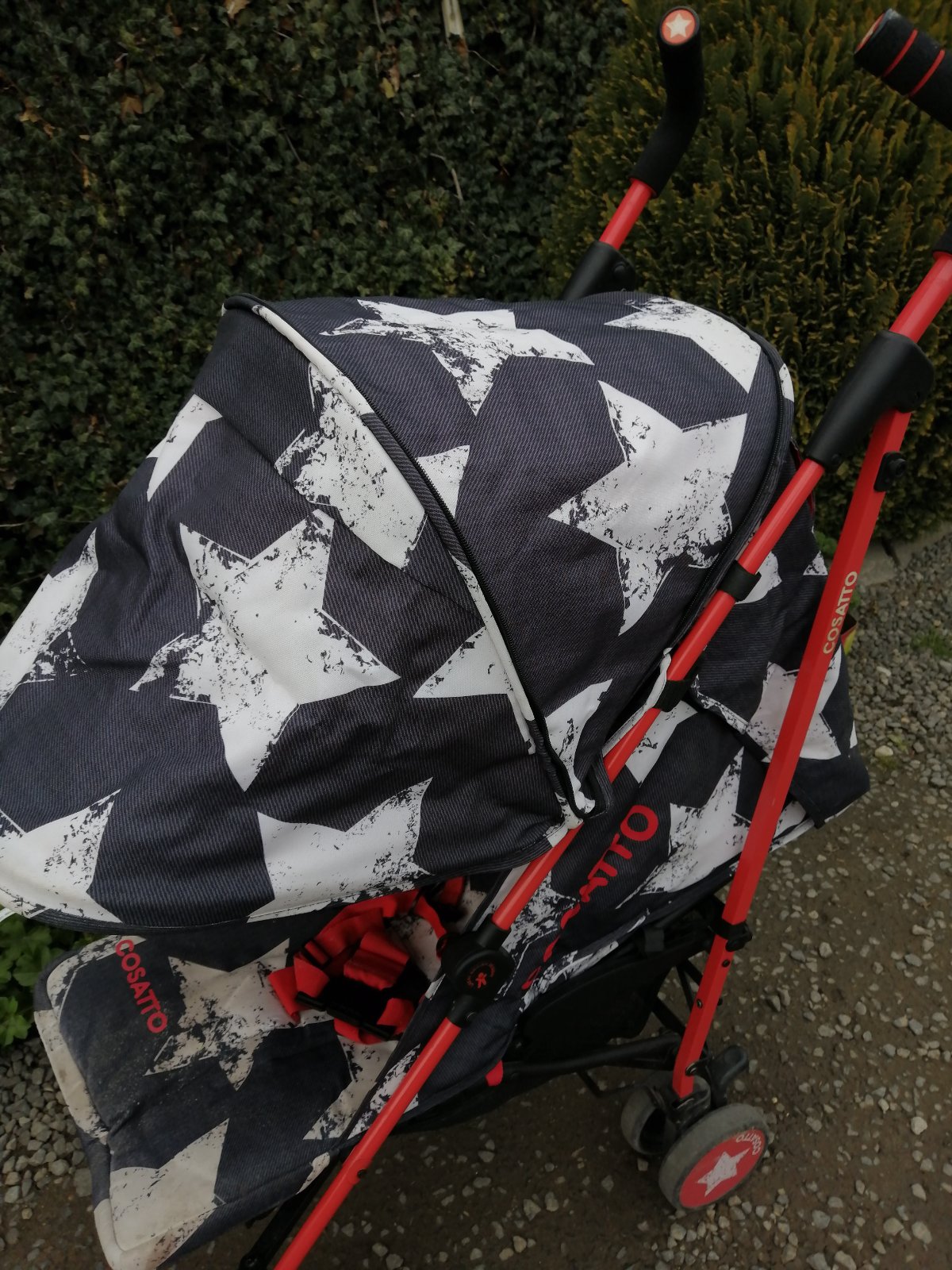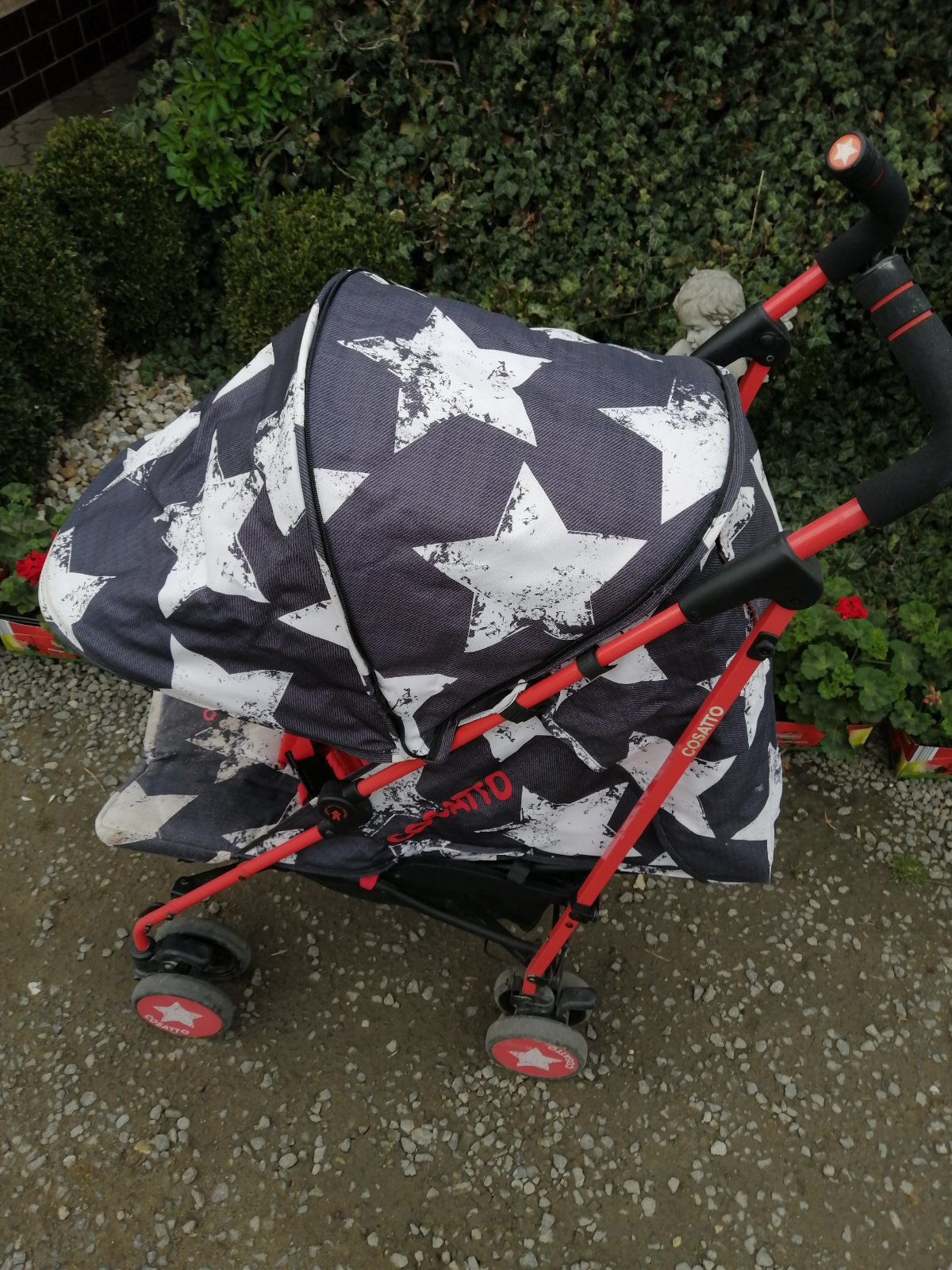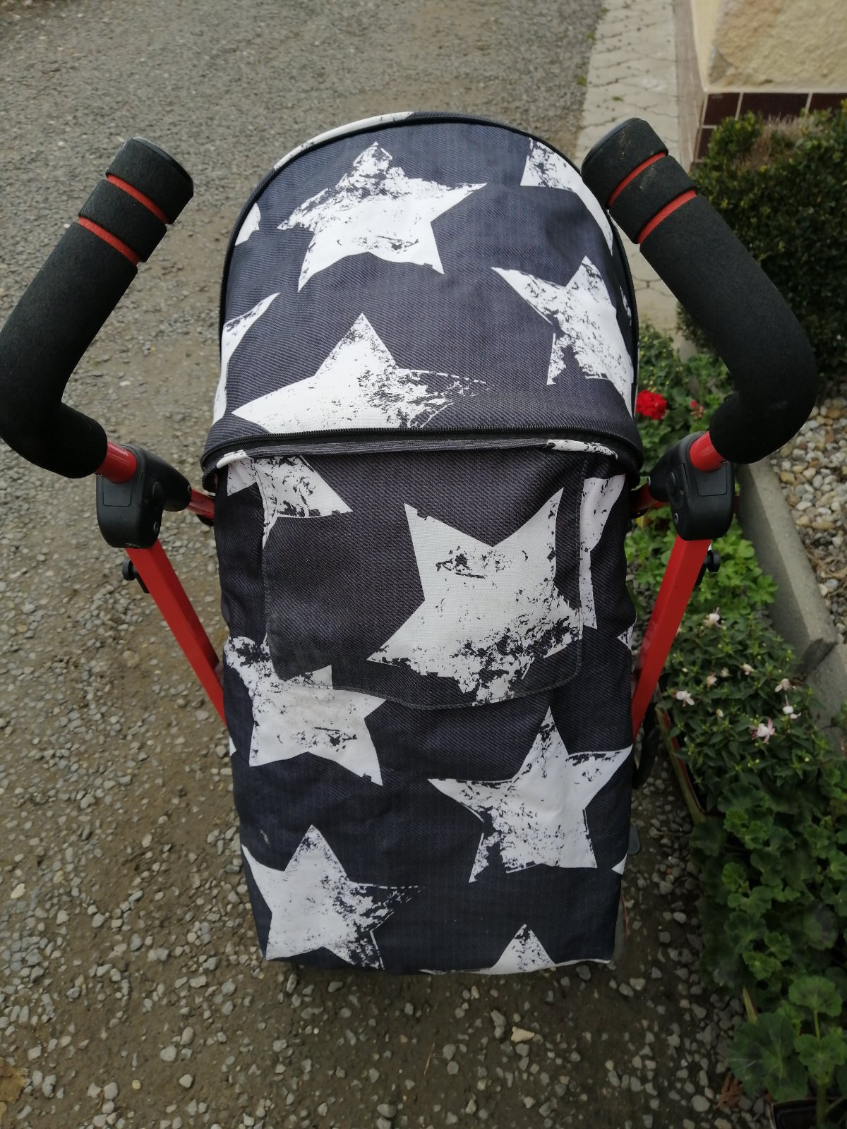 Kočík má kozmetické nedostatky, bežné známky používania, na opierke pri nohách je vyblednutie, stúpačka na nohy sa nám odtrhla, sem tam fľak, skôr na používanie na dvor, chatu, dovolenku. Inak je funkčný, perfektný, ultra ľahký, skladný, zaujímavý vzor. Je k nemu aj deka so vzorom hviezdička. Na predaj je tiež aj fusak, ktorý je v super stave. Detaily nafotené.