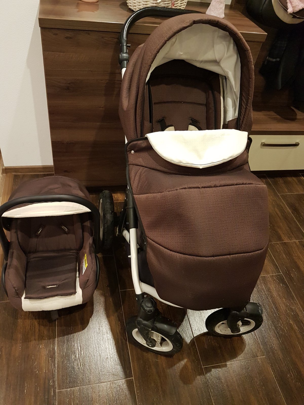 Ponúkam tento elegantný, dosť používaný ,veľmi skladný kočík, 3kombinaciu: