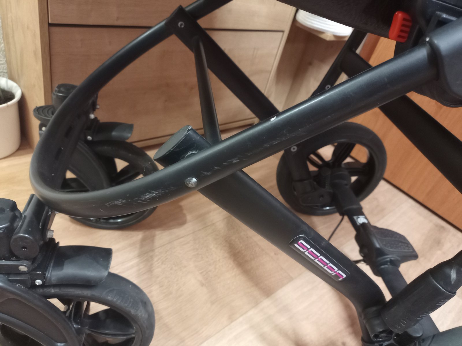 Športová časť aj taška na kočík má trochu vyťahanú farbu. Tomu sa nedá zabrániť. Veľký priestranný kôš. Korby si viete otočiť v smere aj protismere. Veľké kolesá. Menšie sú otočné, viete si zaistiť. Hlboká vanička je perfektné veľká, priestranné. Nastaviteľná rúčka (na pár škrabancov a na spodnej strane sa lupe nieje vidieť ) Športová časť ide až do úplného ľahu. My sme vysoký a nám kočiar sedel perfektne. Jedinú chybu čo som zistila ozaj nedávno je, že hapruje brzda na kočíku. Občas nebrzdi vôbec občas len jedna strana. Nejdem už investovať do opravy. Je to zohľadnené v cene. Najlepšie je prísť sa pozrieť a odskúšať si kočiar osobne. Kočík zvládne každý terén...Kočík predávam aj s konštrukciou. Pribalím sieťku proti hmyzu, slnečnú clonu, prechodný fusak a rukávnik na zimu. Pláštenka sa nám žiaľ roztrhla. Nebránim sa ani rozumnej dohode. Najlepšie osobný odber v Poprade.