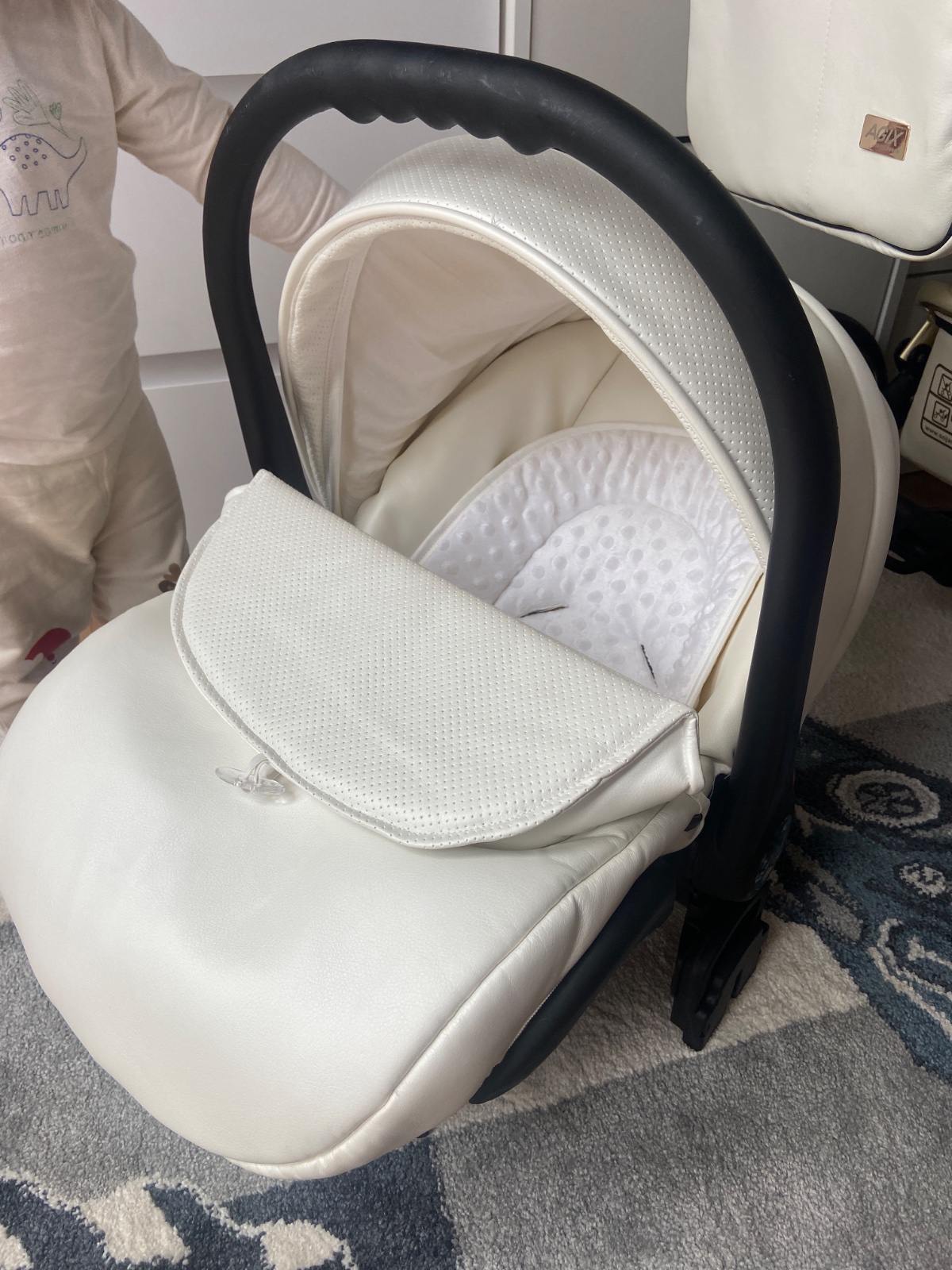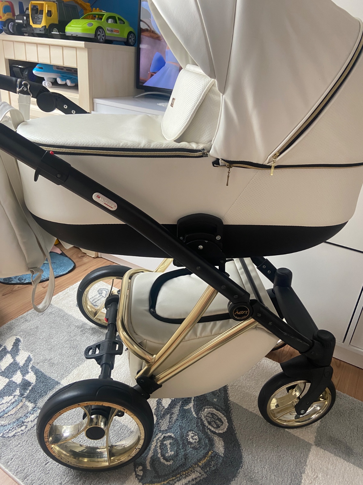 Vajičko (autosedačka) dá sa pripojiť na kočik ale to bolo použite párkrát. Športova čast sa použivala do teraz len je nám už malá. Pôvodna cena bola 750€.