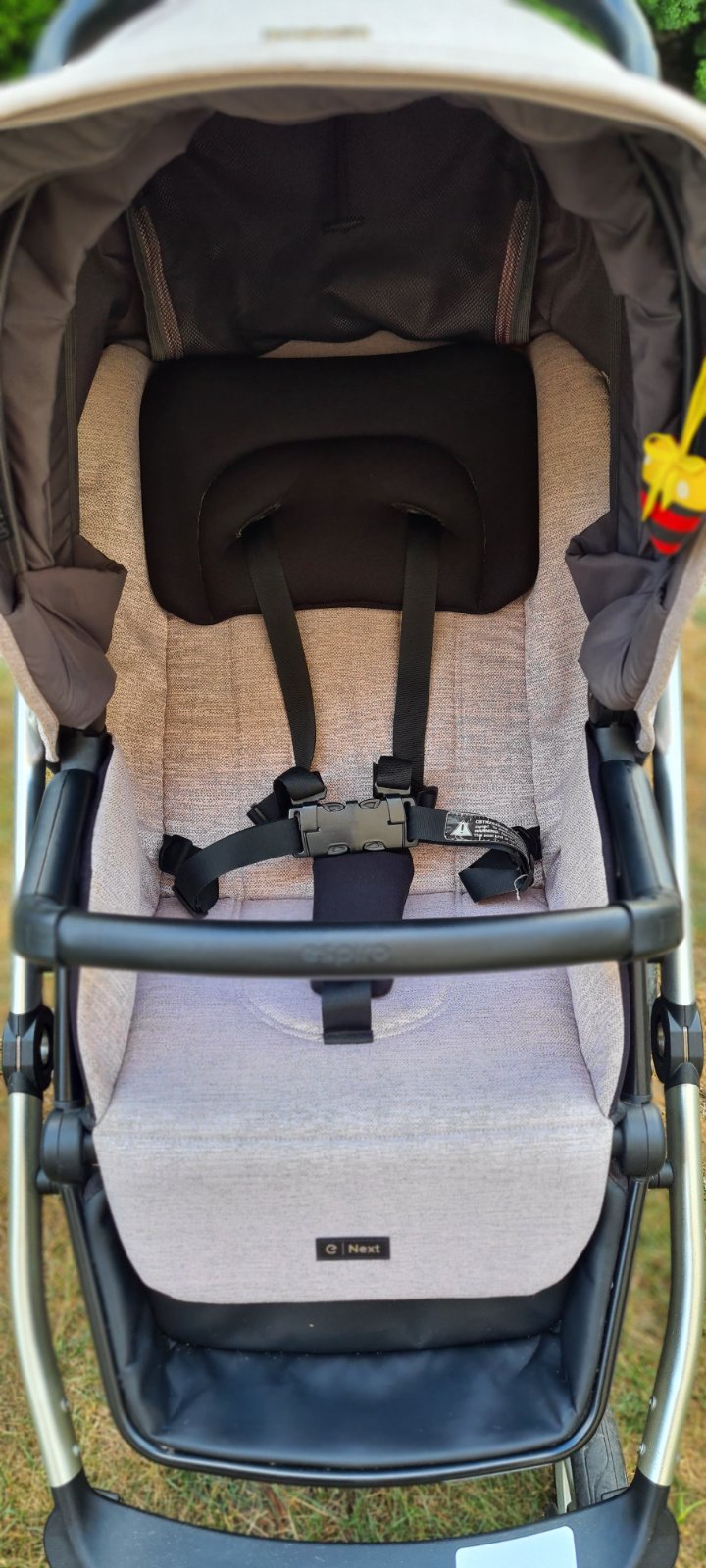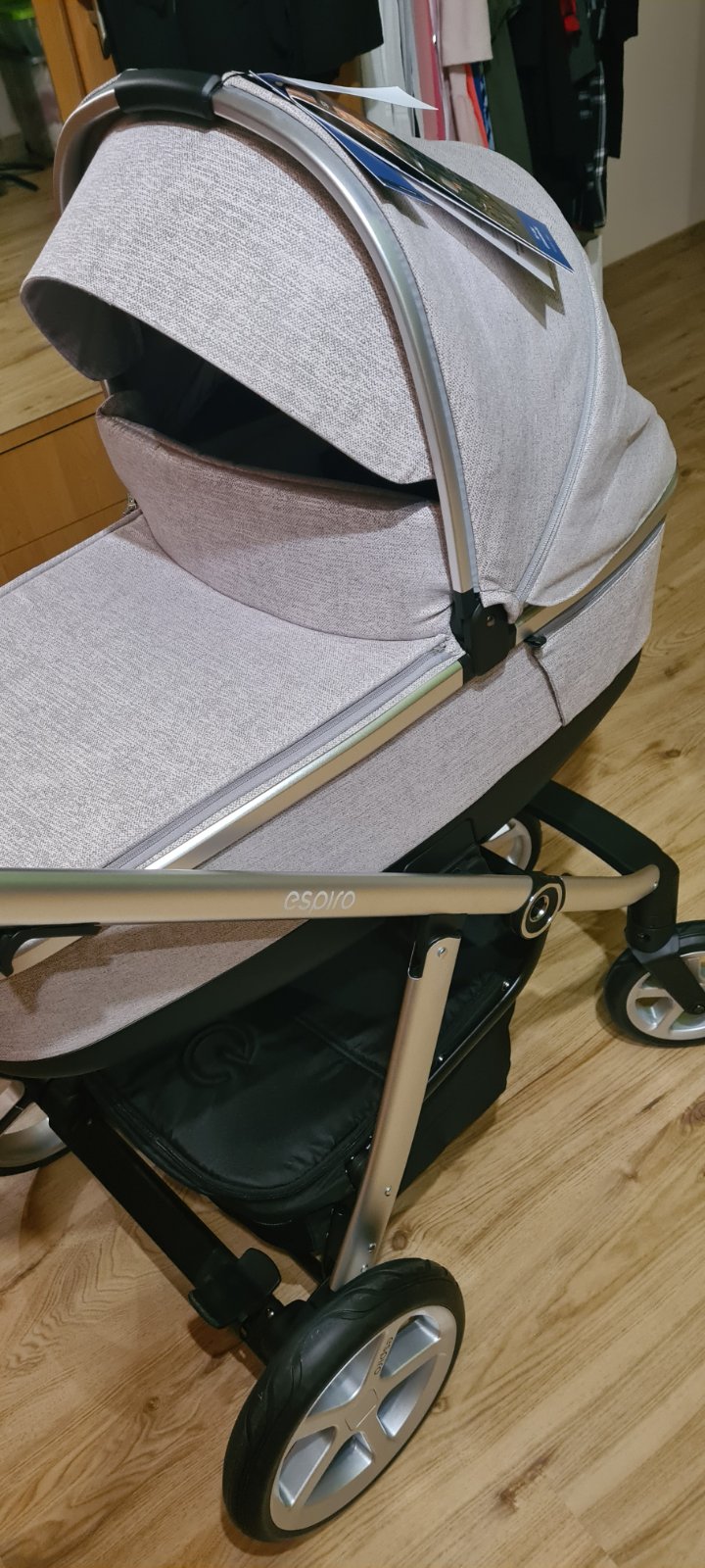Predám kočík Espiro Next Melange (dvojkobináciu, prípadne aj s vajíčkom a adaptérmi). Veľmi elegantný a funkčný kočík, vhodný od narodenia do 4 rokov, otočenie v oboch smeroch, bola som s ním veľmi spokojná. Striešky sa dajú super predĺžiť, zabudované sieťky proti hmyzu, bezúdržbové penové kolesá, taška, držiak na pohár, skvelý jesenný fusak, pláštenky do dažďa, pridám plachty na matrac do kočíka.... výborný stav, jedine škrabance na konštrukcii z nakladania. Osobný odber Trnava (prípadne dohodou okolie). Tel.0908529700