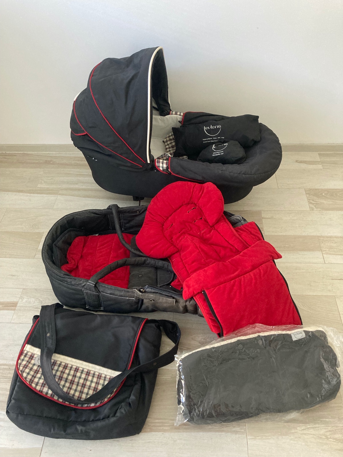 - hlboká vanička TEUTONIA COMFORT PLUS (moskytiéra a protidažďový igelitový kryt), mäkký prenosný diel s vložkou TEUTONIA COLOR-IT, fusak TEUTONIA MINI-NEST, prebaľovacia prípojná taška, zimný rukávnik TEUTONIA POLARBEAR na madlo kočíka.