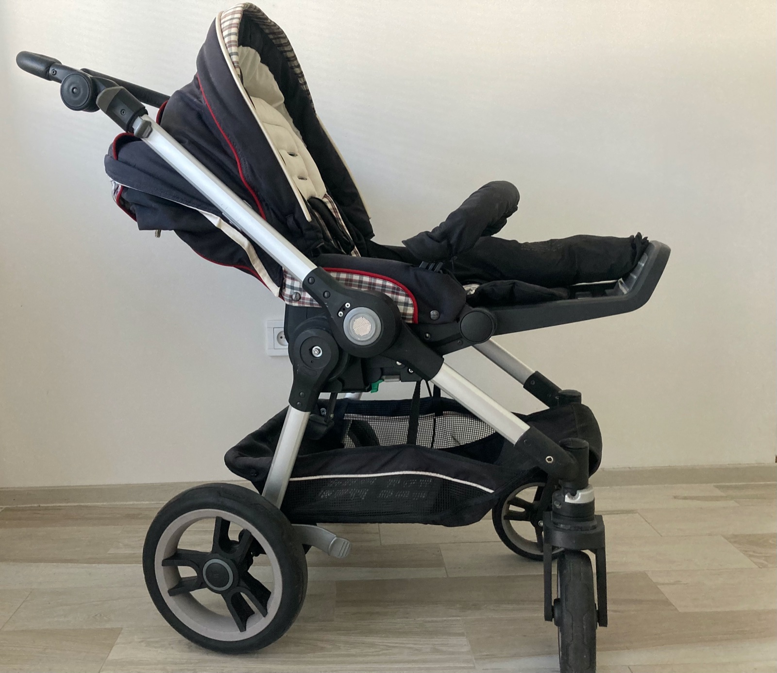 - podvozková časť TEUTONIA BeYou (takmer nové kolesá!) so športovou sedačkou (moskytiéra a protidažďový igelitový kryt).