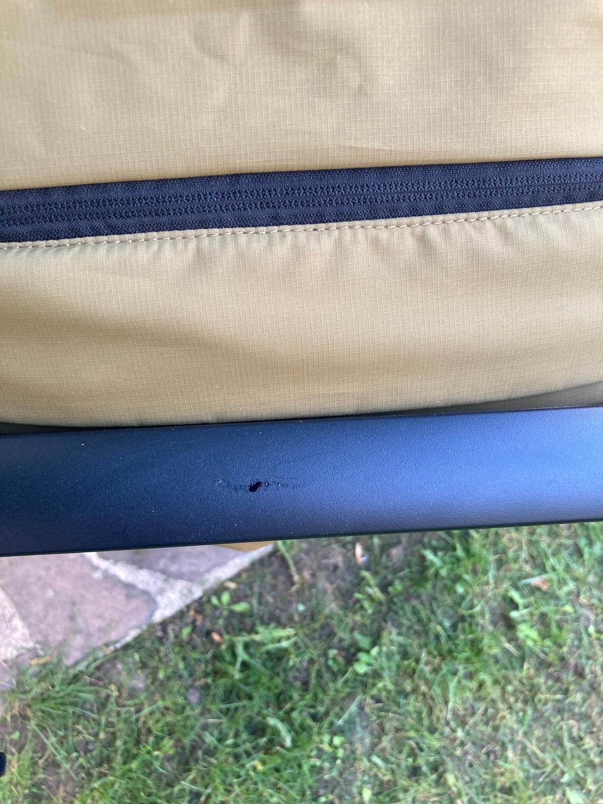 Nedostatky - škrabance na konštrukcii, fľak v časti nôh sú zachytené na foto (určite to pôjde vyčistiť). Kocik je takmer ako nový.