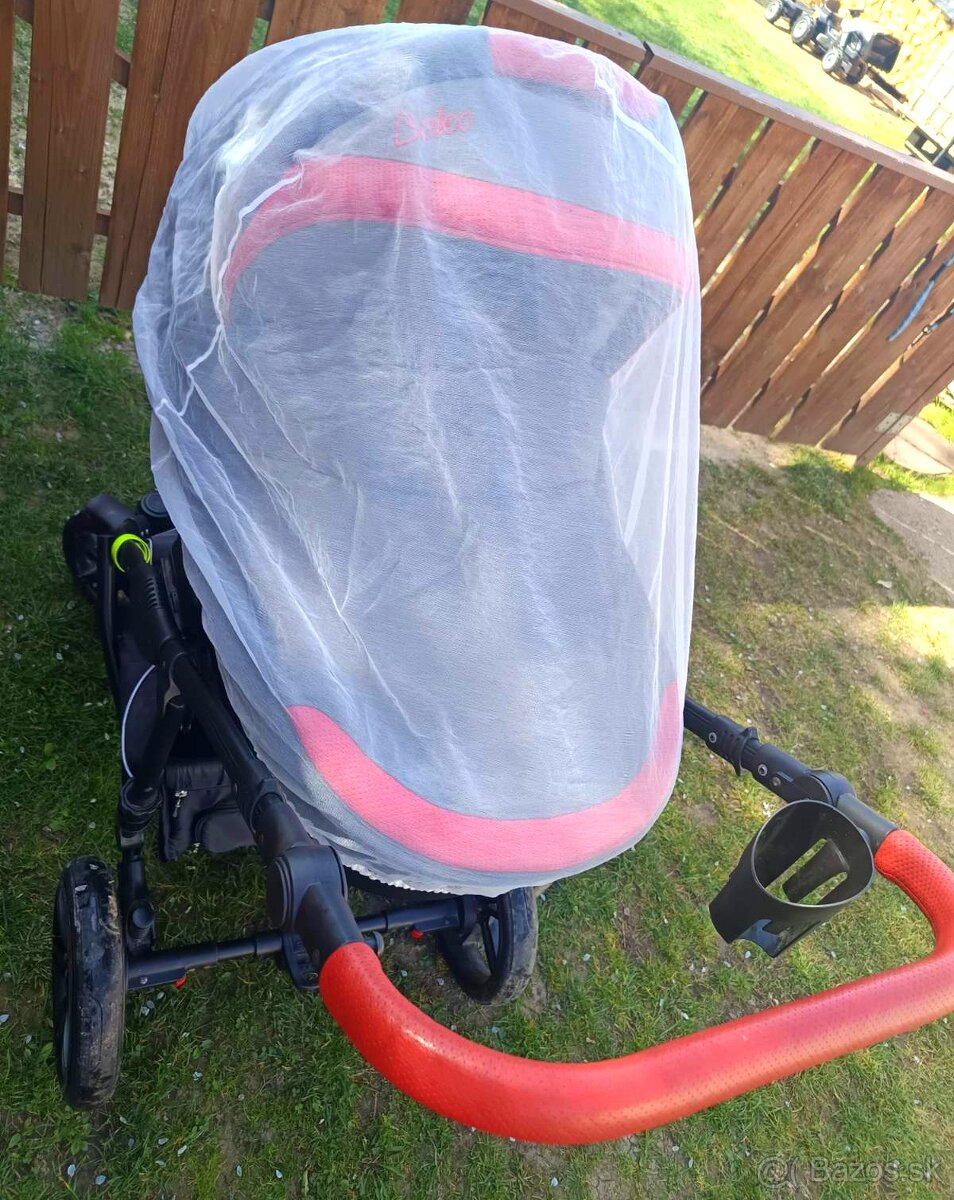 Je k nemu aj príslušenstvo plaštenka (proti dažďu) sieťka proti hmyzu, držiak na fľašu.