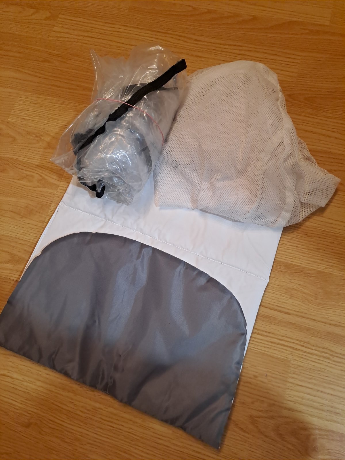 - držiak na fľaše, taška, sieťka proti hmyzu, pláštenka do dažďa, nepremokavá podložka na prebaľovanie do vaničky,