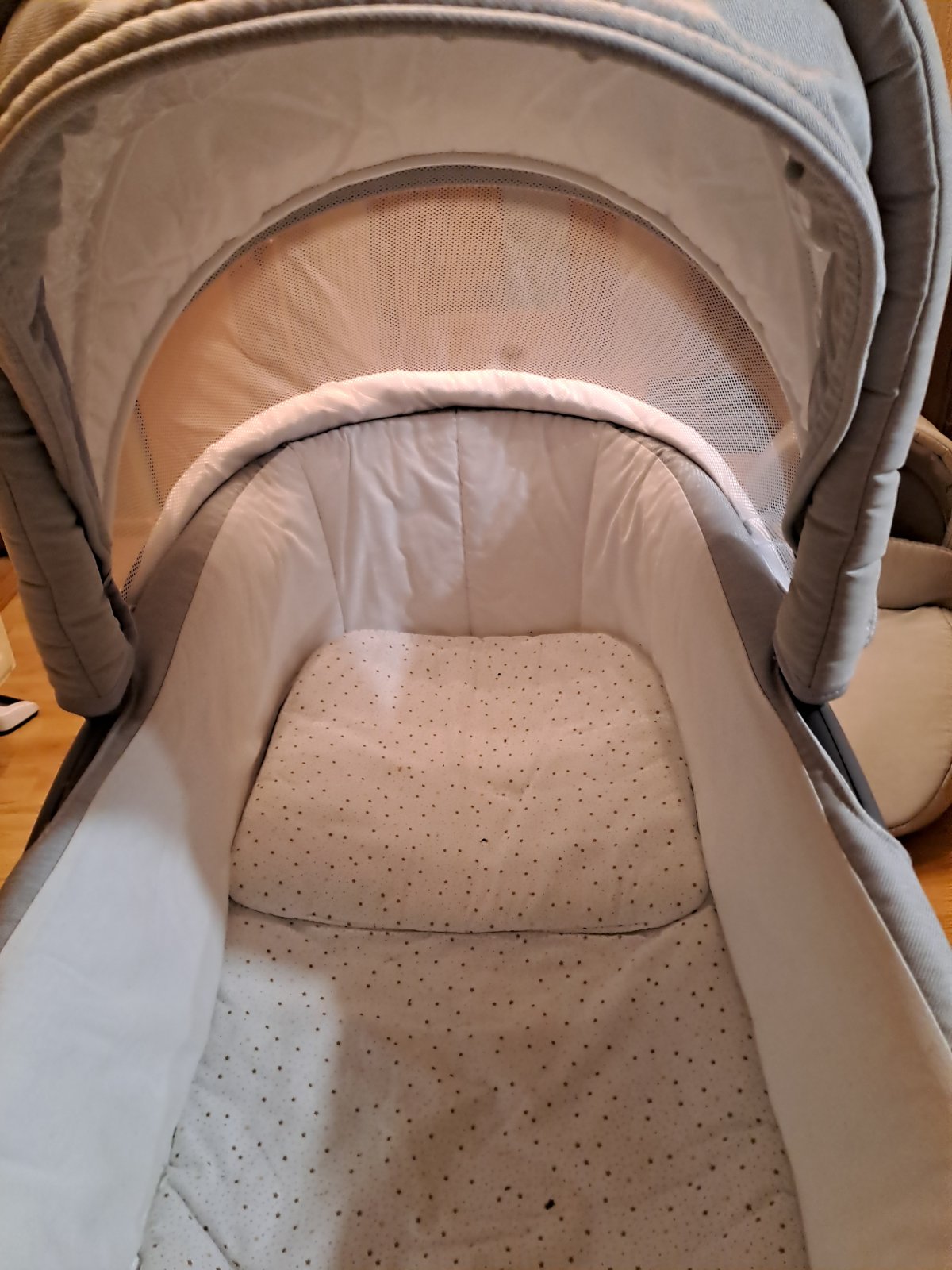 Nebudem písať, že je top Stav, keďže bol používaný. Drobné chybičky krásy sú, ale len na konštrukcii, ktoré ale nebránia ďalšiemu používaniu. Čo sa týka vajíčka, vaničky a športovej časti nie je potrhaná krásne celá látka. Môžem však povedať, že je plne funkčný, nič nie je pokazené všetko funguje a som si istá že ešte vie krásne poslúžiť.