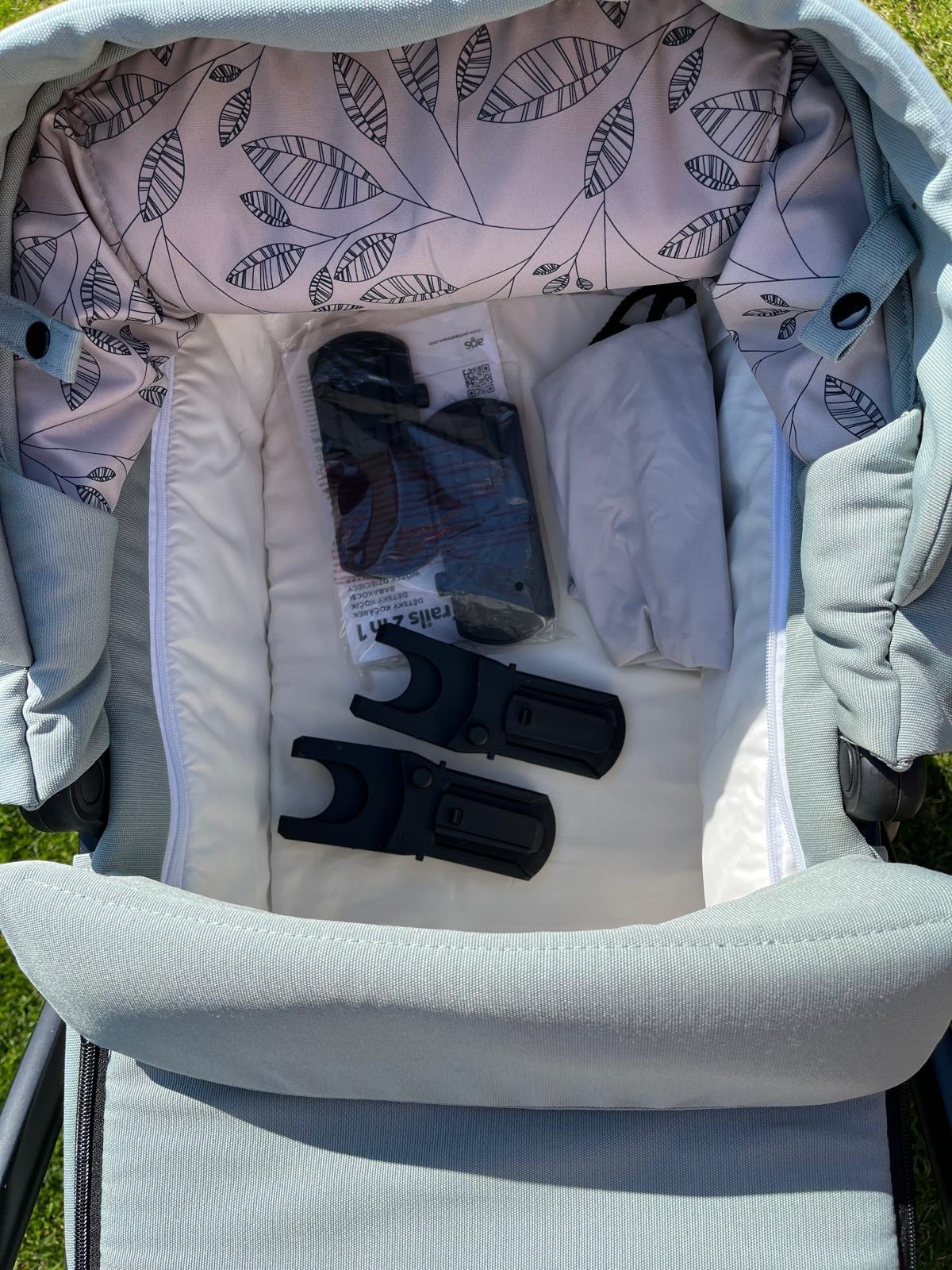Okrem podvozku, vaničky a športovej časti je ku kočíku výškový adaptér na vaničku, adaptér na vajíčko, nánožník na športovú čast.